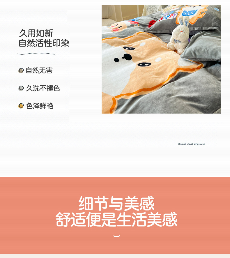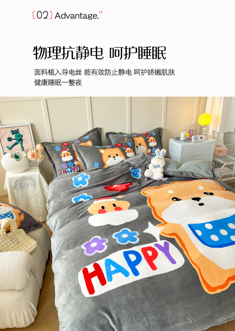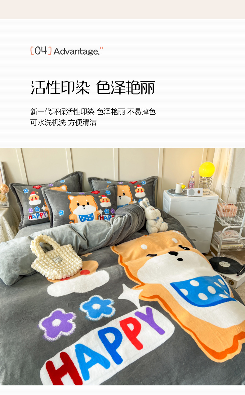 商品名称:2024新款A类高克重牛奶绒大版印花保暖四件套 哈哈小犬