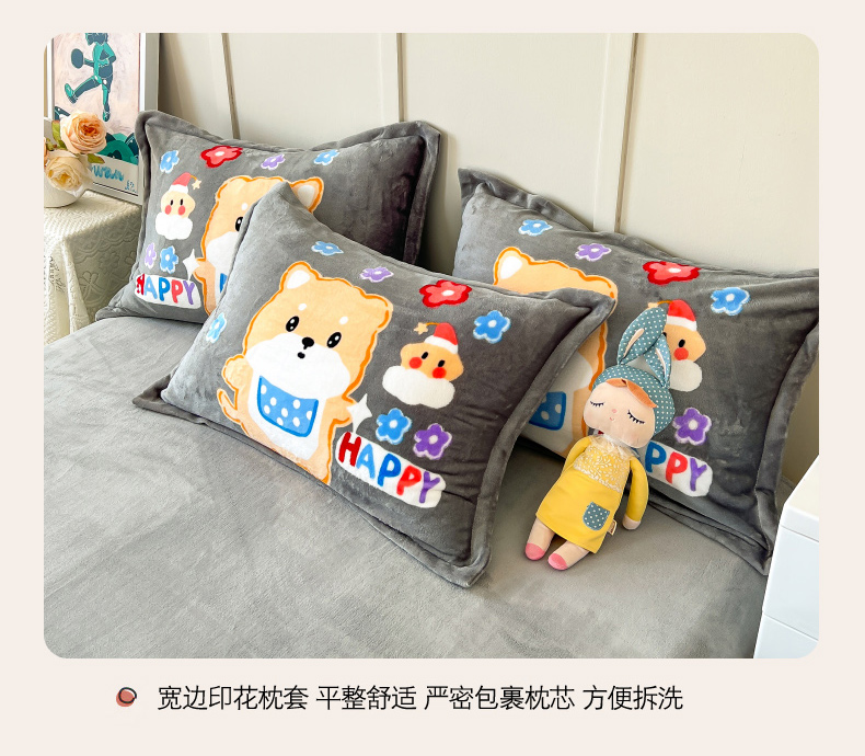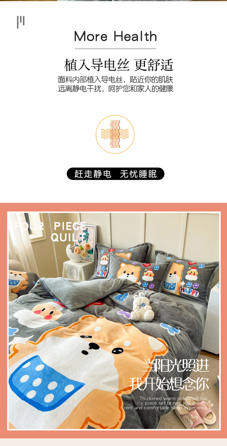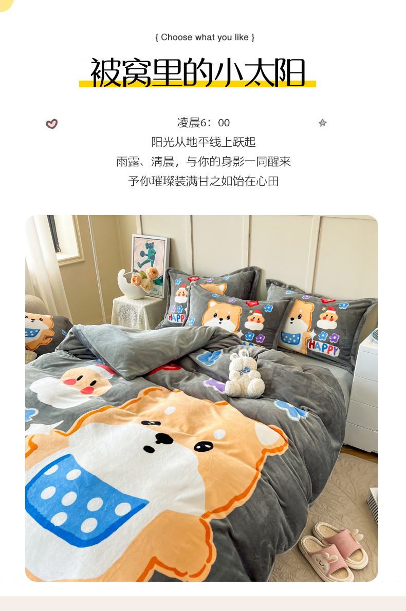 (总)倾慕家纺 2025新款卡通毛巾绣加厚保暖牛奶绒四件套,爱心女孩,咖啡小狗,猫咪熊兔,迷你小车,圣诞树熊,音乐企鹅
