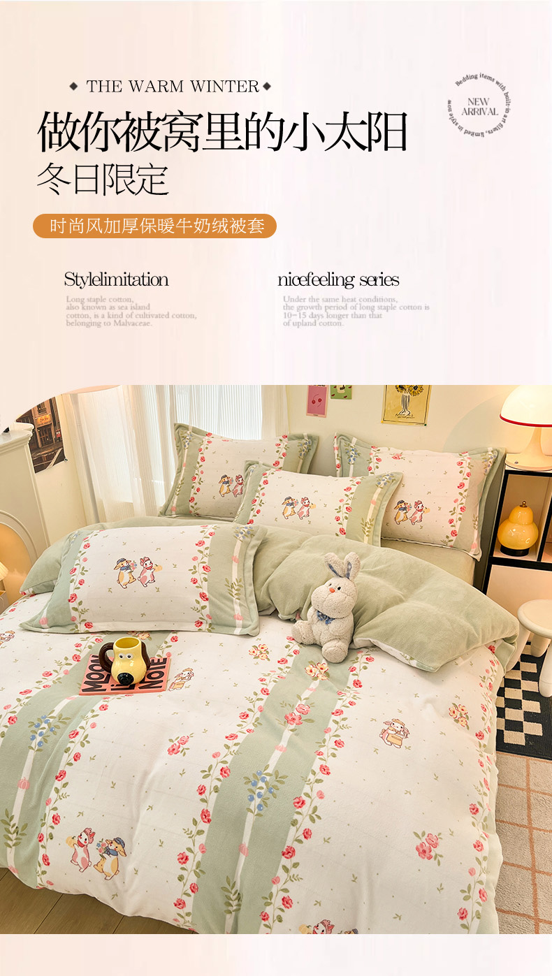 2024新款A类高克重时尚风牛奶绒加厚保暖系列套件单品-被套 兔兔乐园