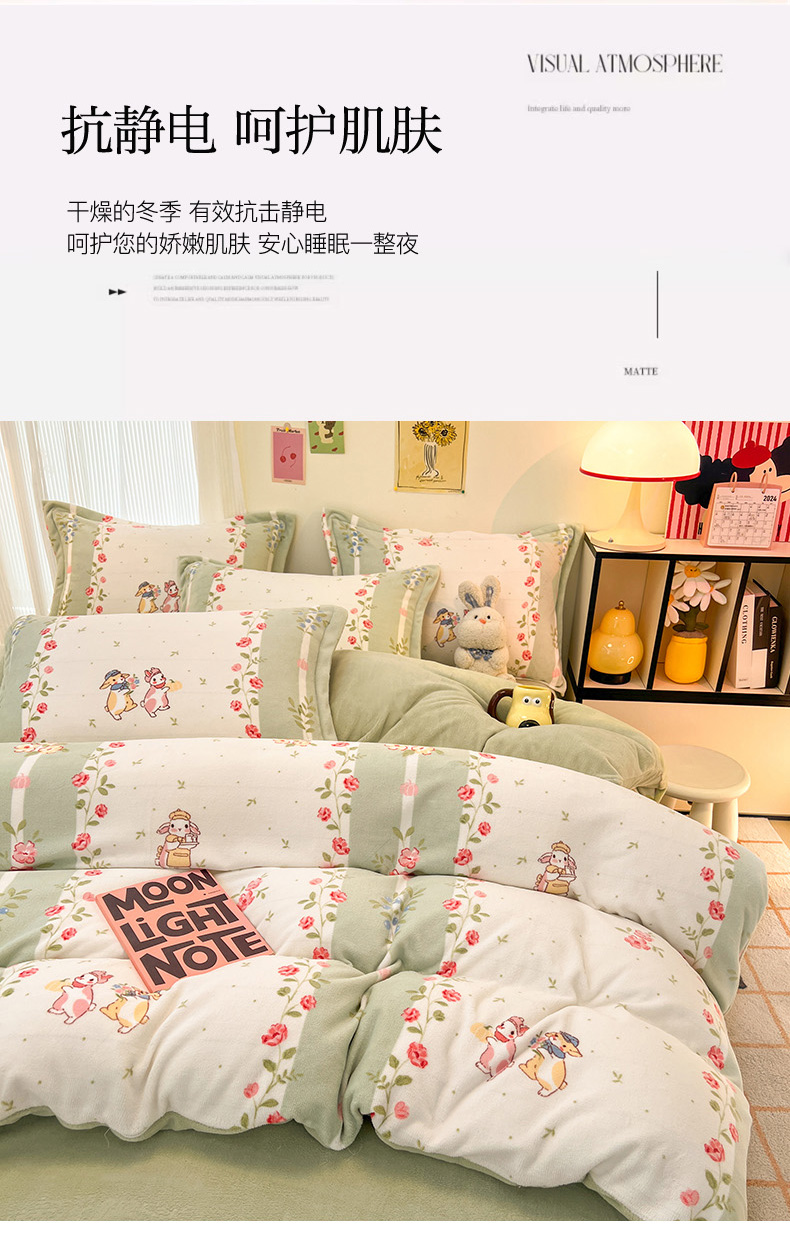 商品名称:2024新款A类高克重时尚风牛奶绒加厚保暖系列套件单品-被套 兔兔乐园