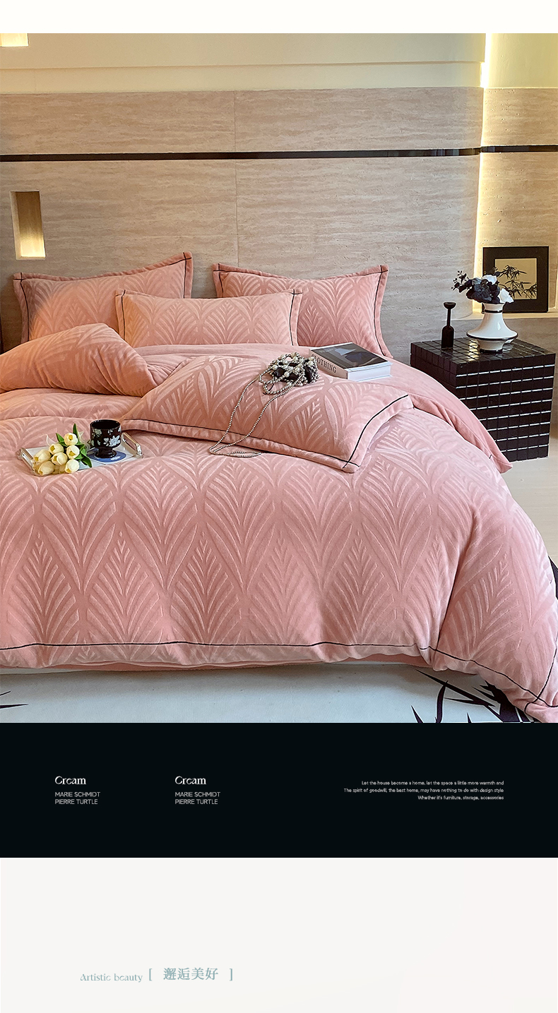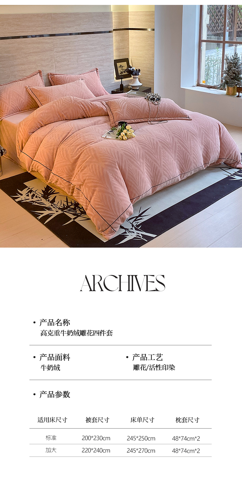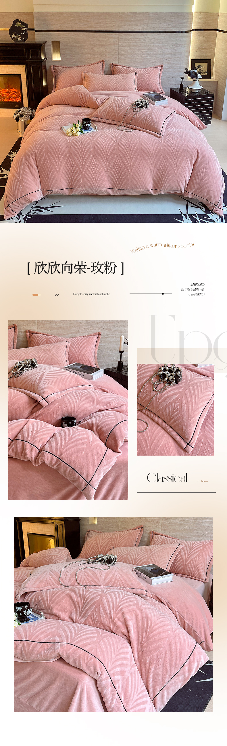 商品名称:慕希家纺 2024新款高克重牛奶绒雕花四件套-欣欣向荣 欣欣向荣-玫粉