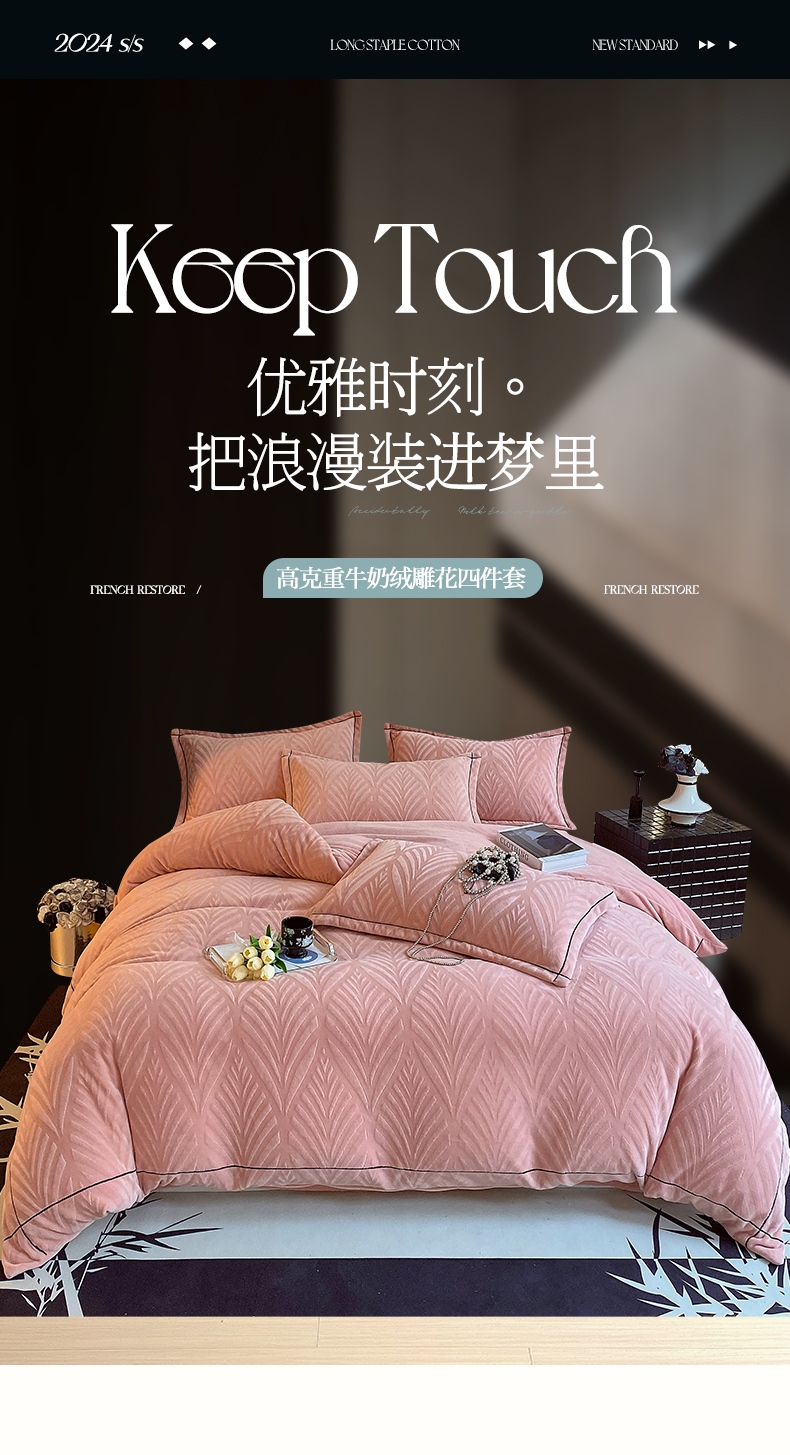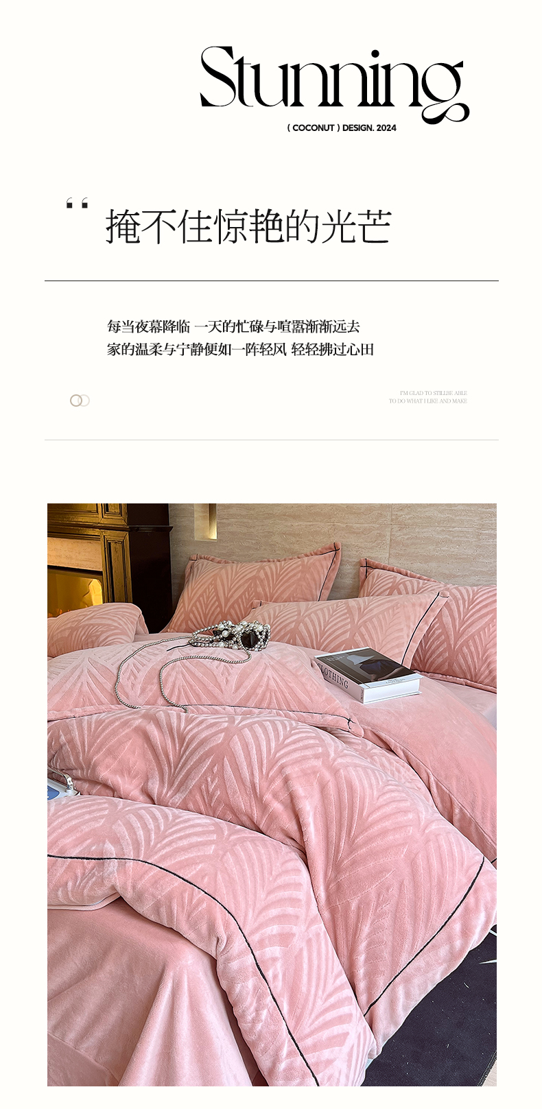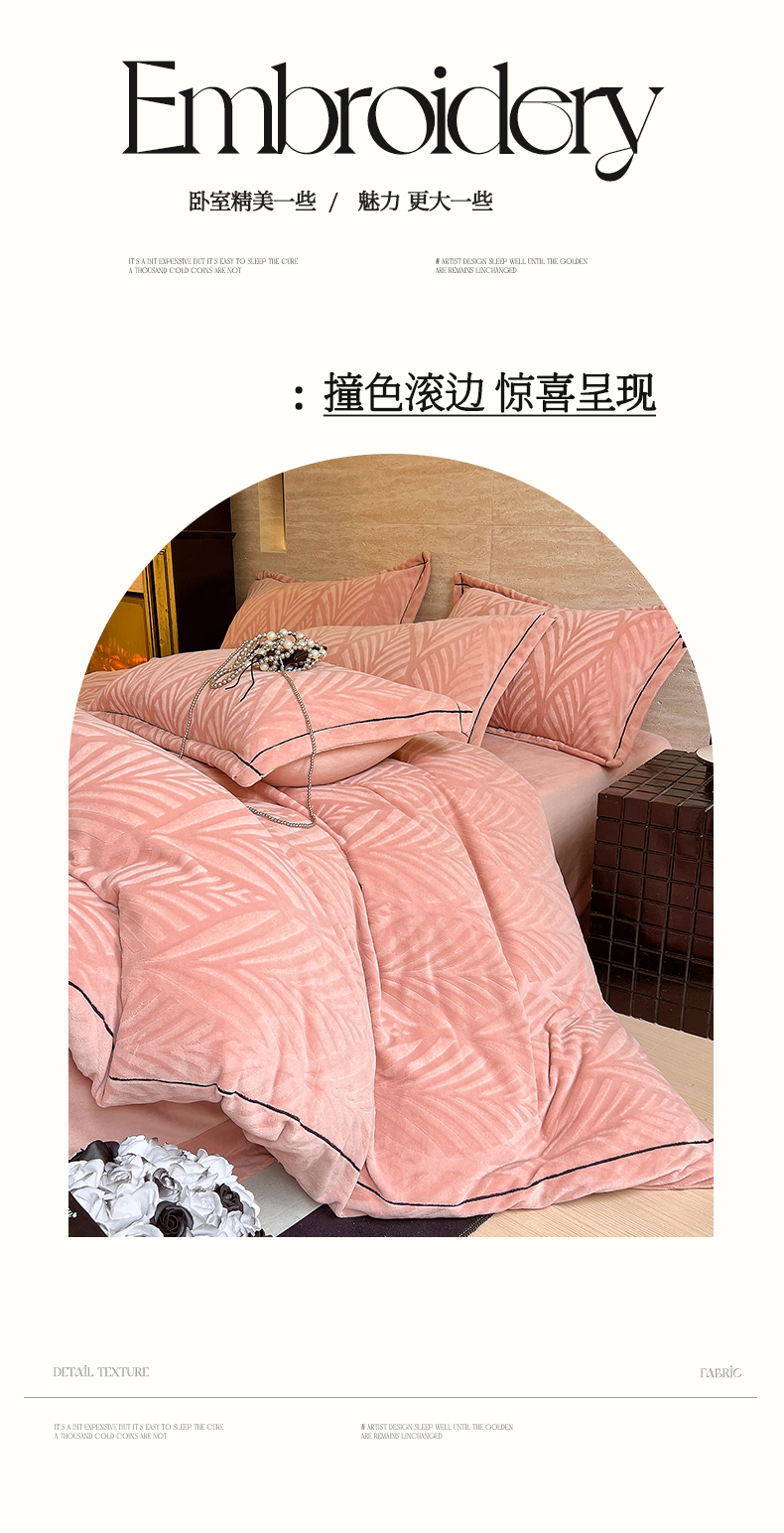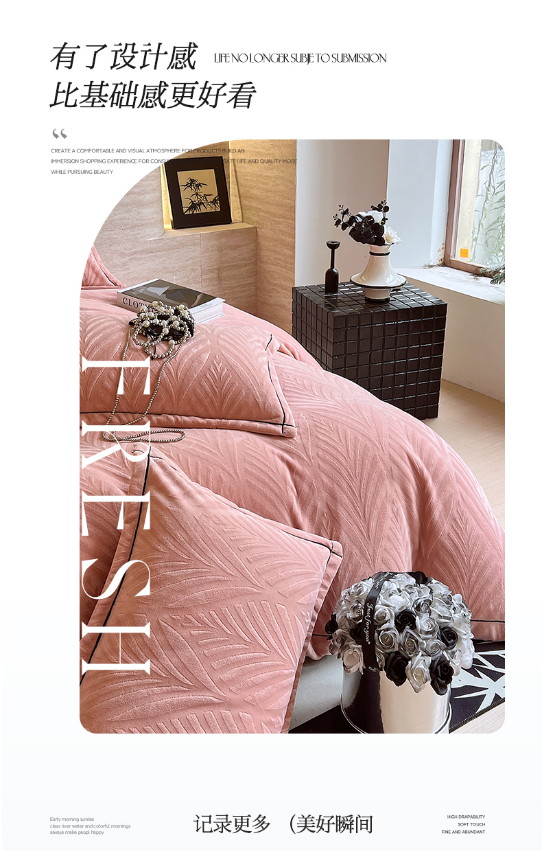 商品名称:慕希家纺 2024新款高克重牛奶绒雕花四件套-欣欣向荣 欣欣向荣-玫粉