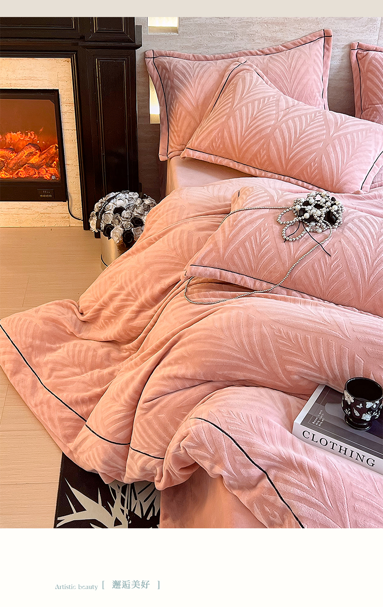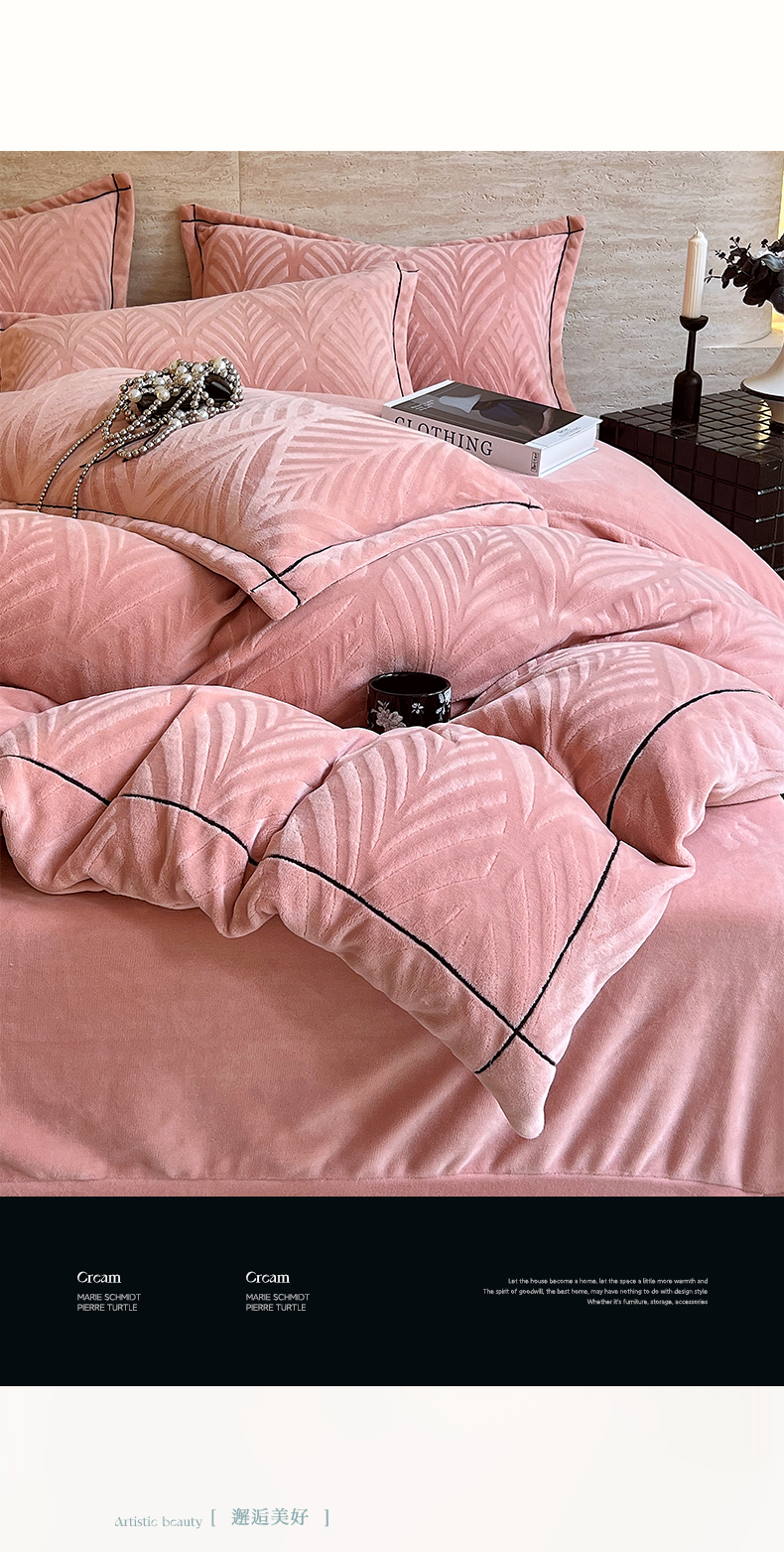 慕希家纺 2024新款高克重牛奶绒雕花四件套-欣欣向荣 欣欣向荣-玫粉