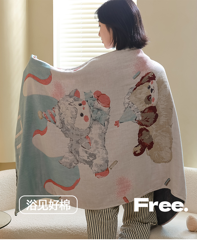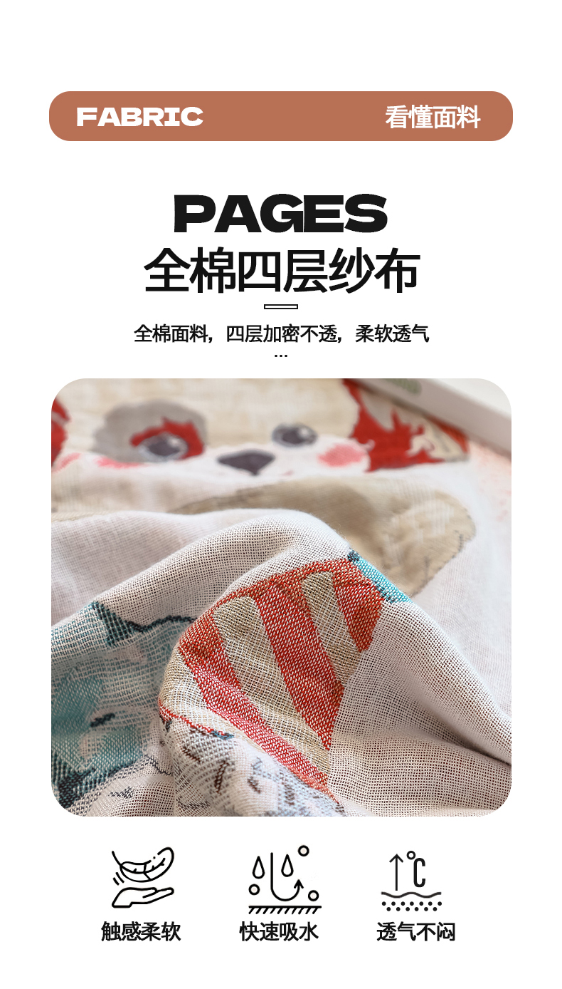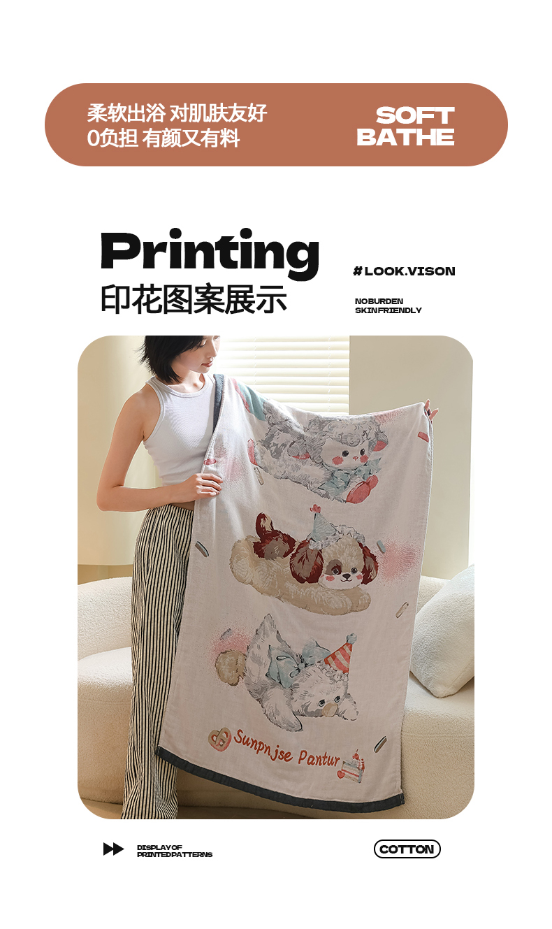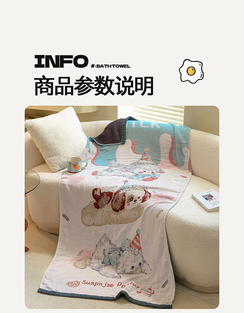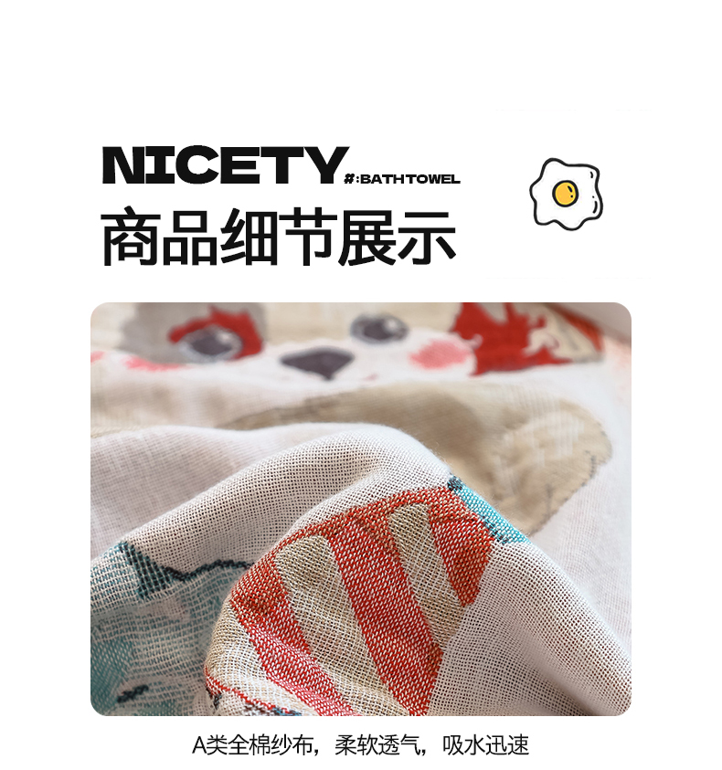 当前位置: 91家纺网 > 商品网购 > 居家日用 > 毛巾/浴巾/浴袍 > 浴巾 > 雯雨家纺 2024新款四层全棉纱布浴巾加大毛巾80*160cm 妙可蓝多