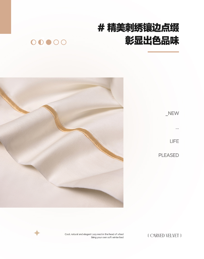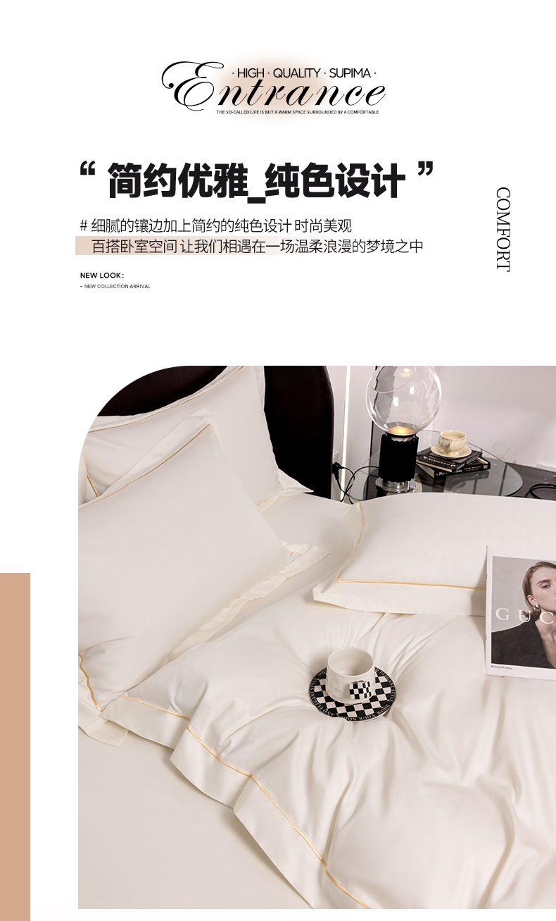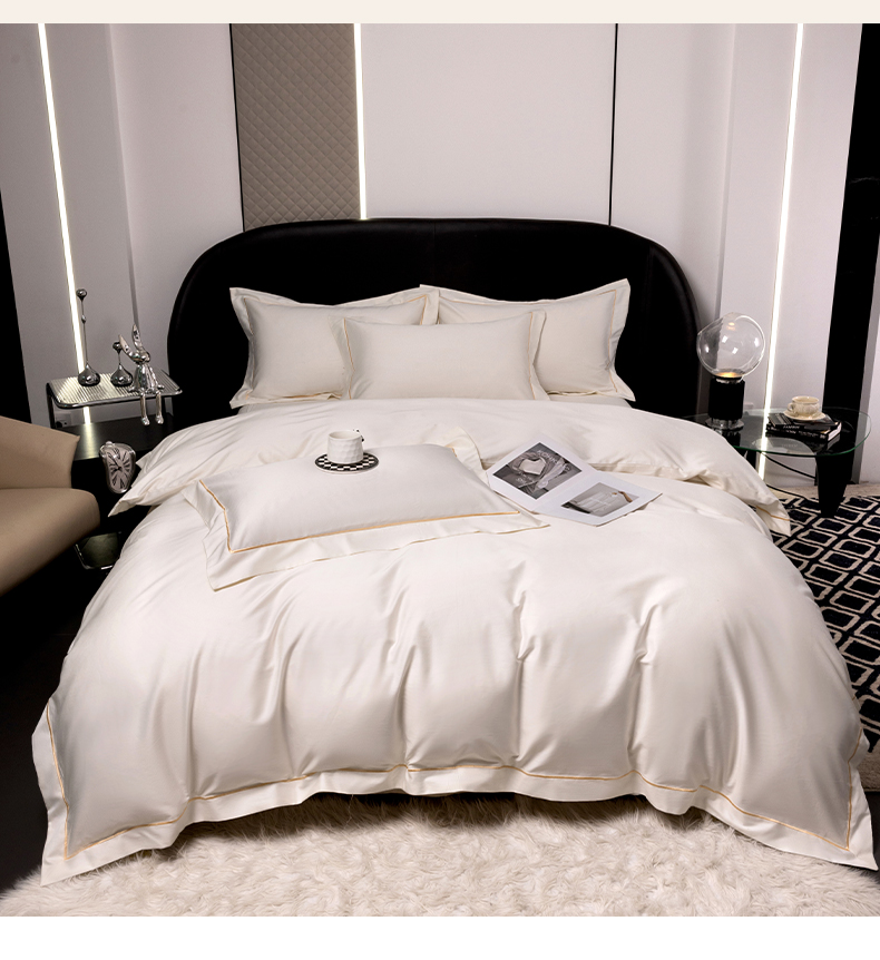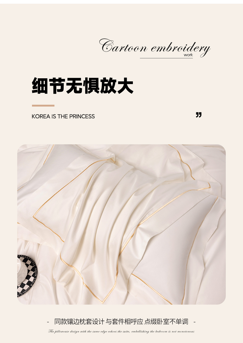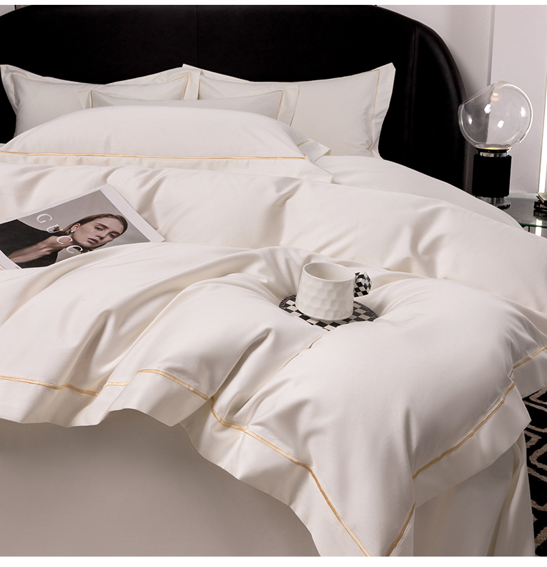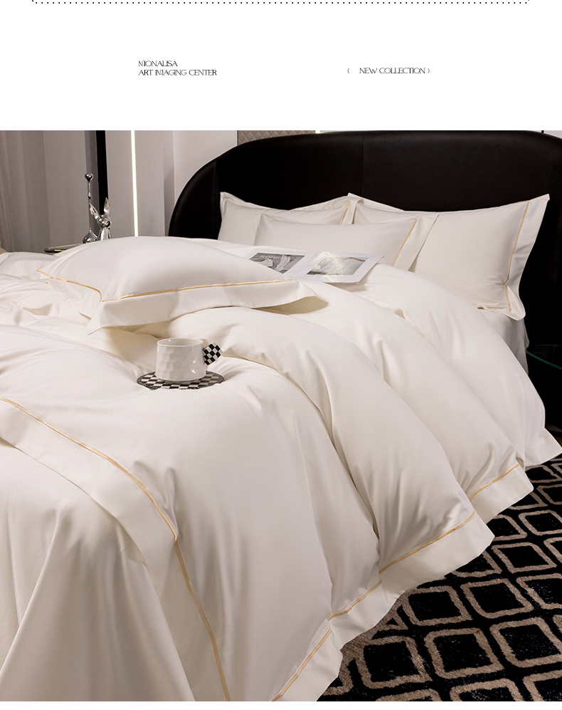 心悦家纺 2024新款高支高密匹马棉刺绣四件套 米白