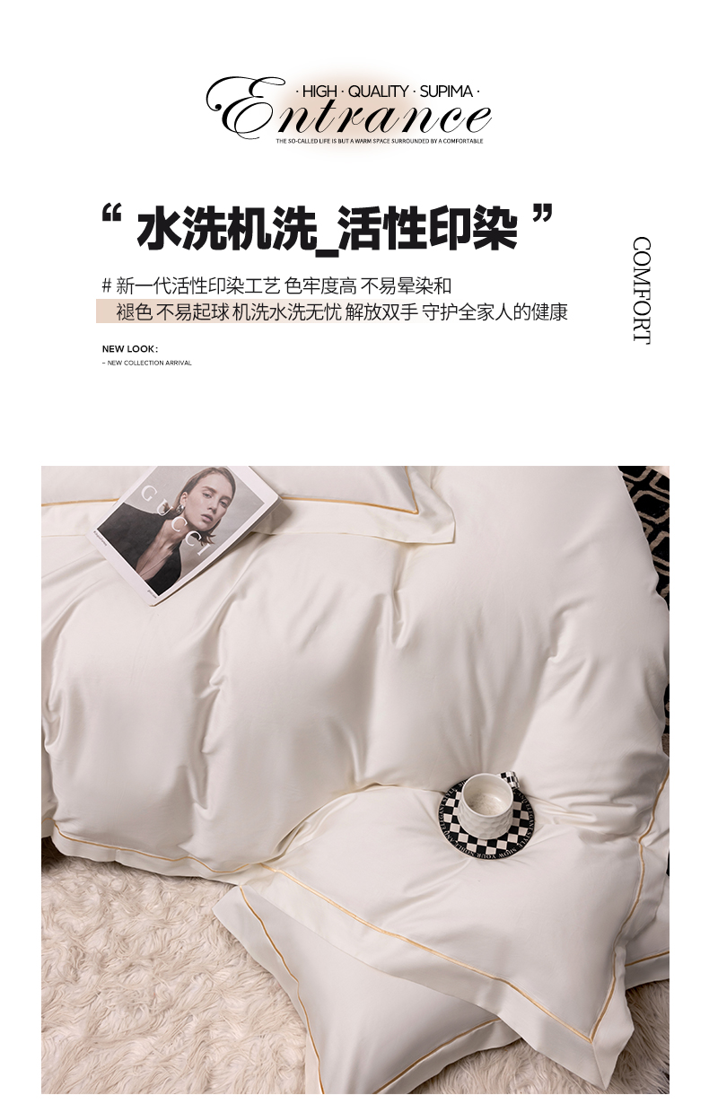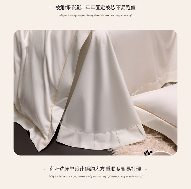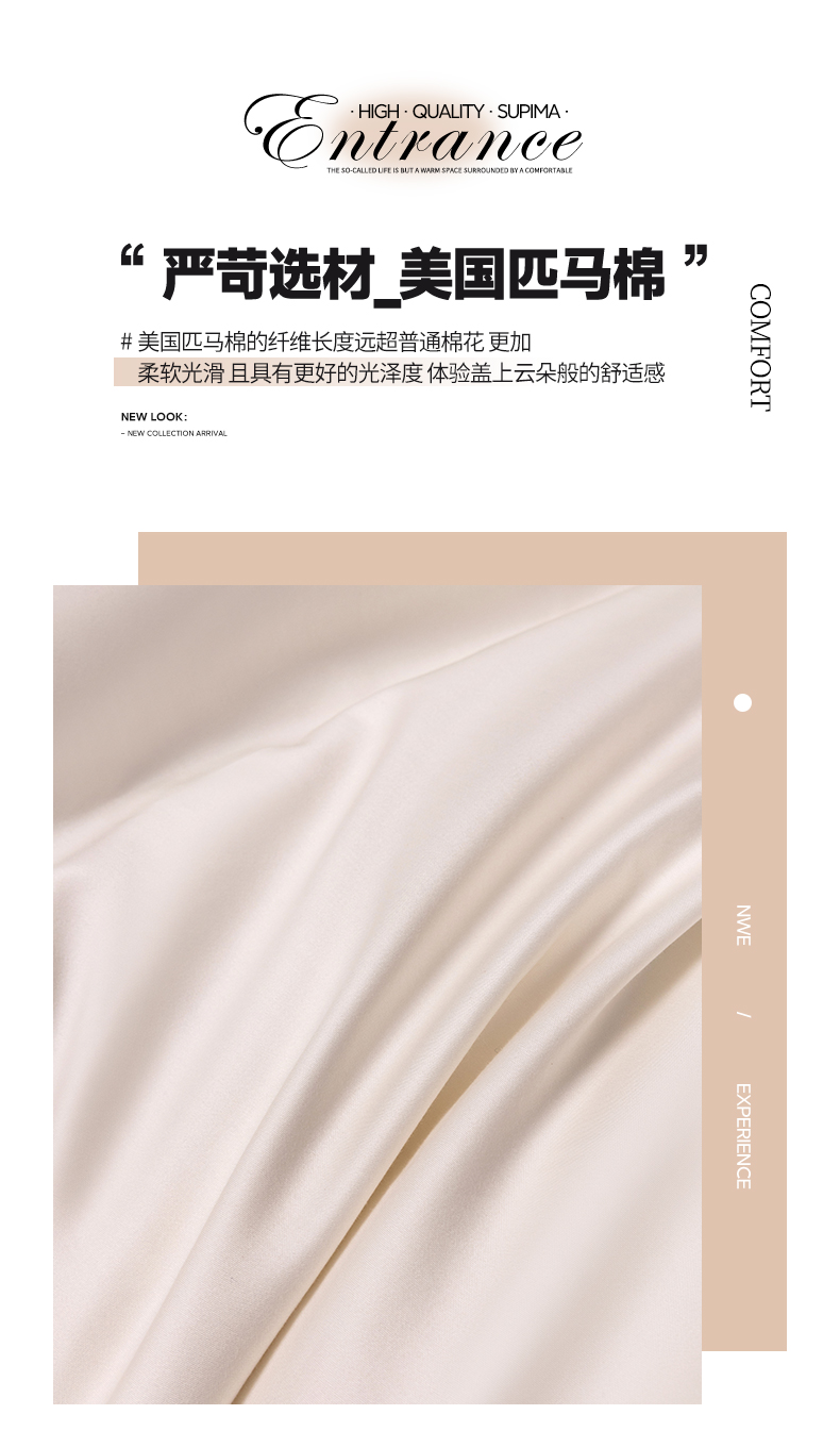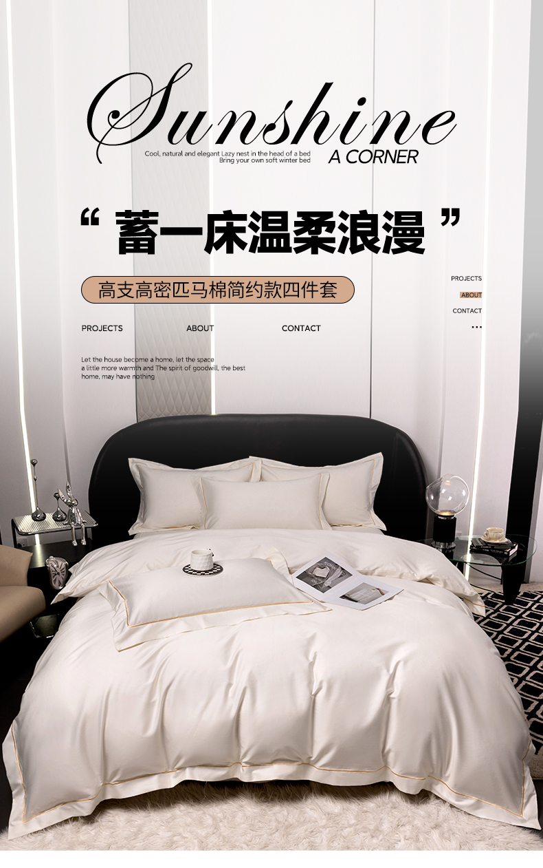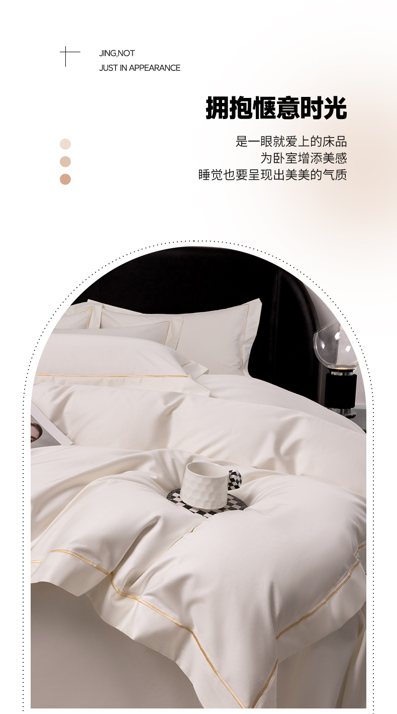 商品名称:心悦家纺 2024新款高支高密匹马棉刺绣四件套 米白