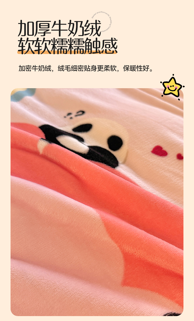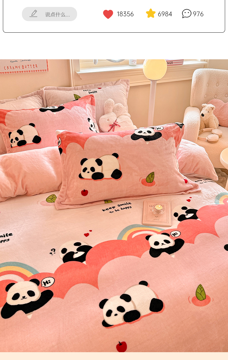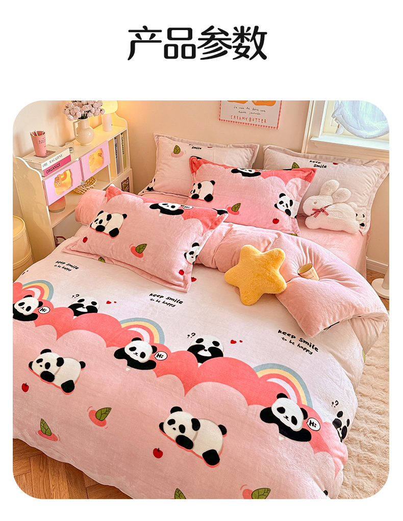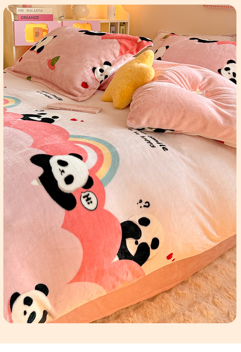 当前位置: 91家纺网 > 商品网购 > 床品套件 > 四件套 > 牛奶绒四件套 > 名兮家居 2024新款卡通时尚风高克重牛奶绒四件套 彩虹熊猫-粉