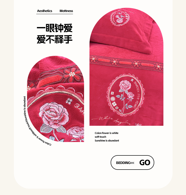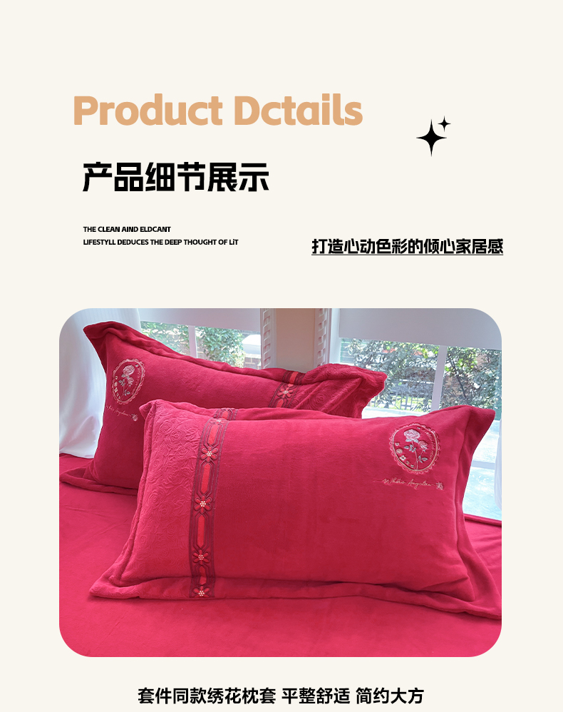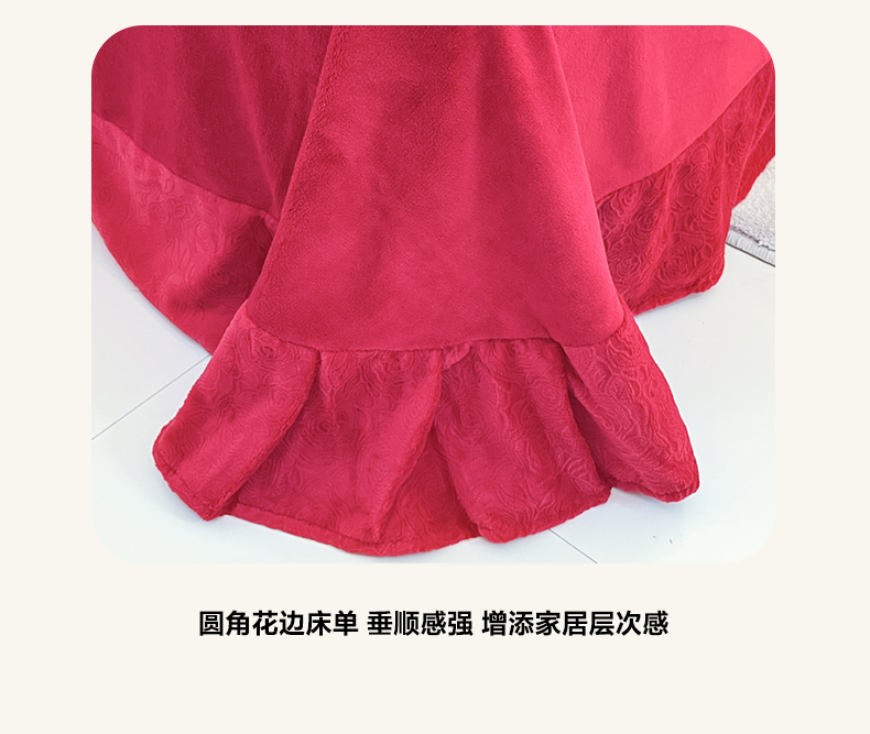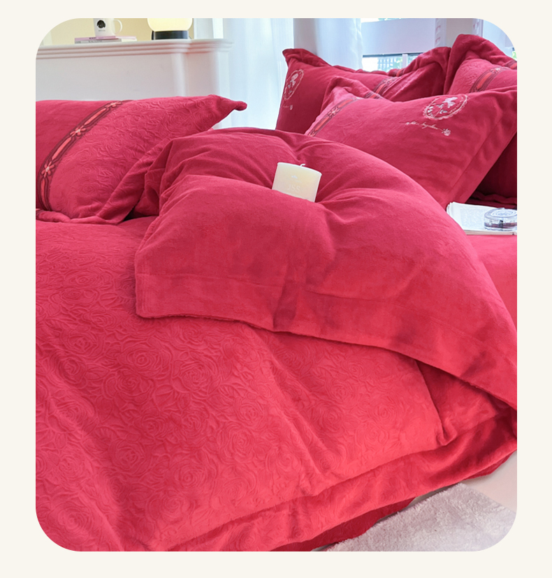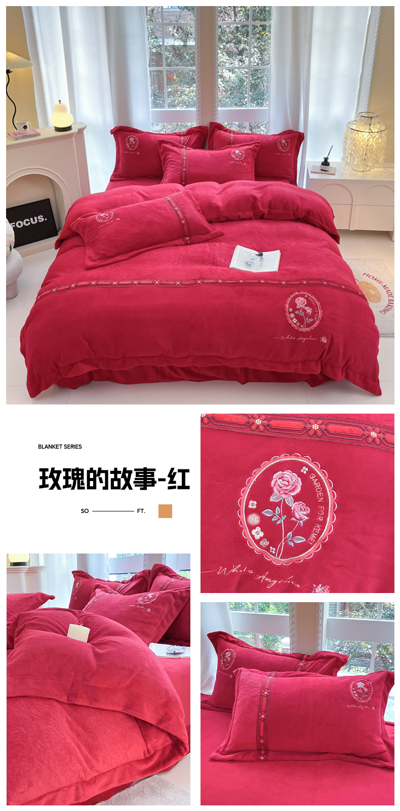 商品名称:艾唯希家纺 2024新款牛奶雕花绒绣花工艺四件套系列 玫瑰的故事-红
