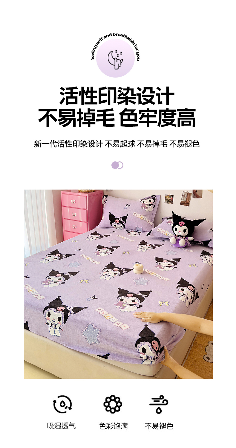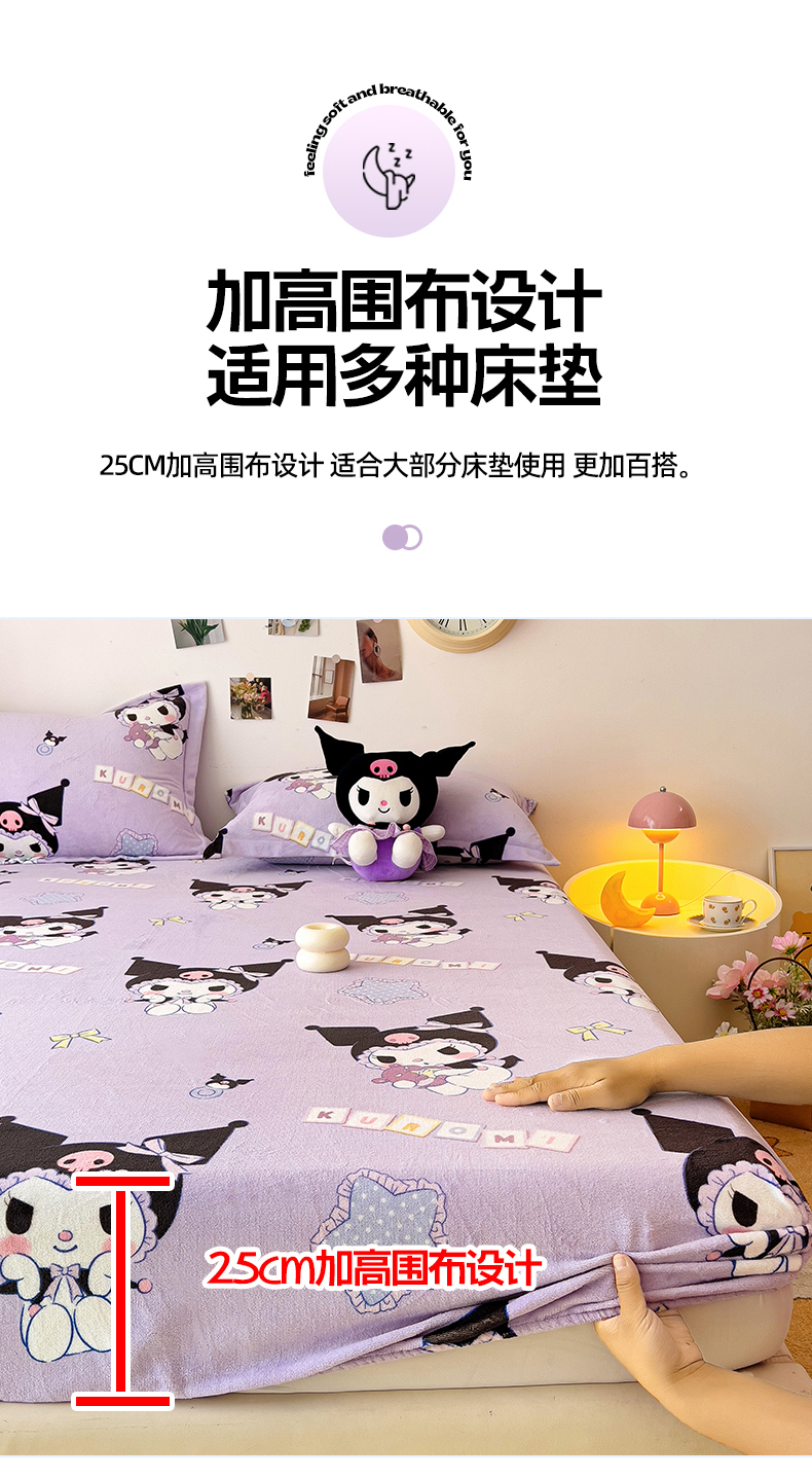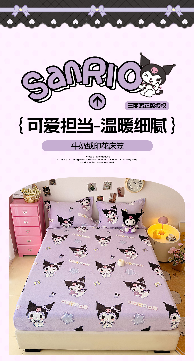 KT猫直营店 2024新款三丽鸥正版授权库洛米牛奶绒单品床笠 星星库洛米-笠