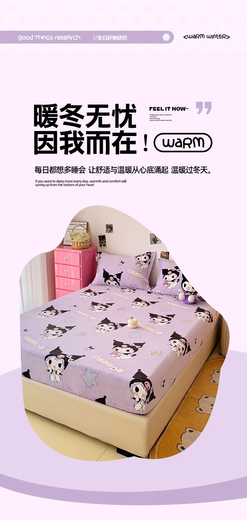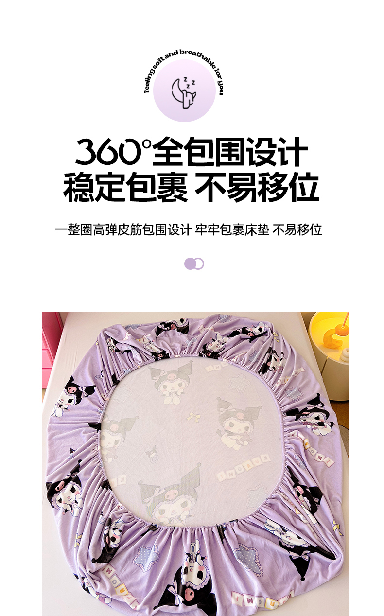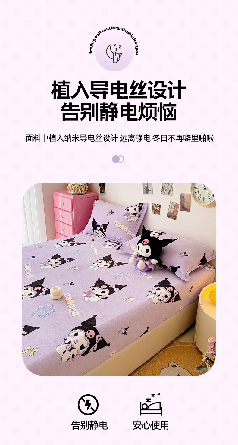KT猫直营店 2024新款三丽鸥正版授权库洛米牛奶绒单品床笠 星星库洛米-笠