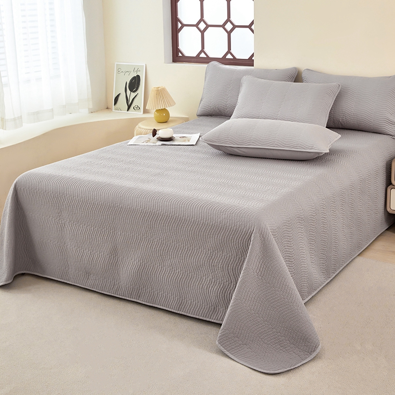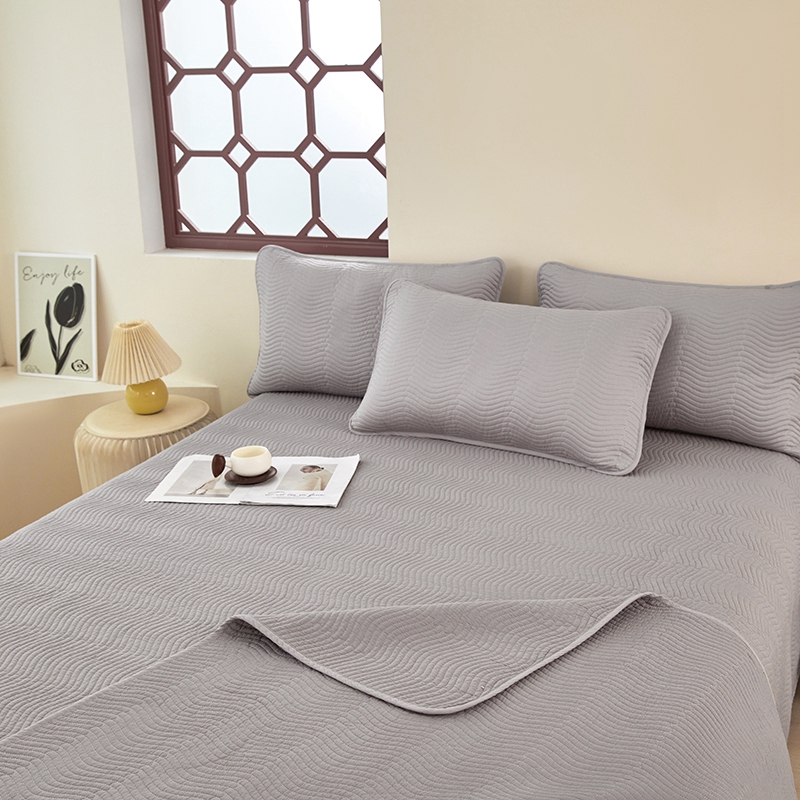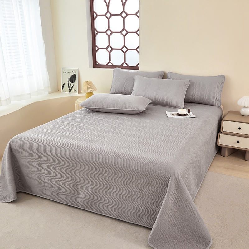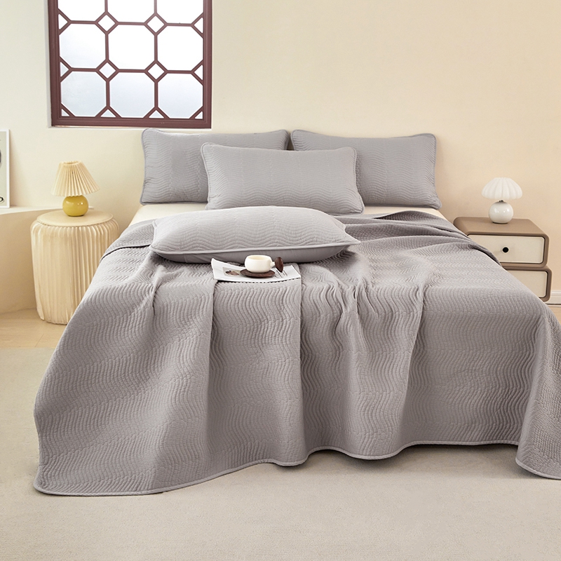 莎果家纺 2024新款13372双面纯棉高温砂洗纯色床盖可搭配床盖四件套 浅灰