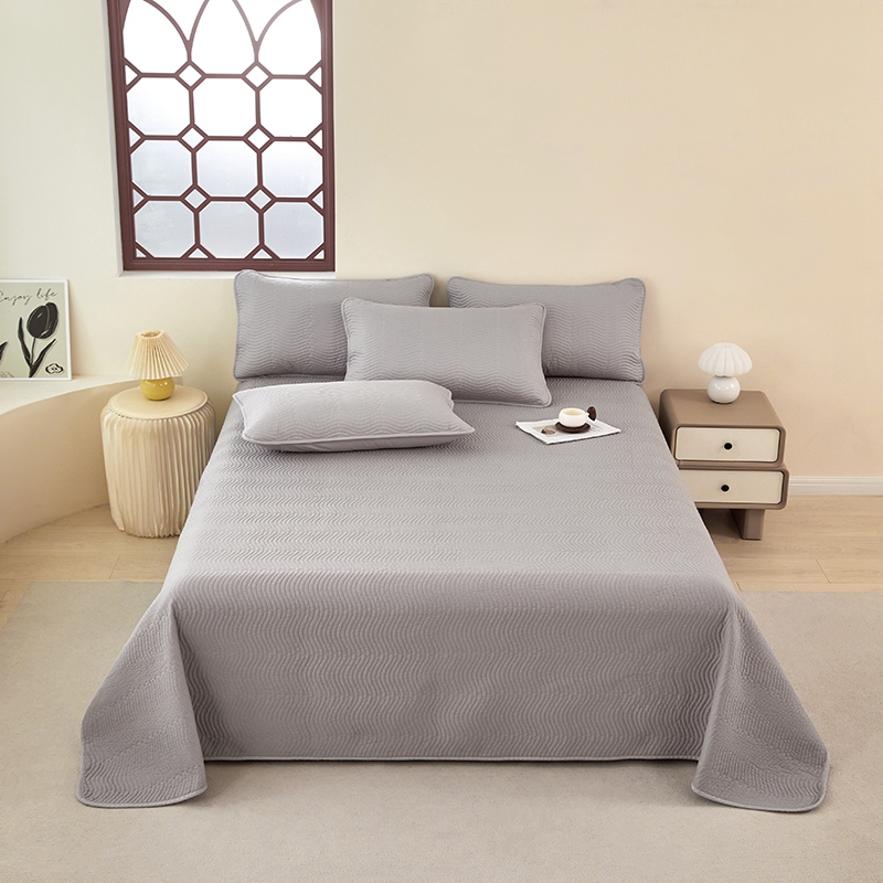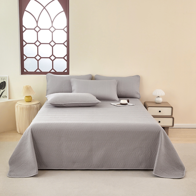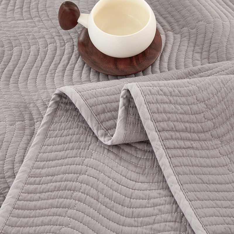 • 91家纺网 家纺一手货源 找家纺 莎果家纺 2024新款13372双面纯棉高温砂洗纯色床盖可搭配床盖四件套 浅灰