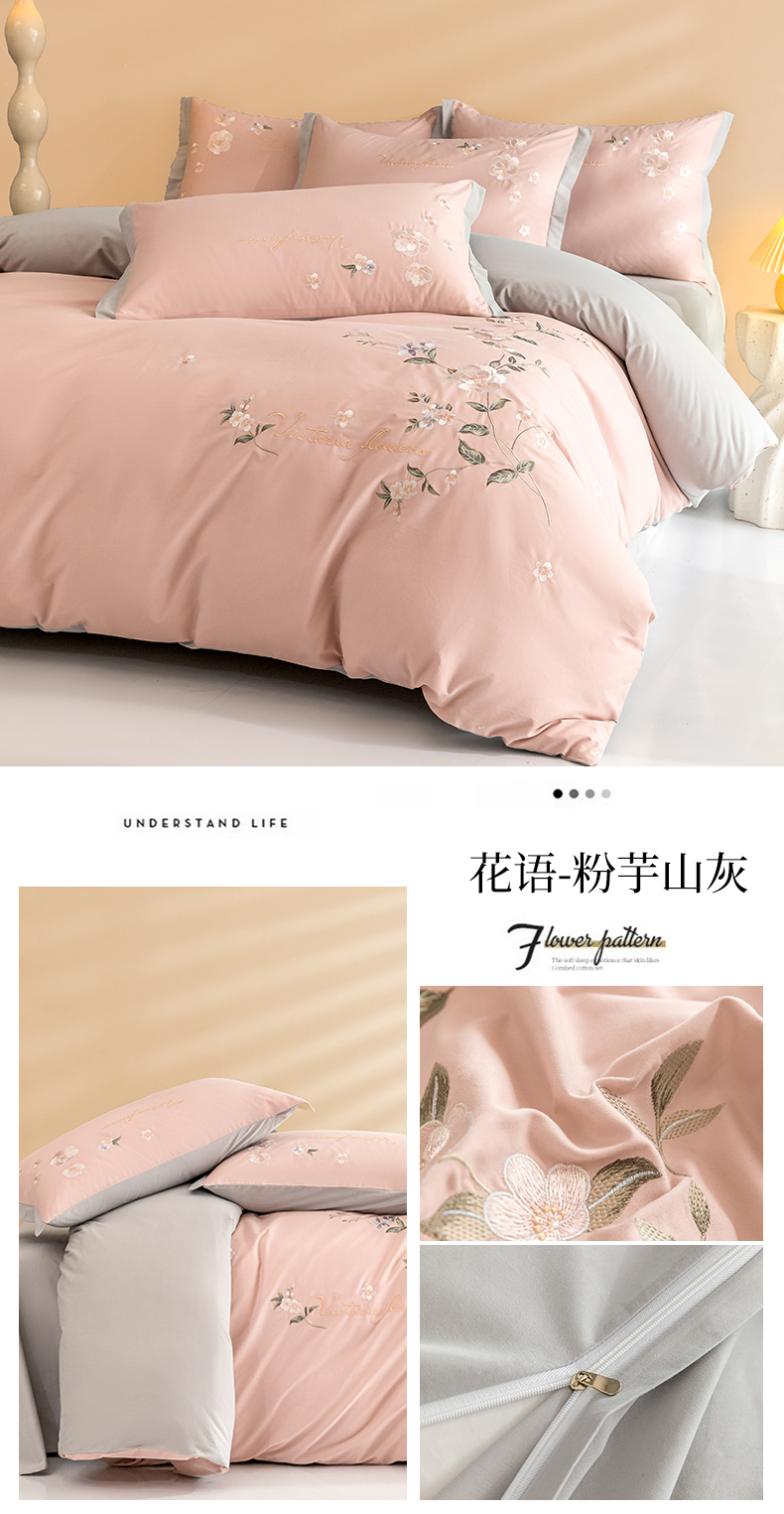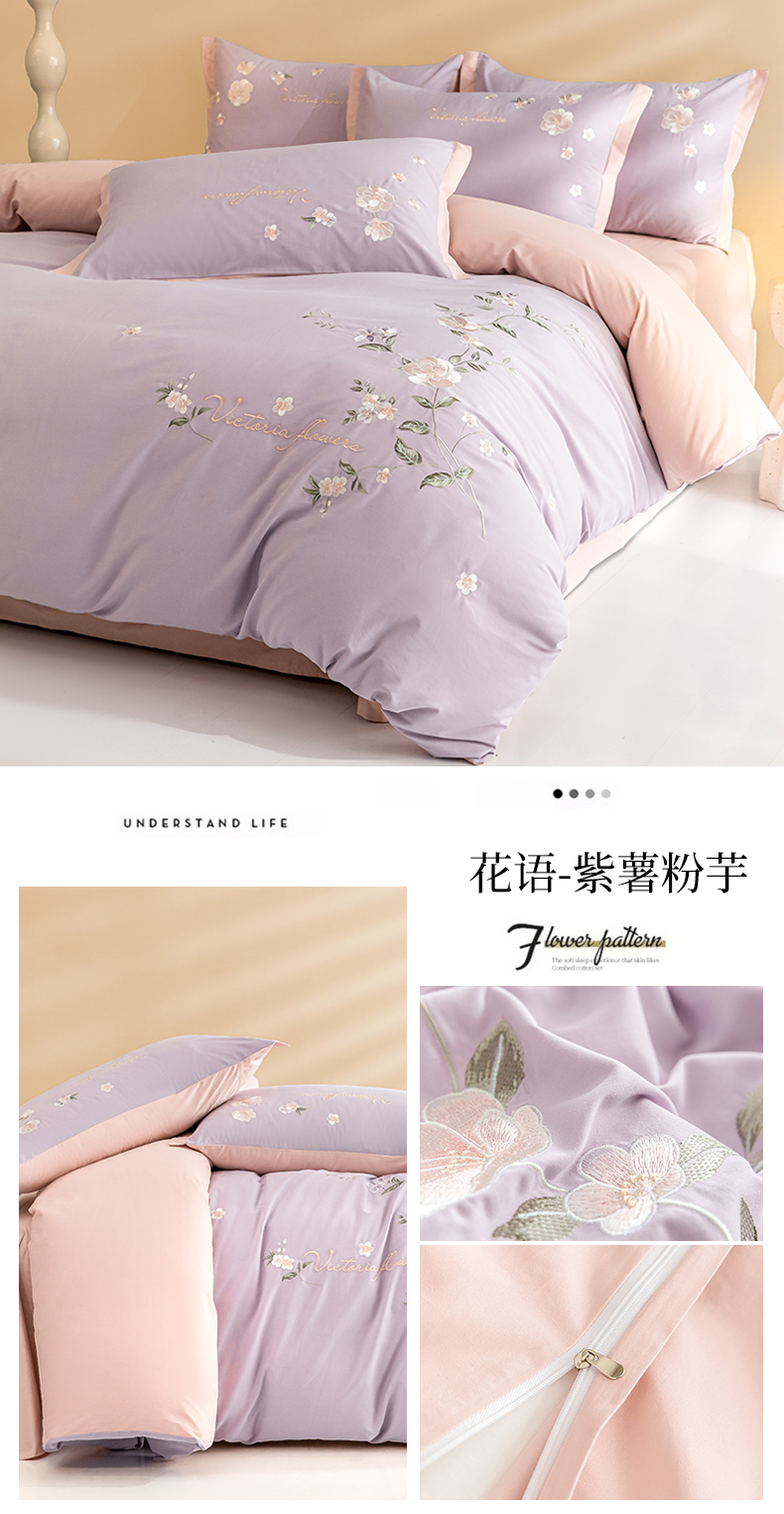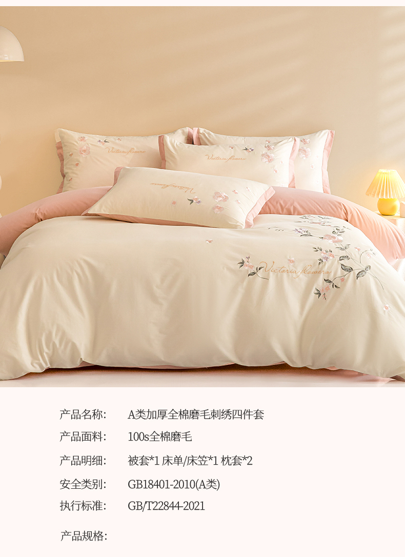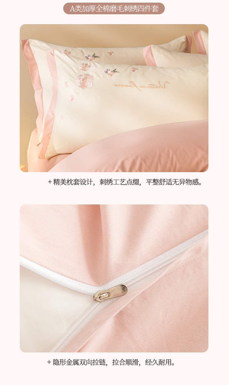 当前位置: 91家纺网 > 商品网购 > 床品套件 > 四件套 > 普通磨毛四件套 > (总)2024新保暖-秋冬A类100支全棉磨毛刺绣四件套-花语系列(礼盒包装)