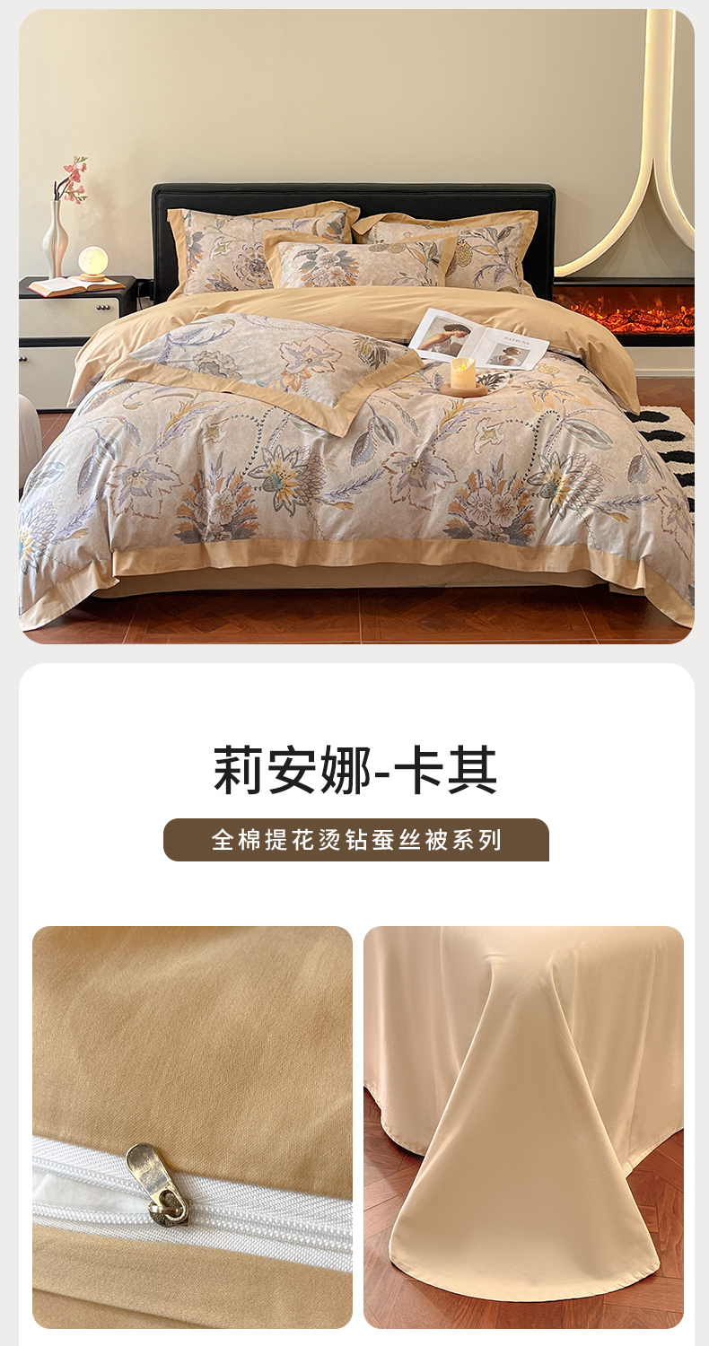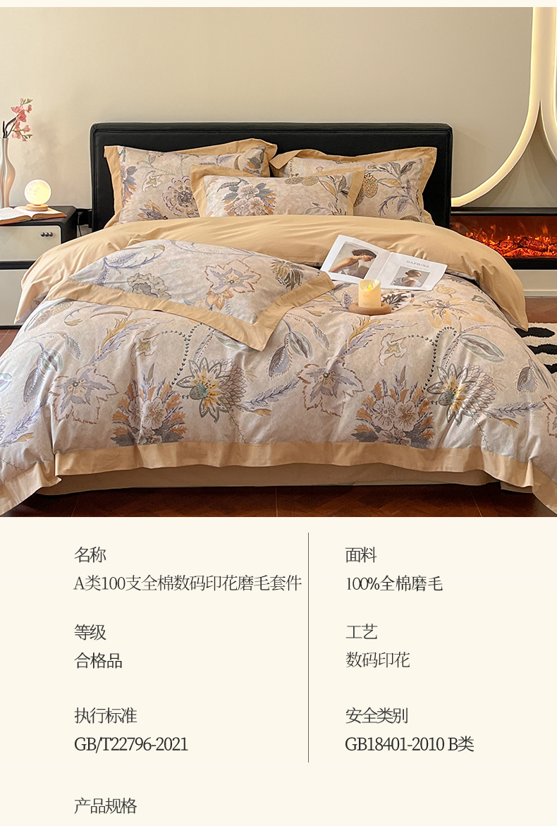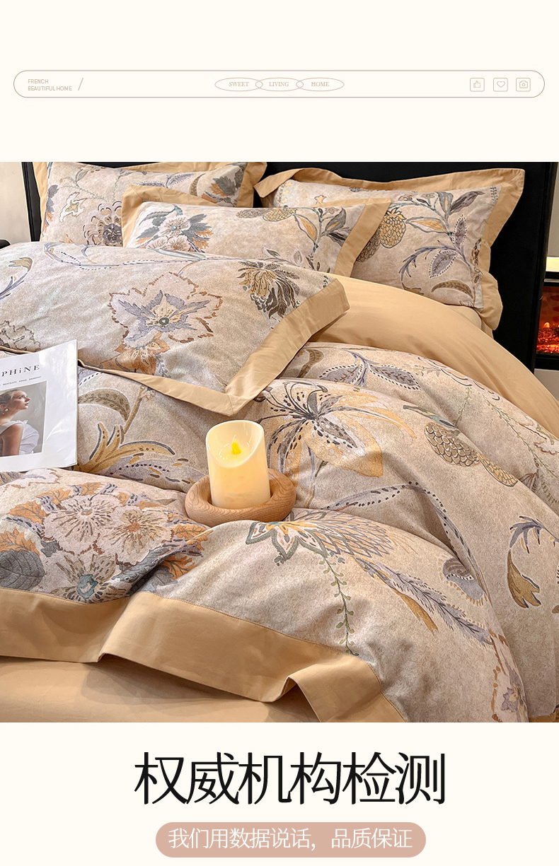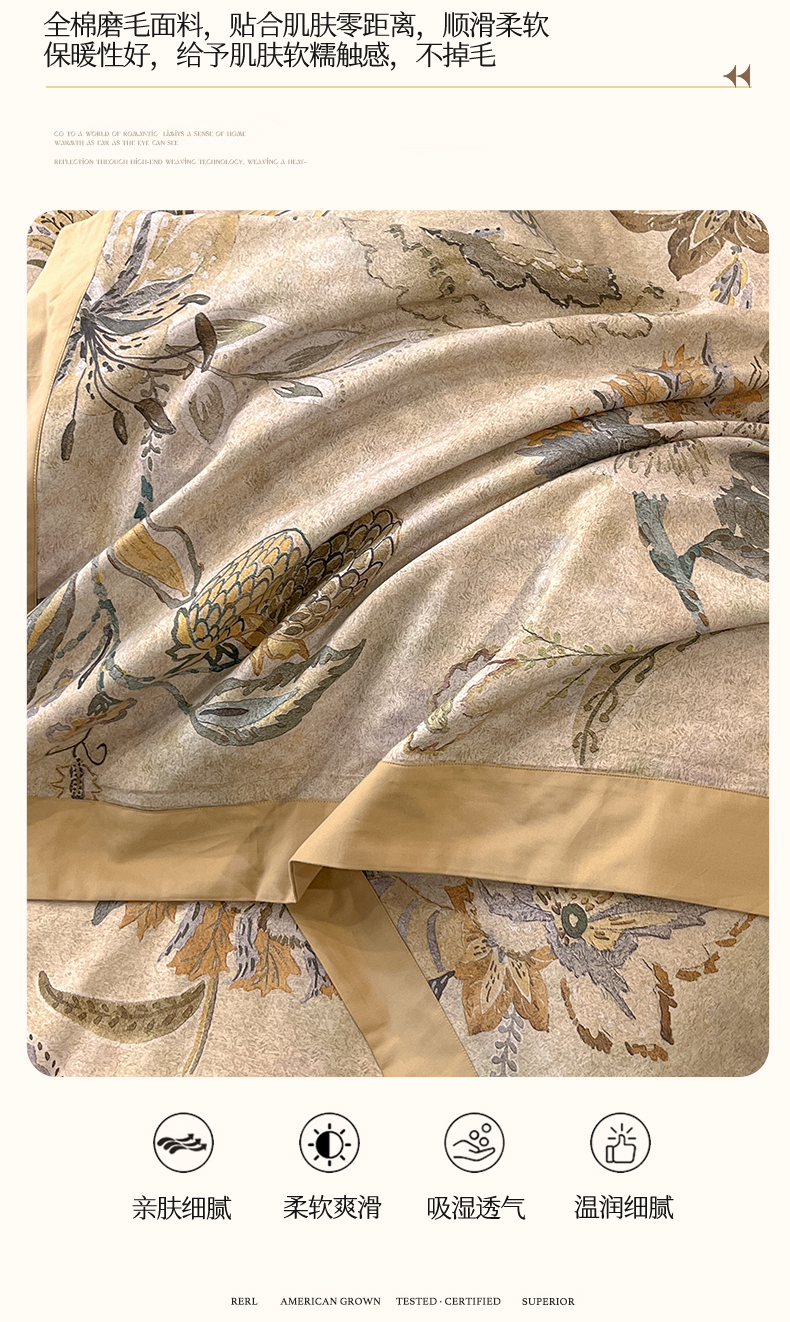 当前位置: 91家纺网 > 商品网购 > 床品套件 > 四件套 > 普通磨毛四件套 > 2024新保暖-秋冬A类100支全棉数码印花磨毛拼角四件套(礼盒包装) 100支磨毛-莉安娜-卡其