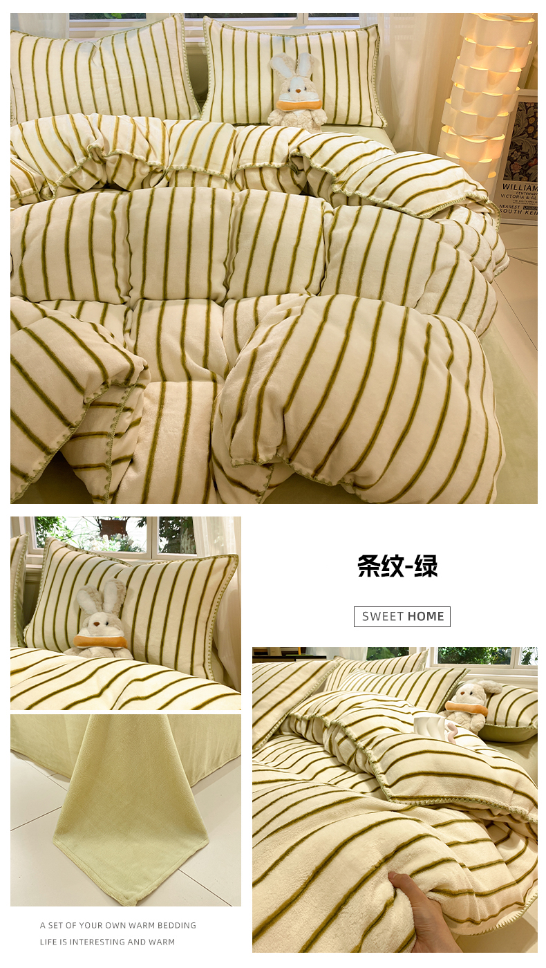 商品名称:迪梦姿家纺 2025新款牛奶绒条纹印花三角针四件套 条纹-绿