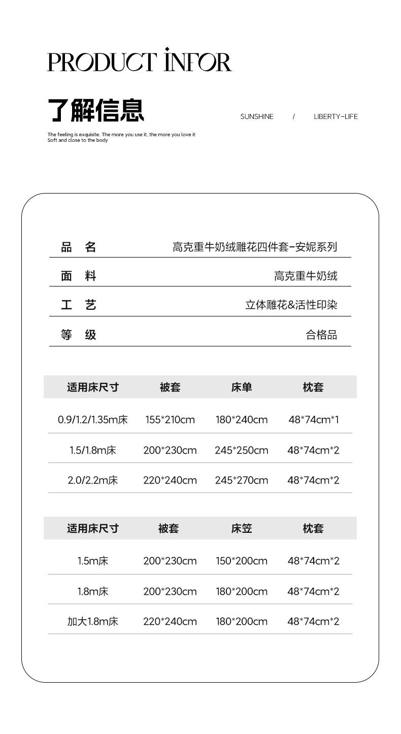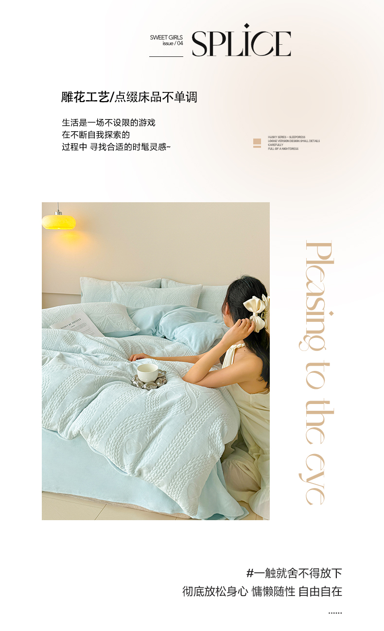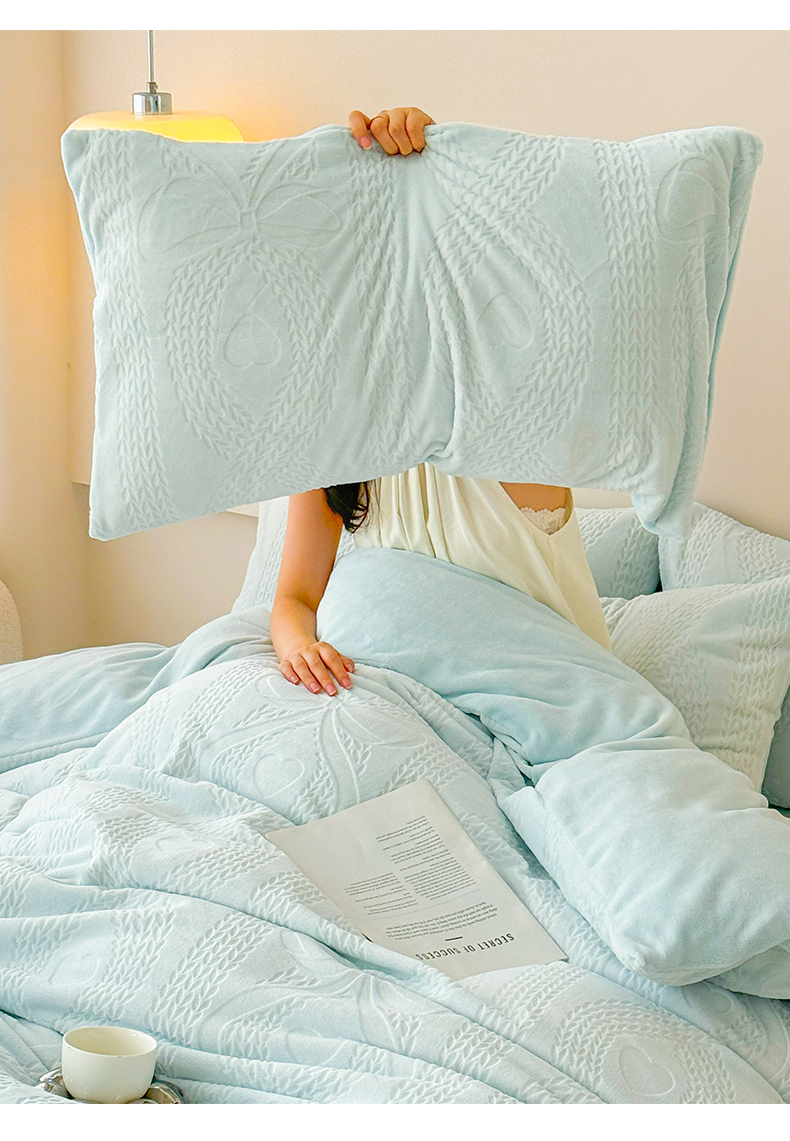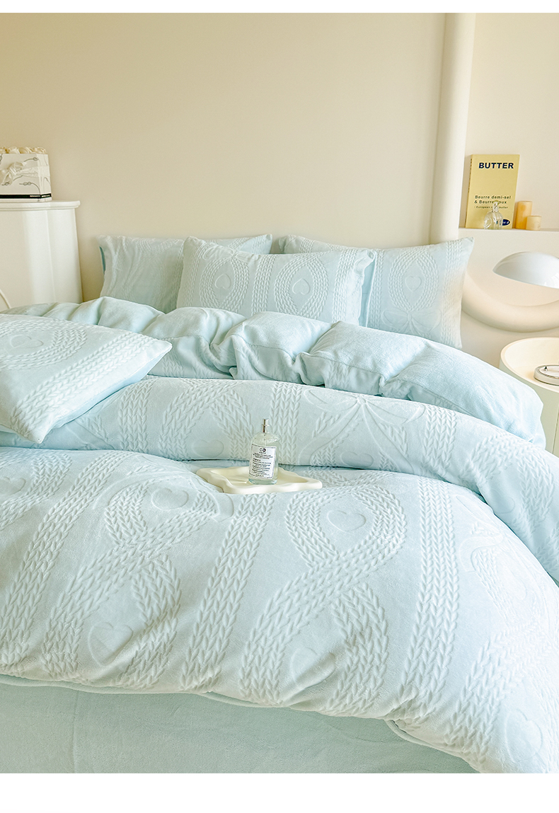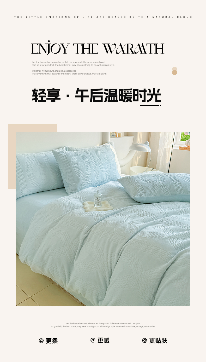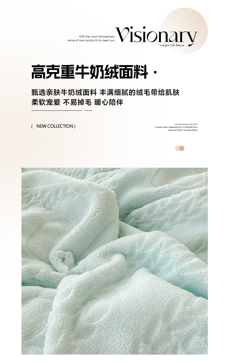 当前位置: 91家纺网 > 商品网购 > 床品套件 > 四件套 > 牛奶绒四件套 > 莱登卡奴 2024新款高克重牛奶绒雕花四件套-安妮系列 麦芮绿清烟蓝