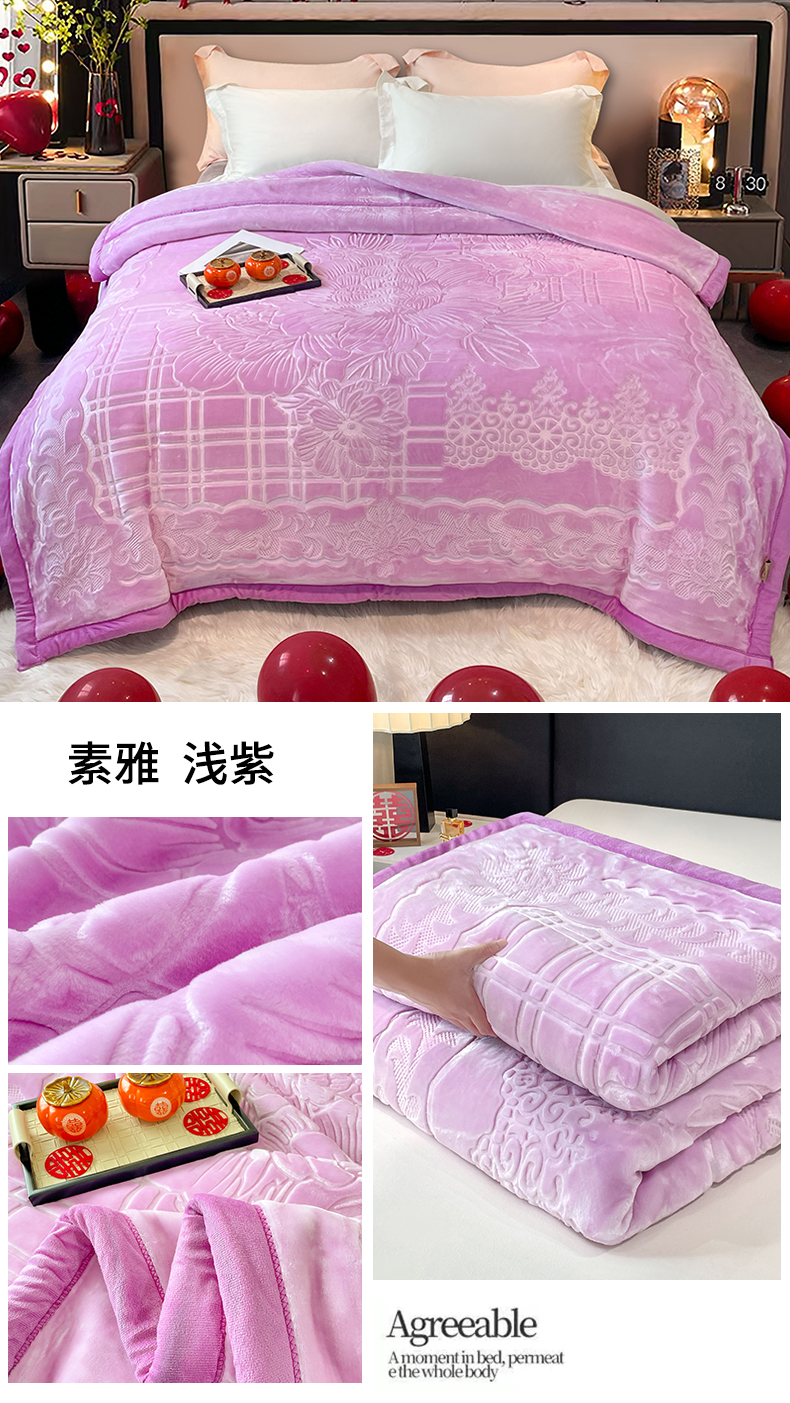 凯轩毛毛毯毯子网销专供 2024新款5D压花素色云毛毯毯子毛毛毯毯子毛毯毯子子 素雅-浅紫