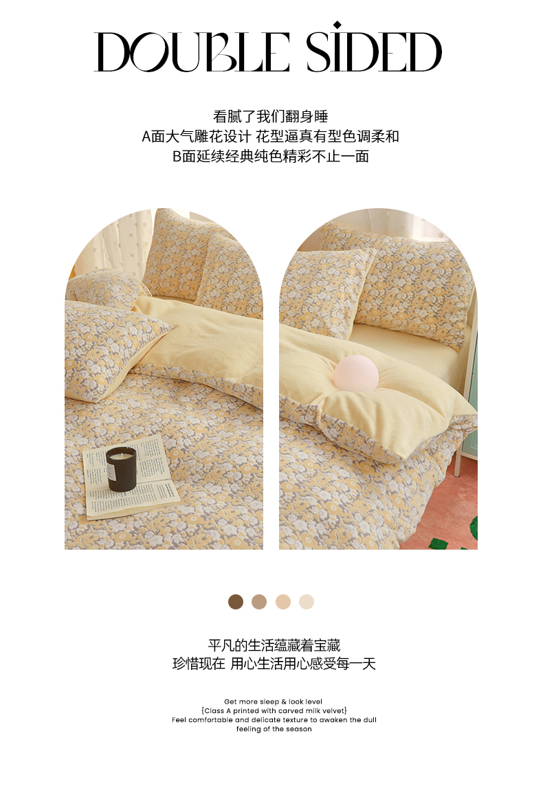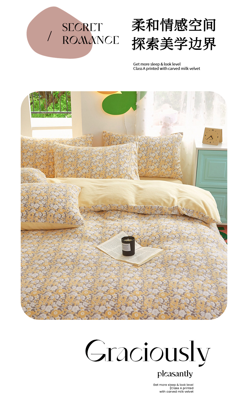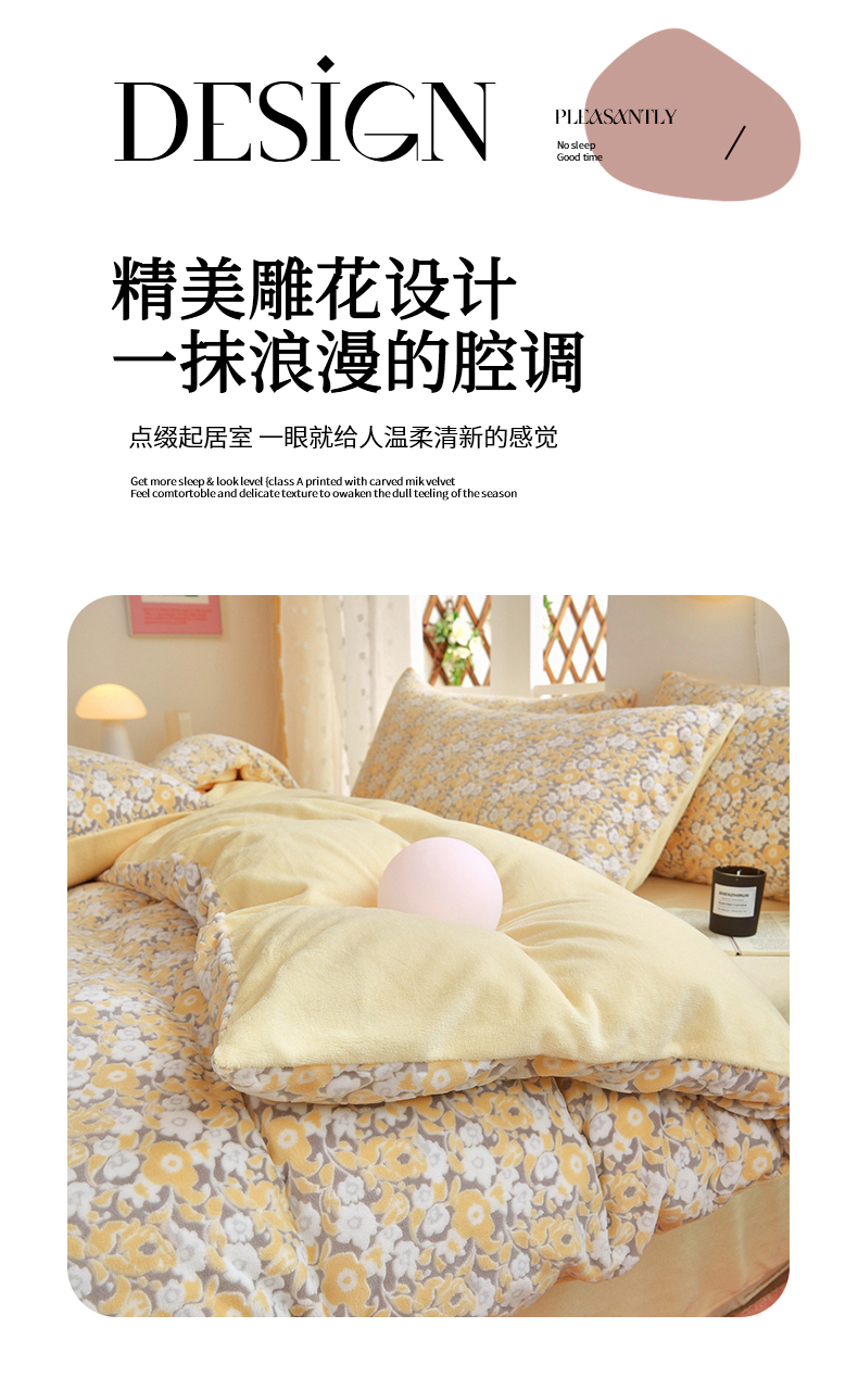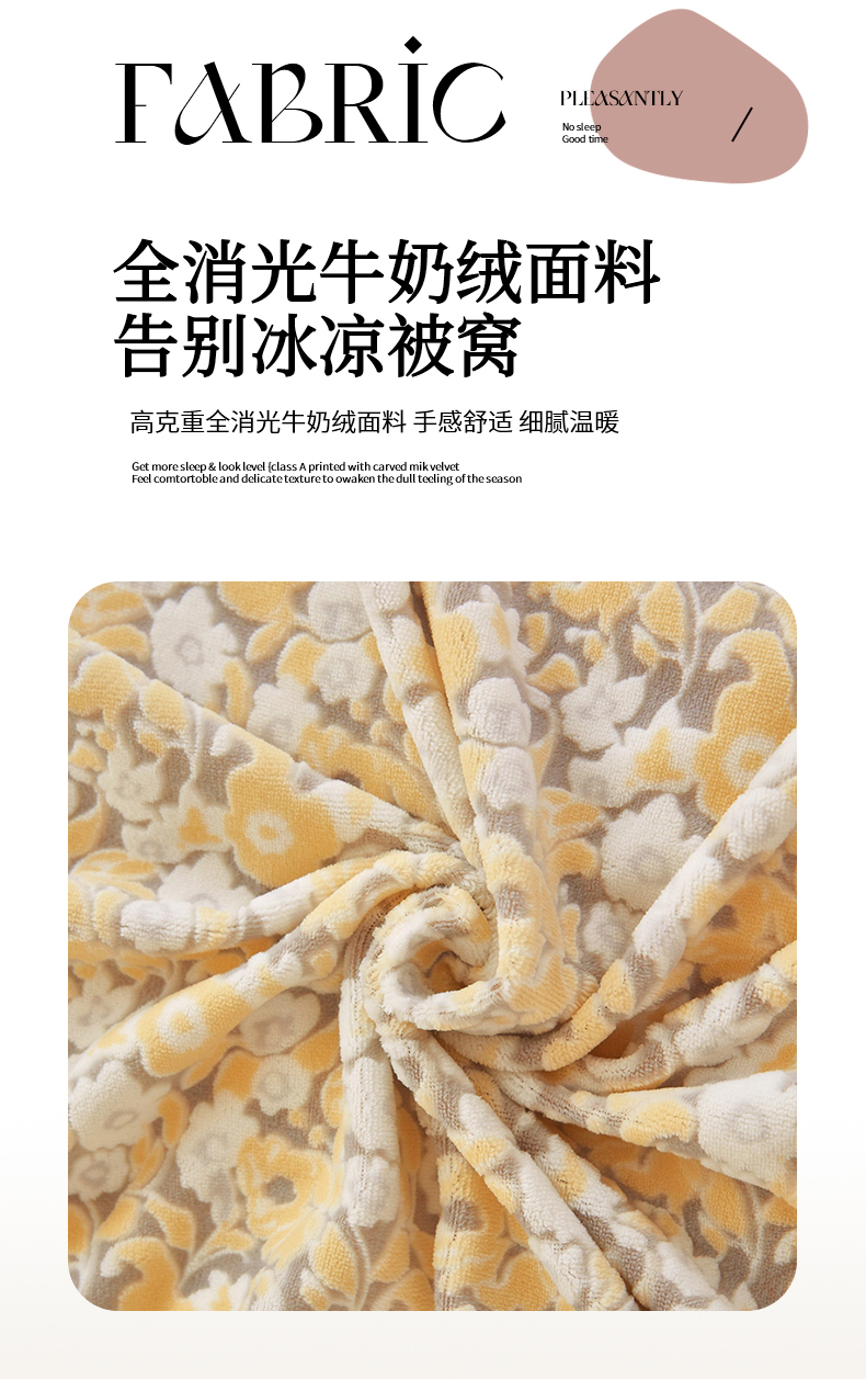 当前位置: 91家纺网 > 商品网购 > 床品套件 > 四件套 > 牛奶绒四件套 > 菡宝 2024新款雕花绒230g全消光牛奶绒四件套及单品 - 四件套 蔓朵黄