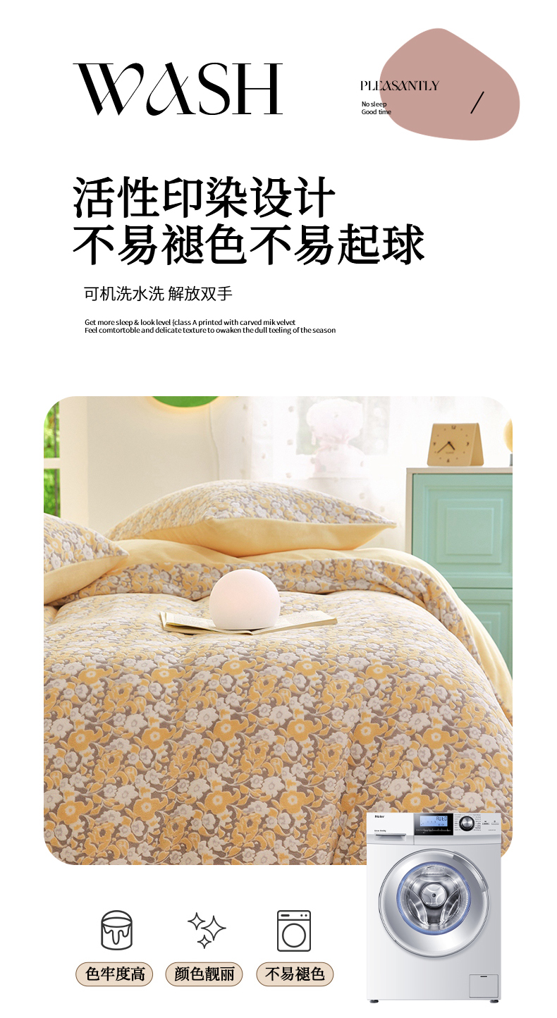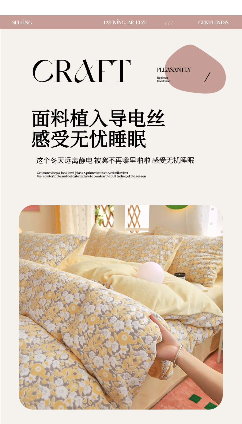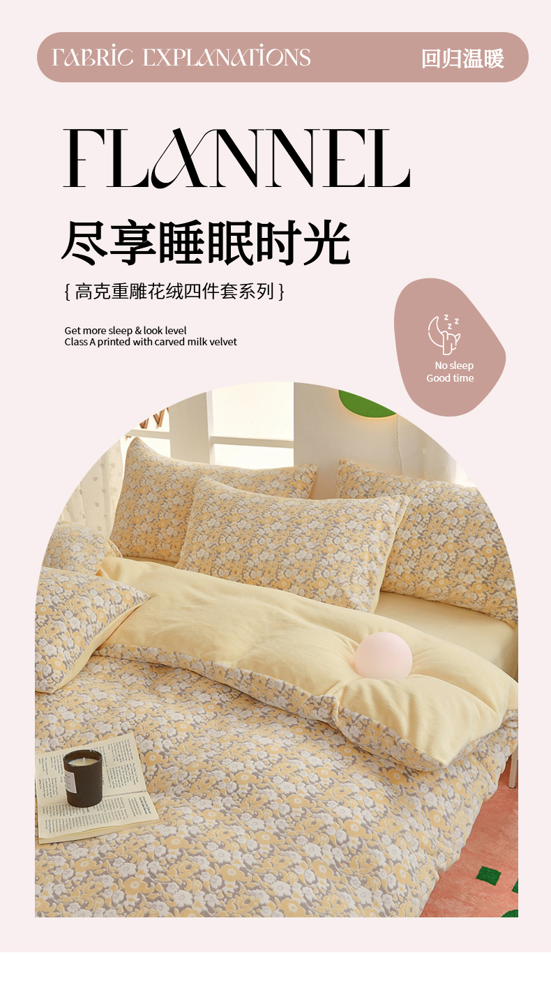 当前位置: 91家纺网 > 商品网购 > 床品套件 > 四件套 > 牛奶绒四件套 > 菡宝 2024新款雕花绒230g全消光牛奶绒四件套及单品 - 四件套 蔓朵黄