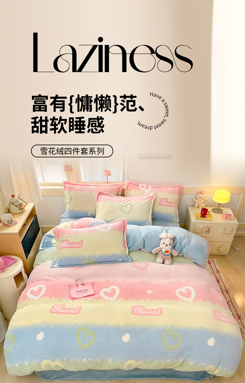 (总)川悦生活 2025新款立体雪花绒印花大床四件套系列一场景一,爱米兔,冰激凌小熊,波波熊,彩虹爱心粉,彩虹爱心蓝,彩虹爱语粉,彩虹爱语蓝,藏蓝星语,哒哒鸭丫,嘎嘎小熊,花田米兔,花园蝴蝶,橘兔,可爱熊,快乐鸭鸭,蜜语奶兔,奶芙小花,奶咖小熊,奶味云朵,妮娜兔,泡芙小兔,巧克力熊,秋语-红豆,少女小兔,塔丽小熊猫,桃心爱语,甜蜜日常粉,甜系粉熊,甜系龙龙,甜心花田,小狗物语,小熊花园,小雪狗,小郁金,幸福甜兔,熊小巴,樱桃啵啵,郁金奶兔,云朵奶狗,ins樱桃,lucky熊猫