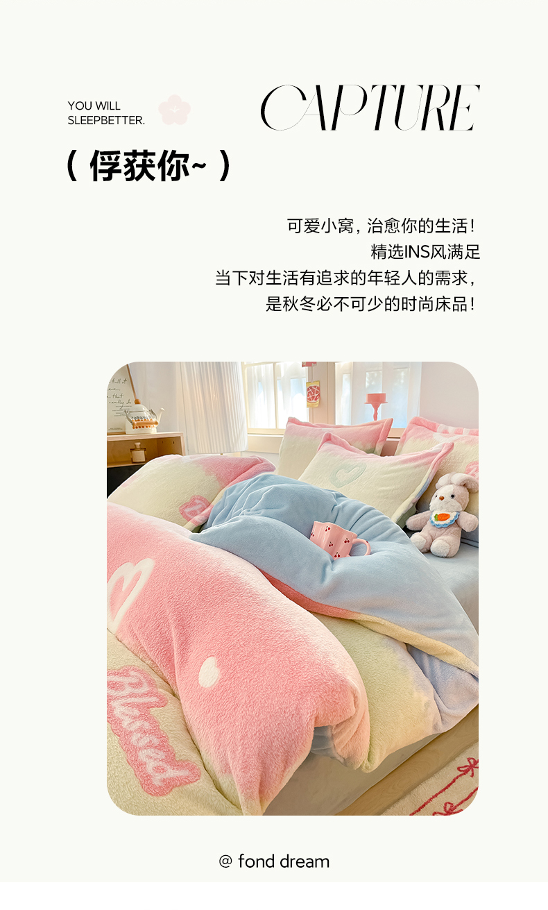 (总)川悦生活 2025新款立体雪花绒印花四件套学生床系列一场景一,ins樱桃,爱米兔,冰激凌小熊,波波熊,啵啵草莓,彩虹爱心粉,彩虹爱心蓝,彩虹爱语粉,彩虹爱语蓝,哒哒鸭丫,嘎嘎小熊,橘兔,可爱熊,可可小狗,快乐鸭鸭,蜜语奶兔,奶芙小花,奶咖小熊,奶味云朵,妮娜兔,巧克力熊,桃心爱语,甜蜜日常粉,甜系粉熊,甜系龙龙,小熊花园,幸福甜兔,熊小巴,郁金奶兔