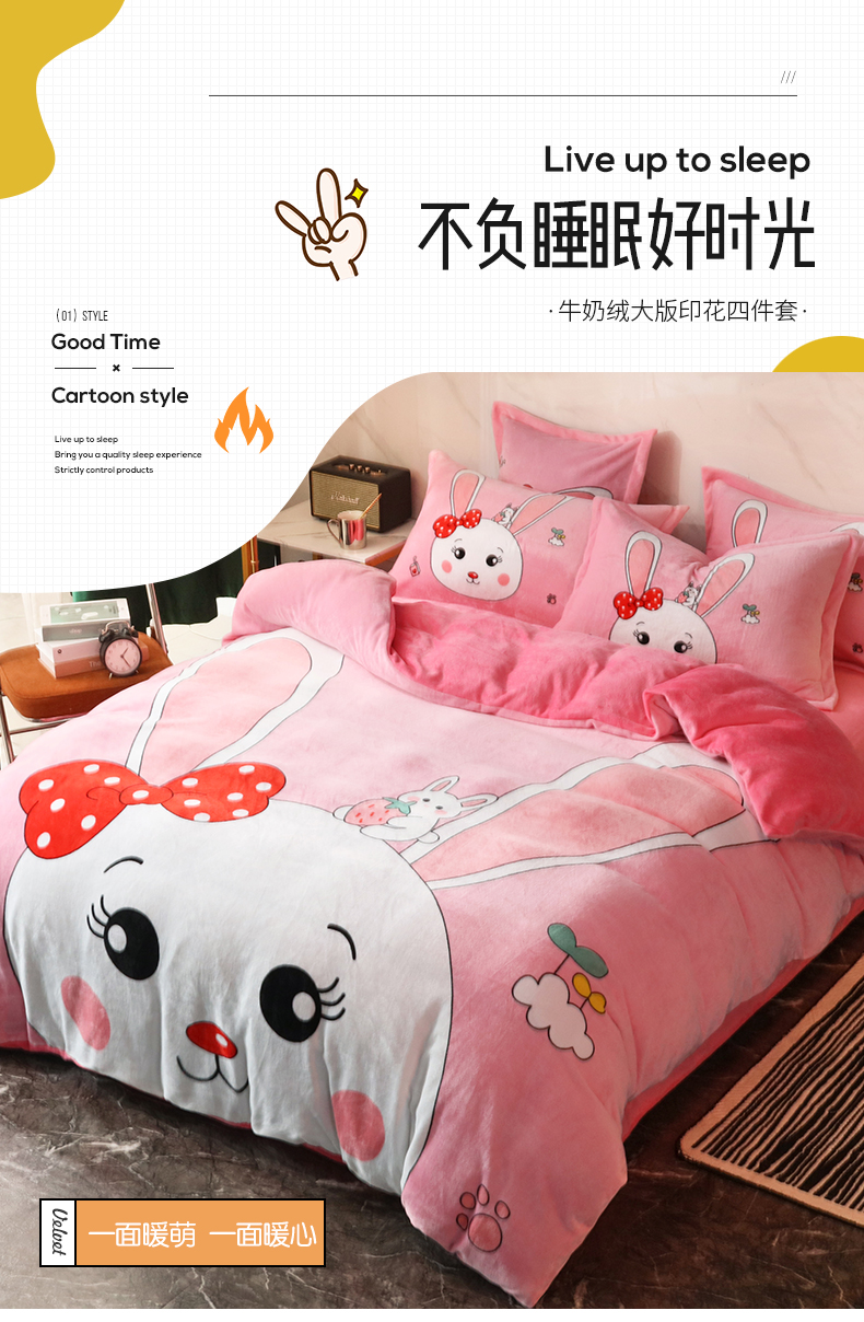 当前位置: 91家纺网 > 商品网购 > 床品套件 > 四件套 > 牛奶绒四件套 > 宝薇 2024新款加厚牛奶绒大版卡通四件套 甜心公主绒