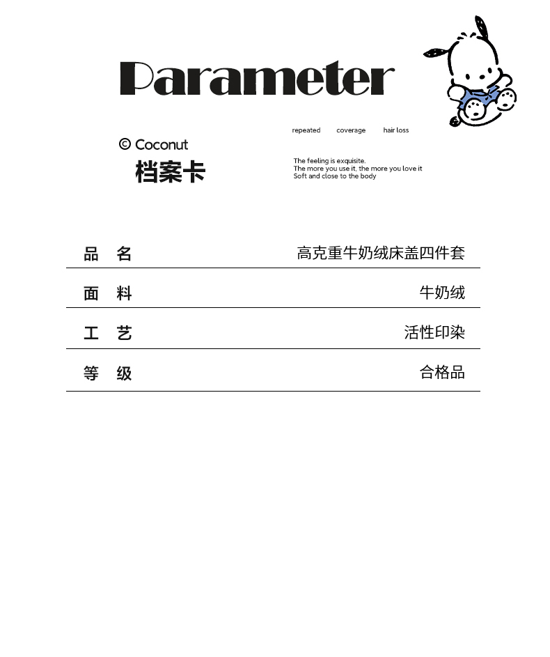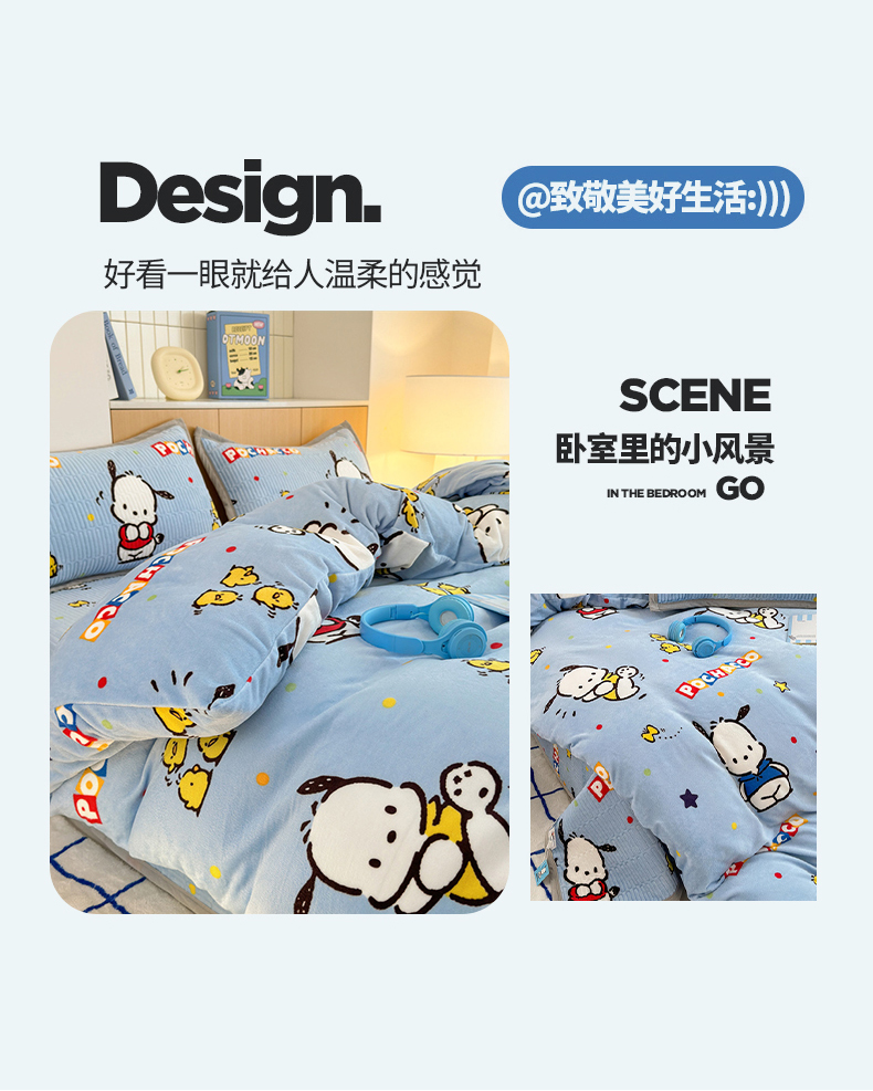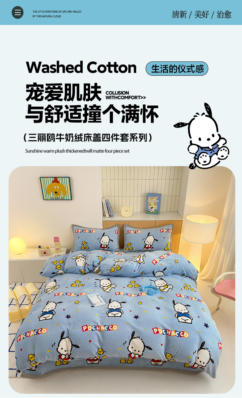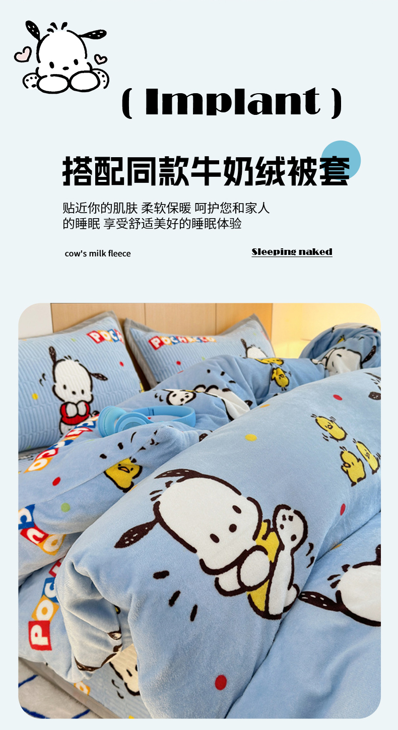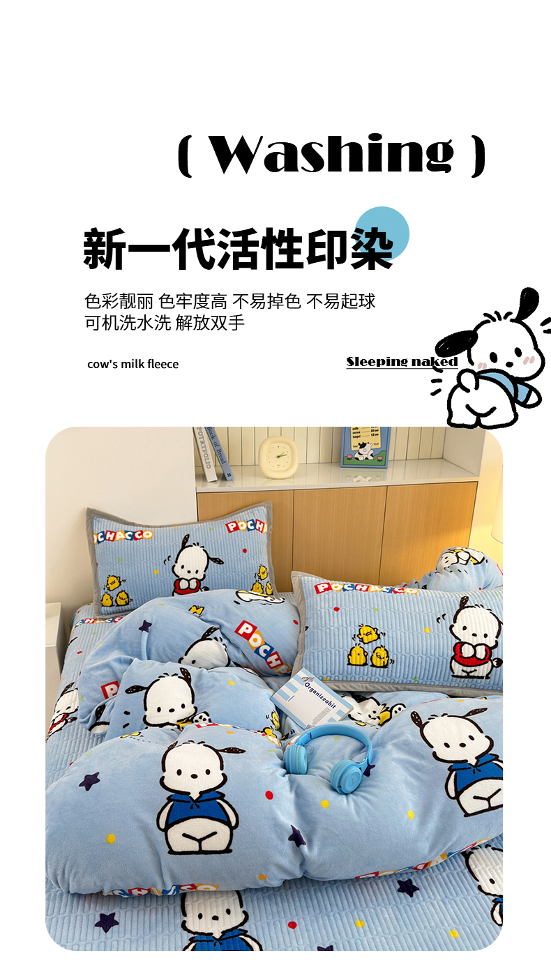 当前位置: 91家纺网 > 商品网购 > 床品套件 > 四件套 > 牛奶绒四件套 > 希诺家居 2024新款三丽鸥正版授权牛奶绒被套床盖四件套 呆萌帕恰狗