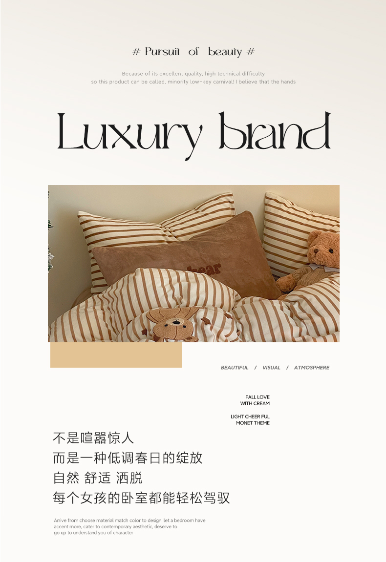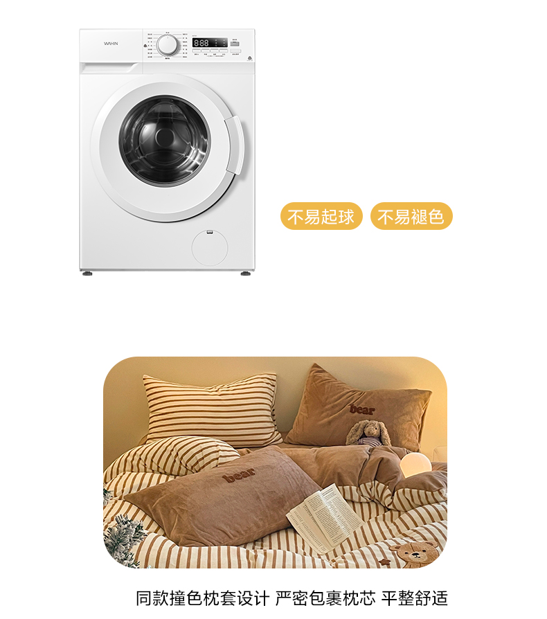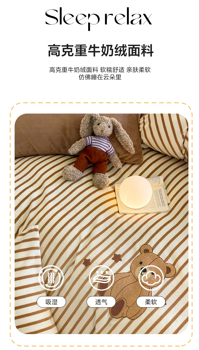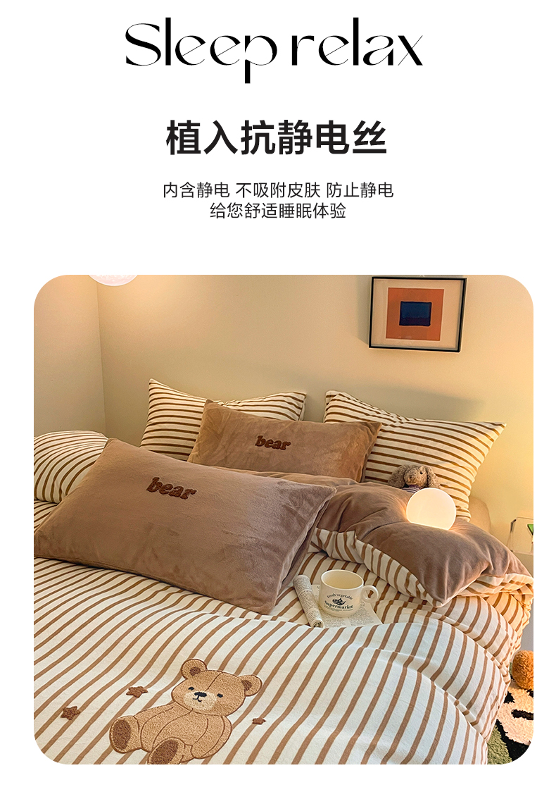 商品名称:如一 2024新款元素毛巾绣条纹牛奶绒四件套 抱抱熊