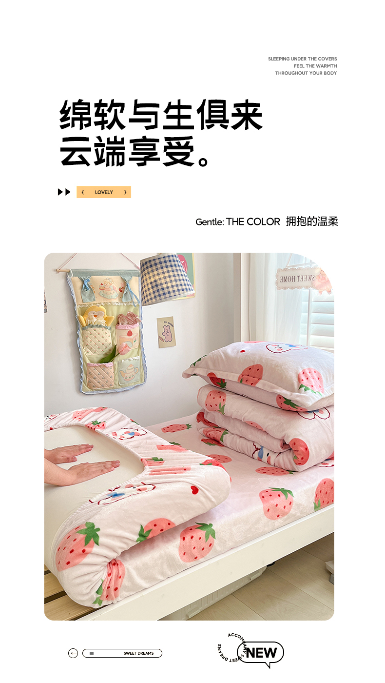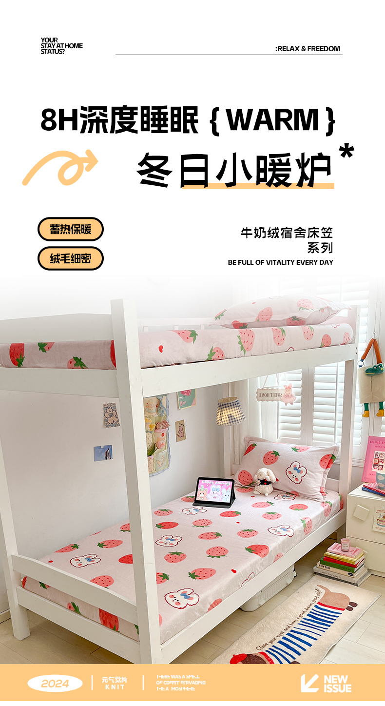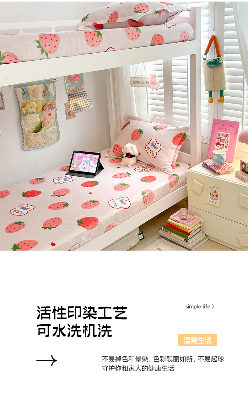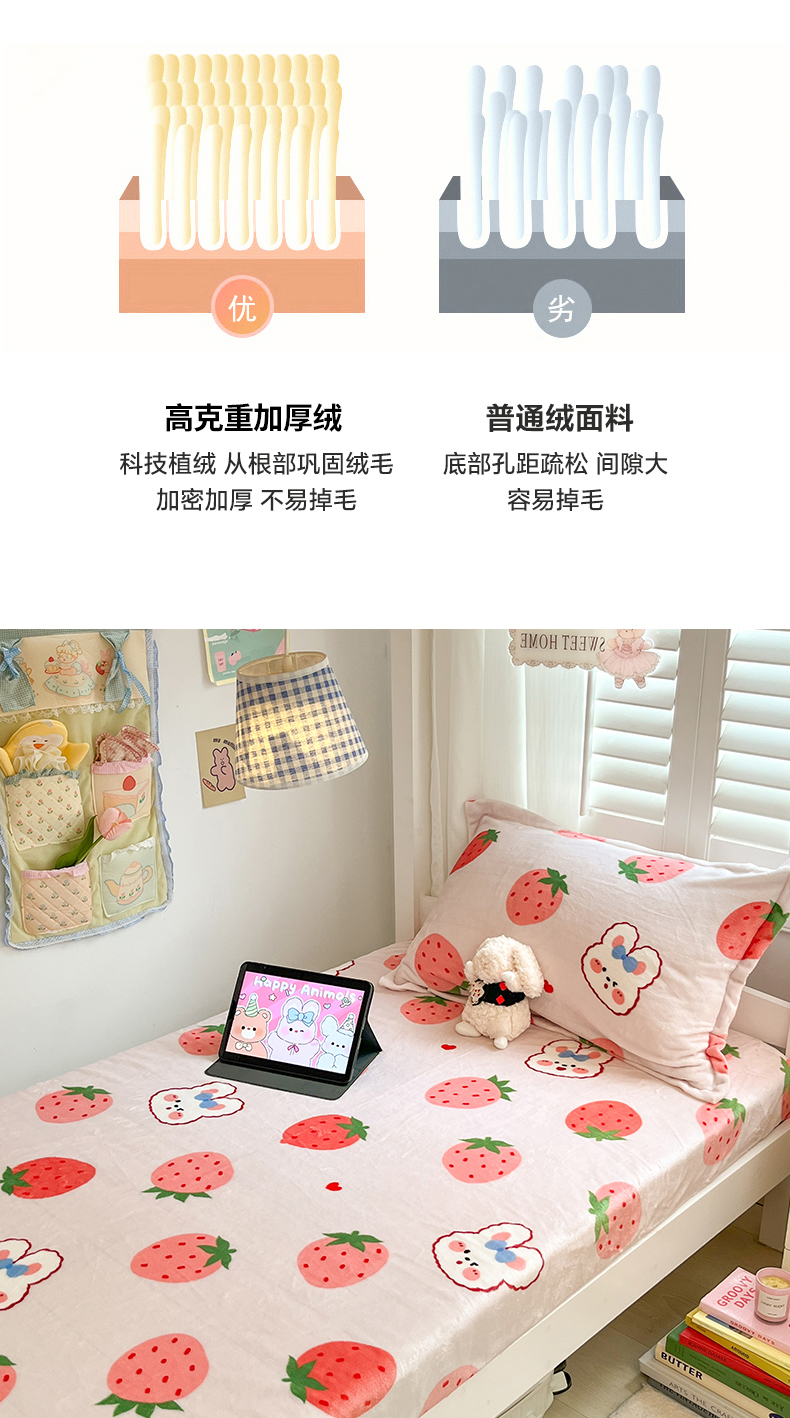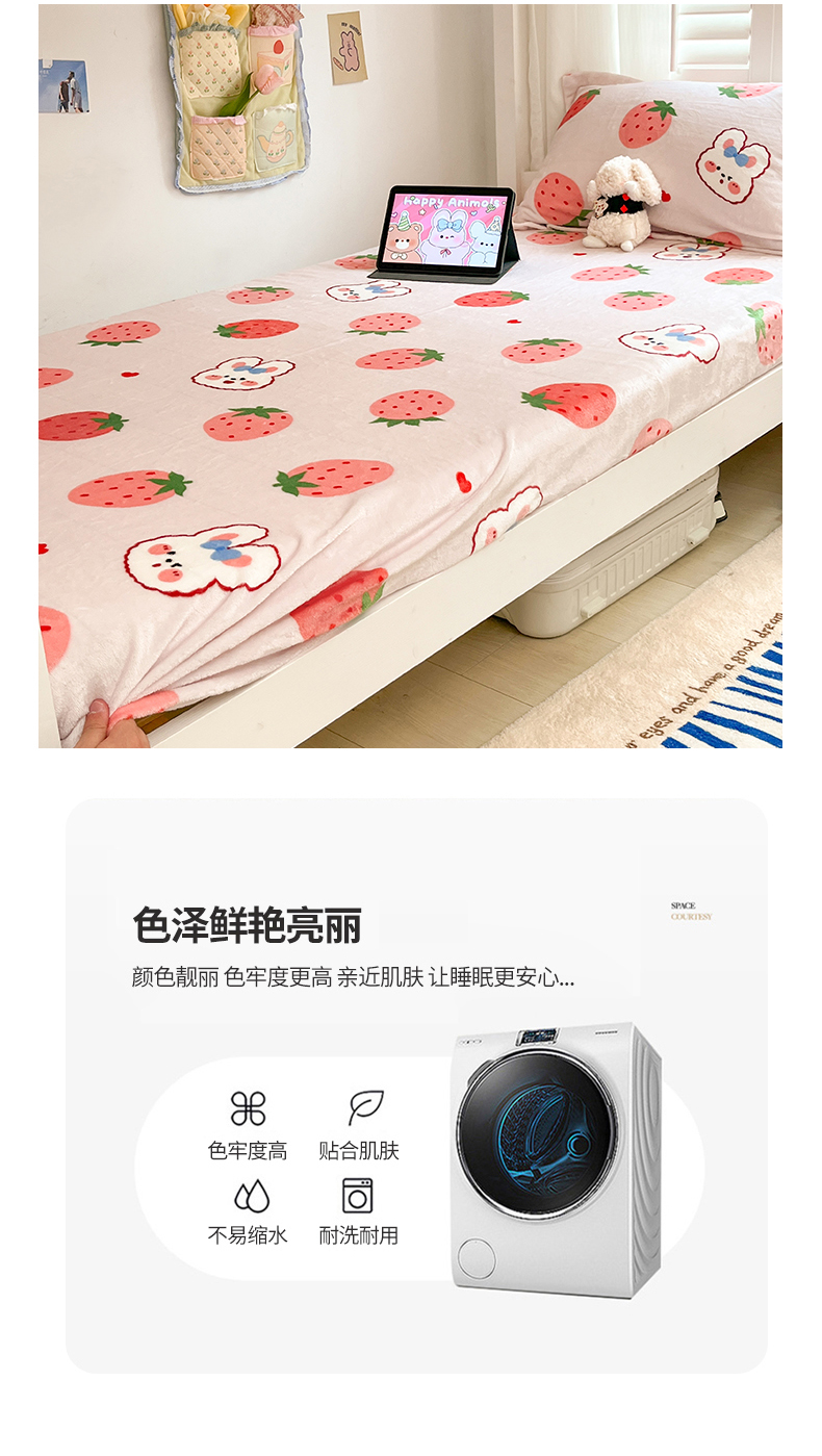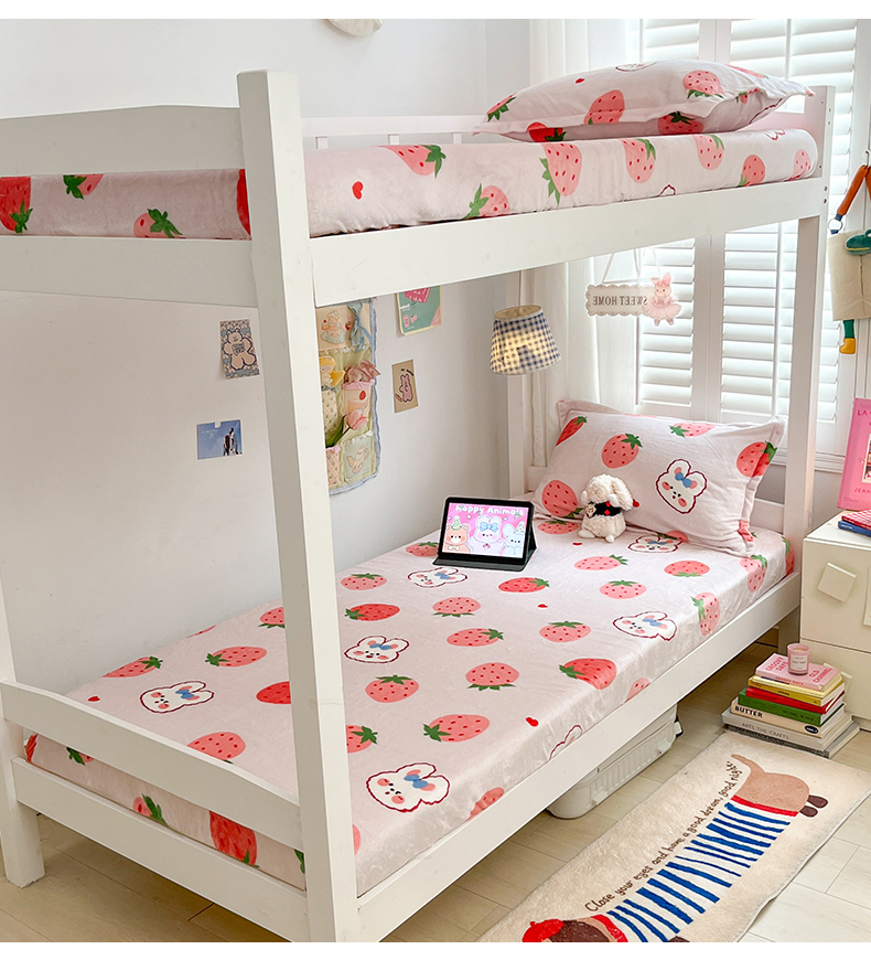 • 91家纺网 家纺一手货源 找家纺 川悦生活 2024新款宿舍牛奶绒单床笠 床笠奶莓小兔