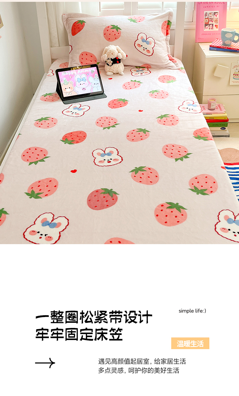 川悦生活 2024新款宿舍牛奶绒单床笠 床笠奶莓小兔