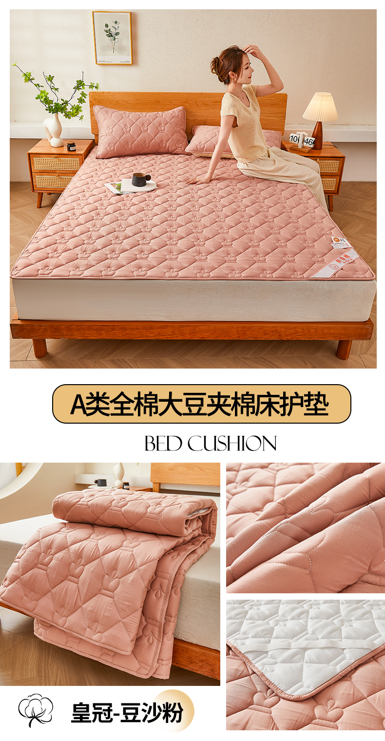 商品名称:伊人坊 2024新款全棉大豆羽丝棉床护垫普通款 皇冠-豆沙粉