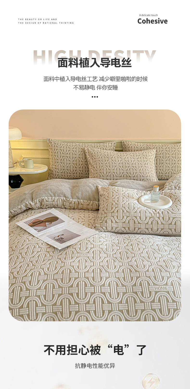 商品名称:其奥 2025新款8斤A类230克牛奶绒提花烂花四件套床笠款床单款 巴克曼 米灰