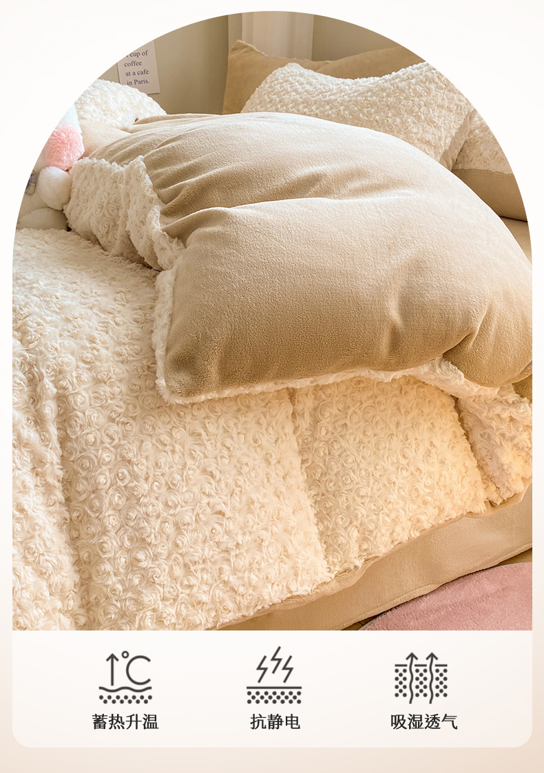 当前位置: 91家纺网 > 商品网购 > 床品套件 > 四件套 > 牛奶绒四件套 > 名兮家居 2024新款高克重兔毛绒牛奶绒四件套 玫瑰-白