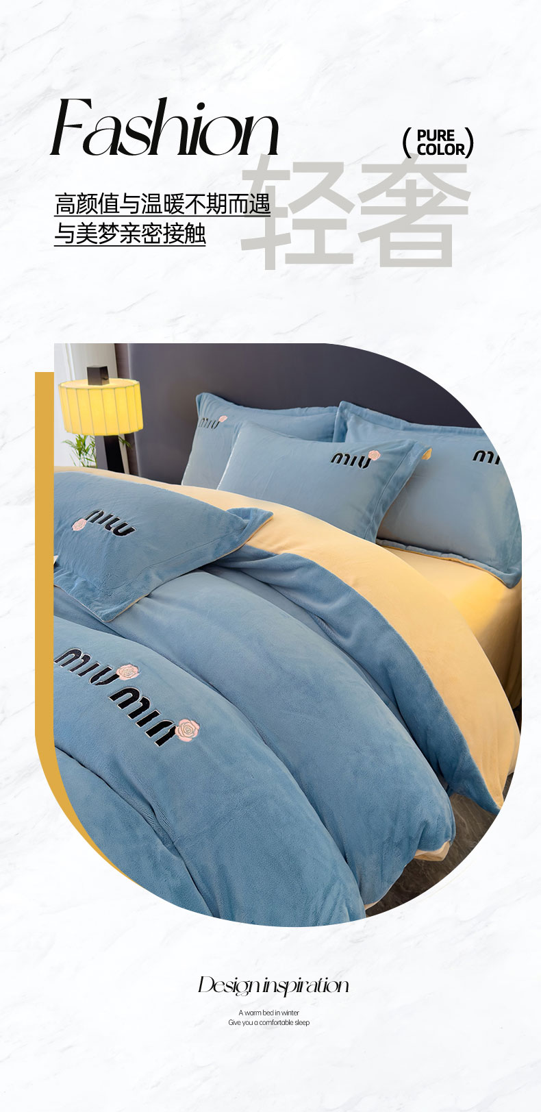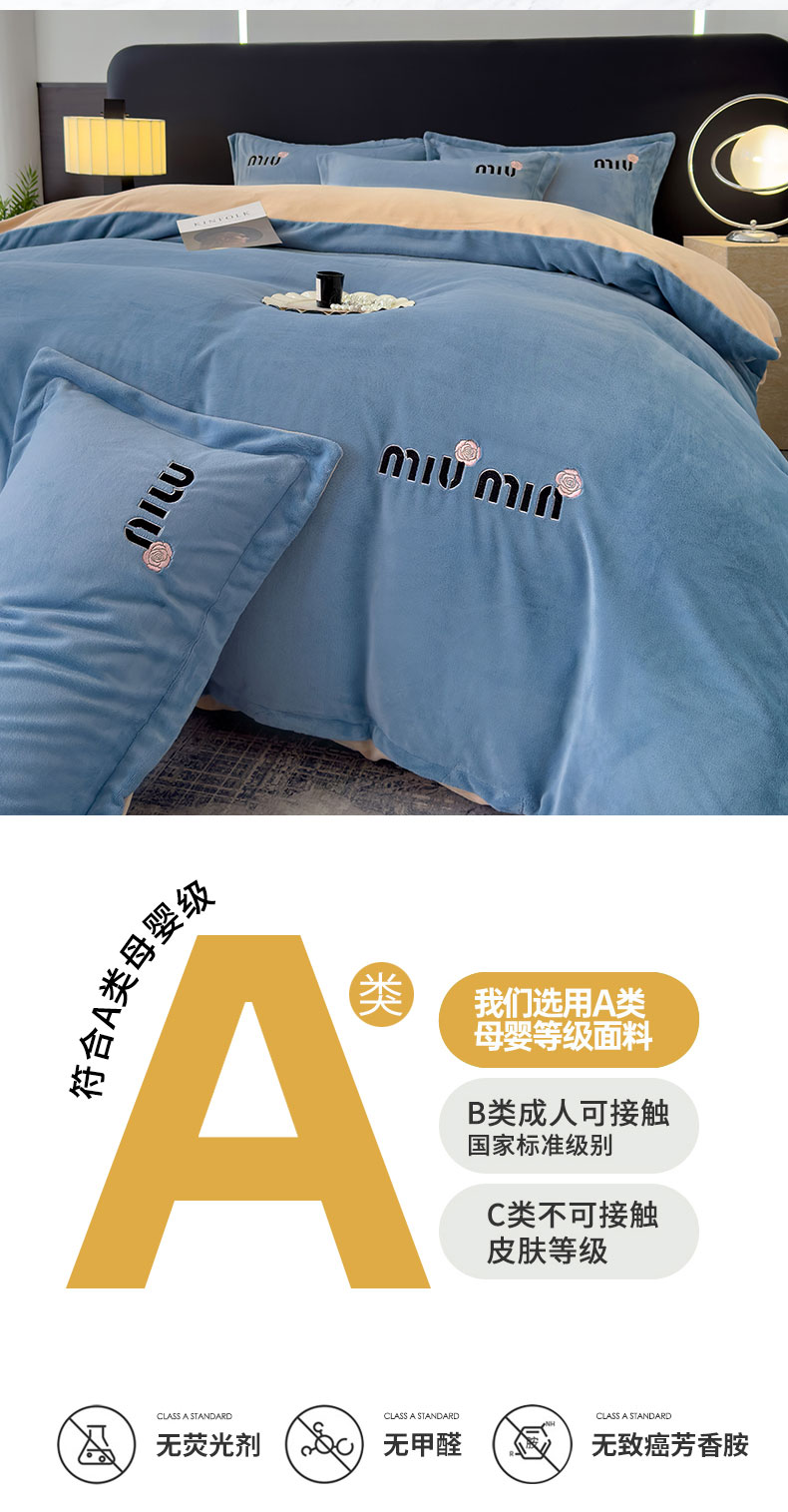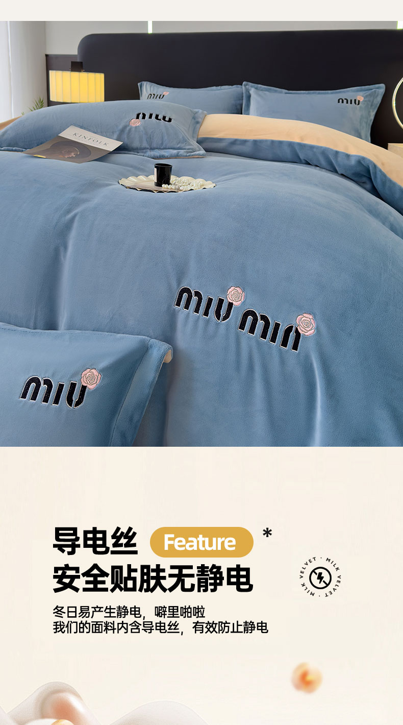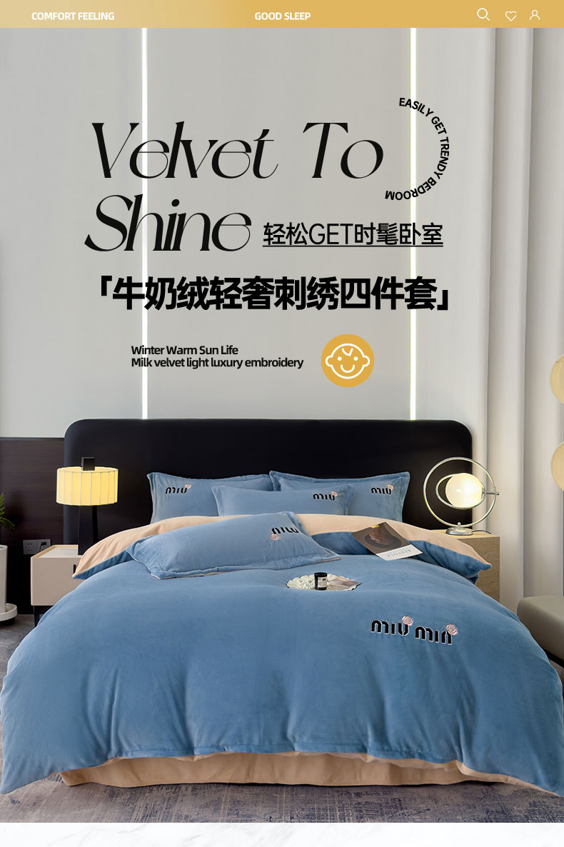 当前位置: 91家纺网 > 商品网购 > 床品套件 > 四件套 > 牛奶绒四件套 > 灰鲸 2025新款A类牛奶绒轻奢刺绣四件套 miumin-邃蓝+香槟