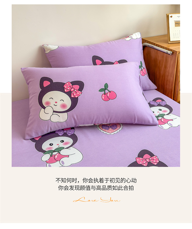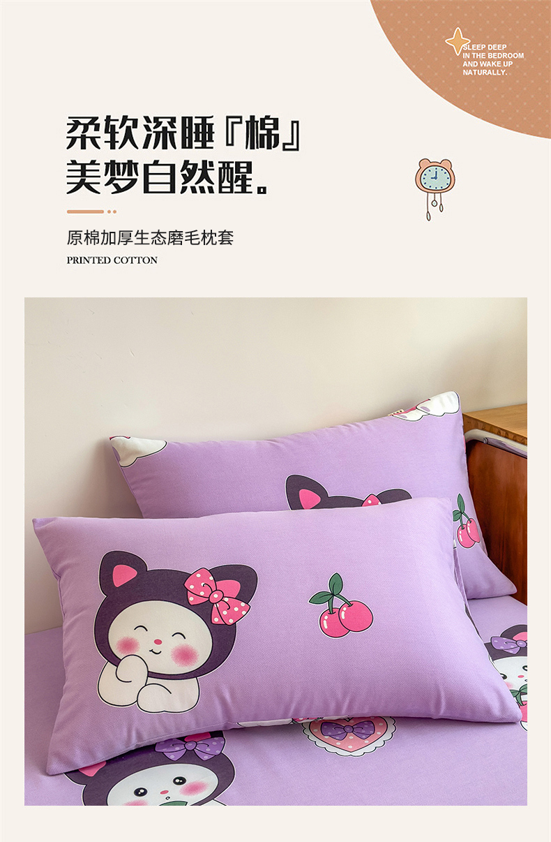 芃成家纺 2024新款原棉加厚生态磨毛单枕套 樱桃库洛米