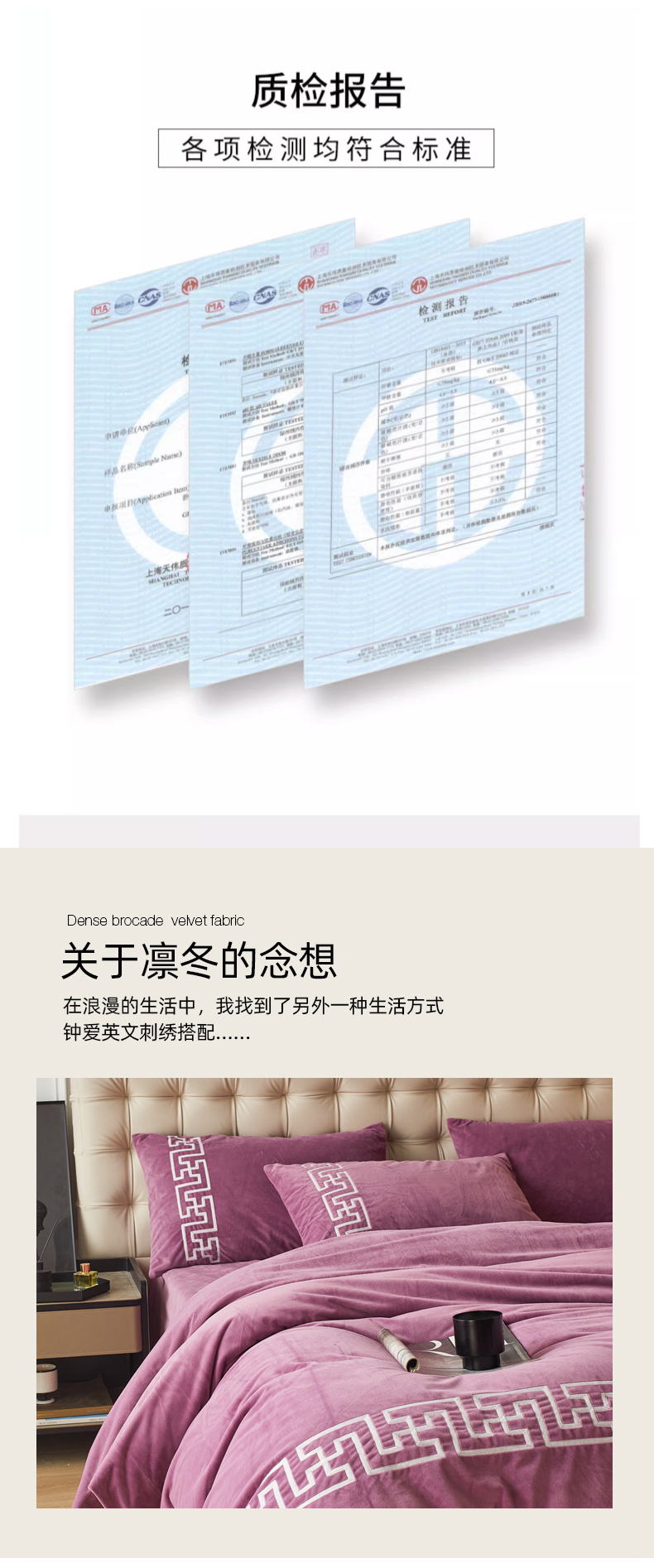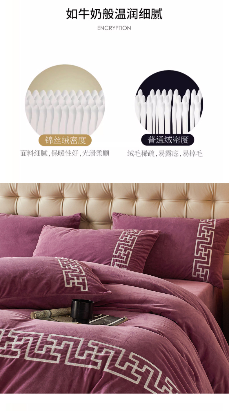 商品名称:安莱生活 2024新款高克重牛奶绒锦丝绒美式毛巾绣巴洛克四件套 巴洛克-魅紫