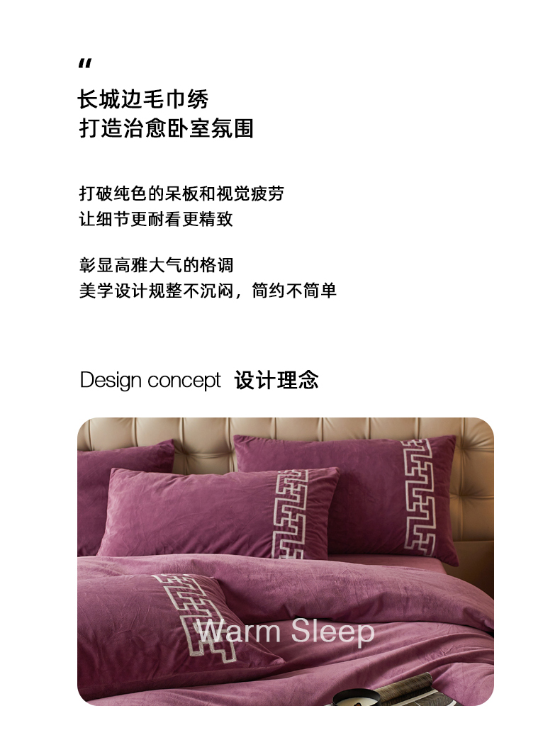 安莱生活 2024新款高克重牛奶绒锦丝绒美式毛巾绣巴洛克四件套 巴洛克-魅紫