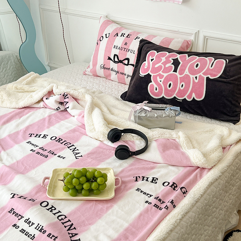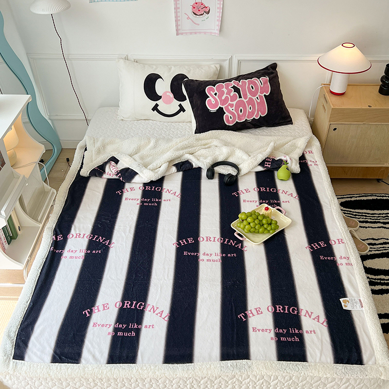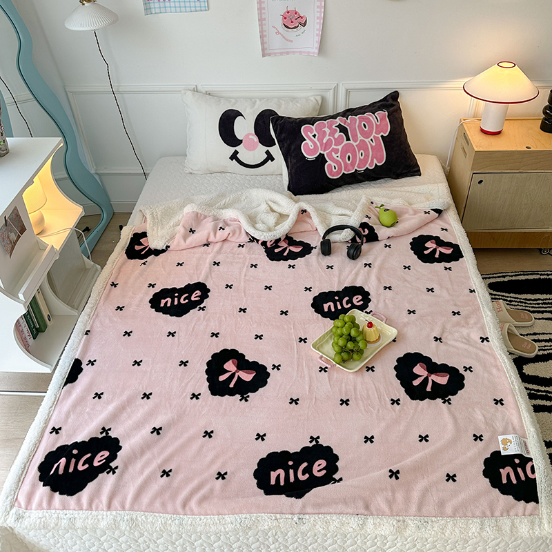 昔可家纺 2024新款羊羔绒牛奶绒毛毯系列(三)-场景二-少女风系列 黑粉芭蕾蝴蝶结