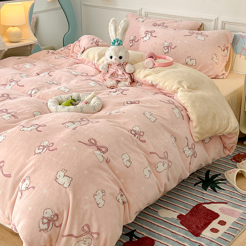 (总)昔可家纺 2024新款印花牛奶绒四件套系列-洛丽塔风,萝莉小兔,小熊烘焙屋,小熊玩偶屋