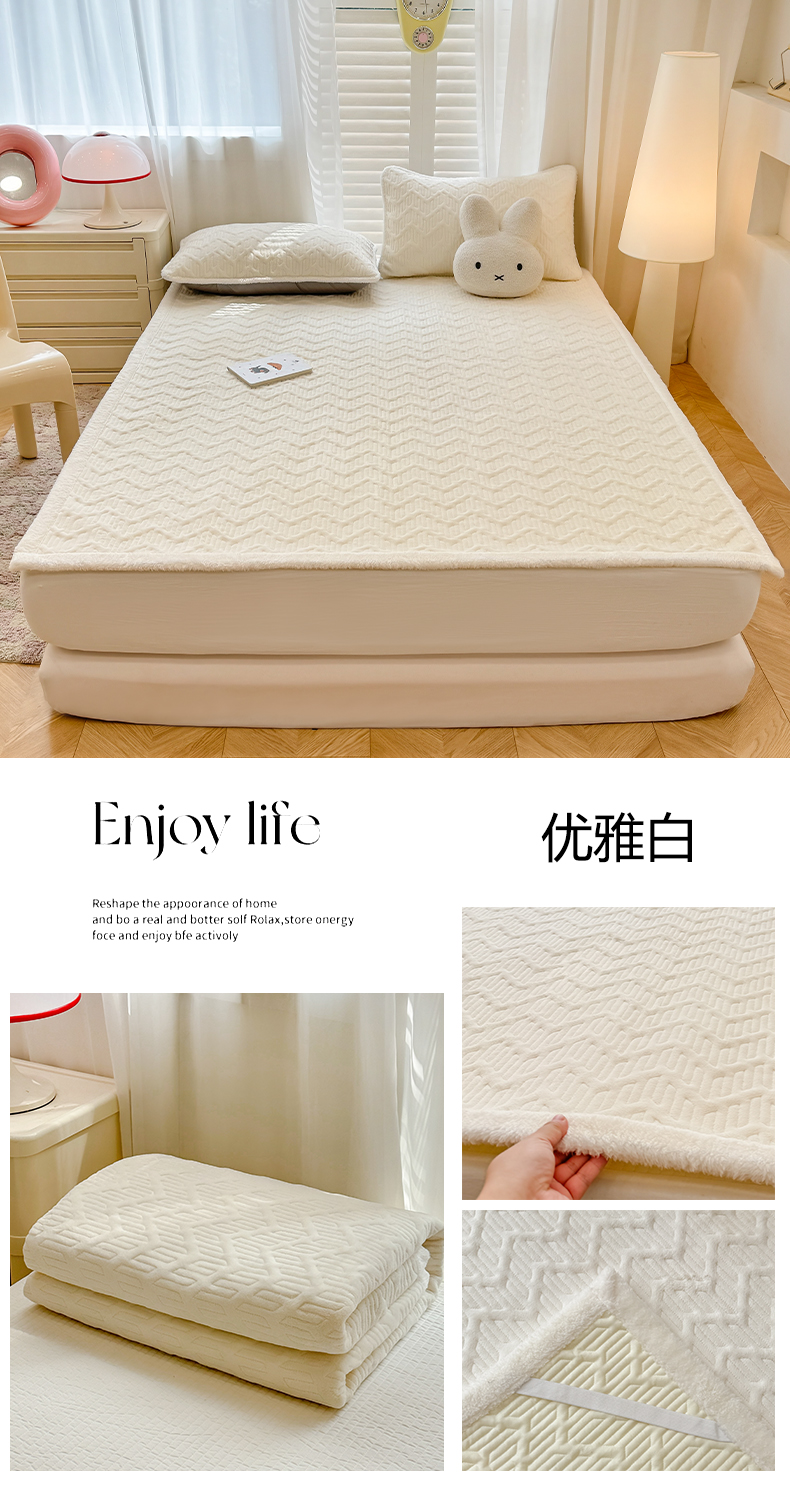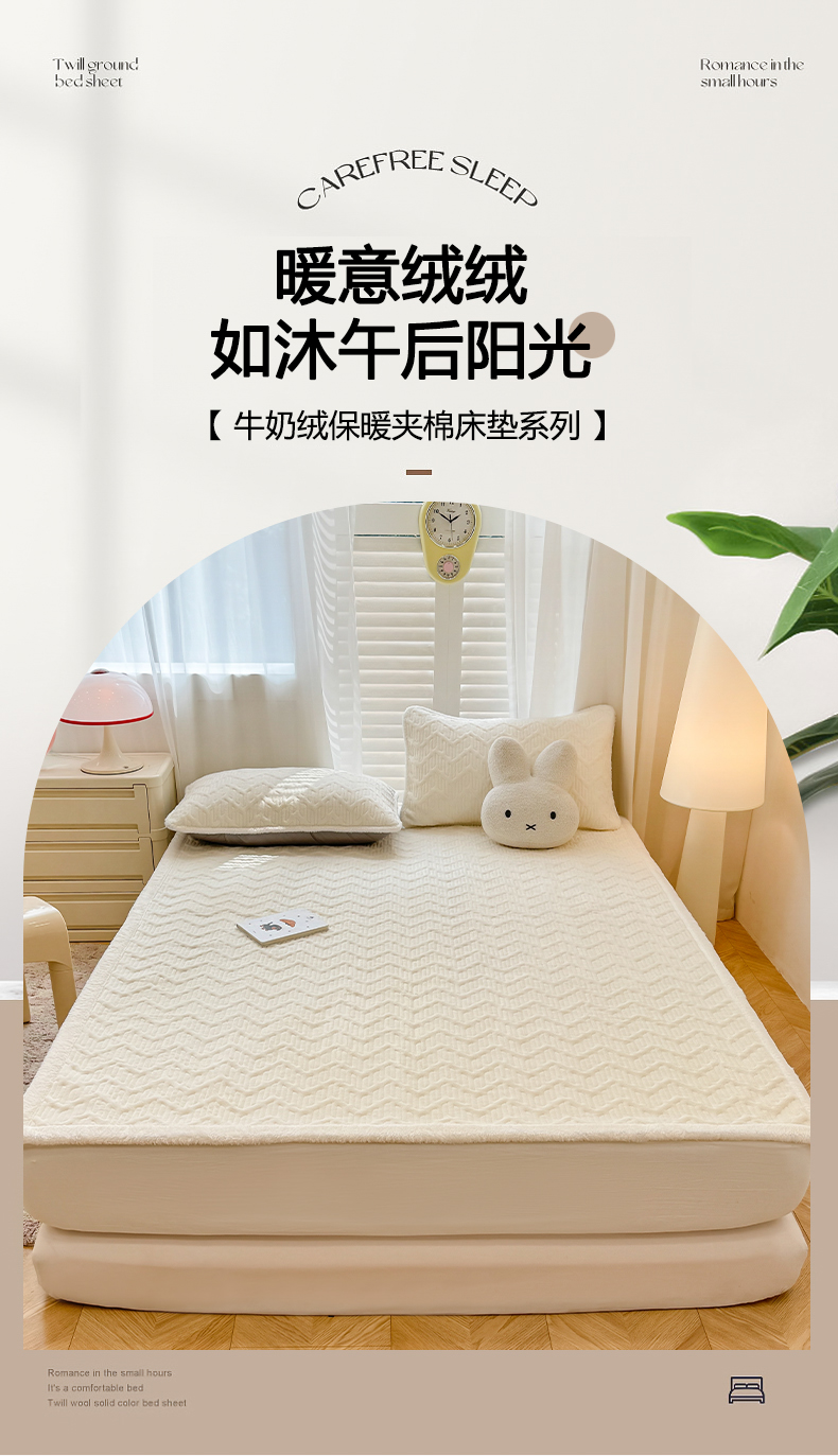 当前位置: 91家纺网 > 商品网购 > 床垫/床褥 > 普通床垫 > 子曰 2024新款牛奶绒夹棉床垫三件套 优雅白
