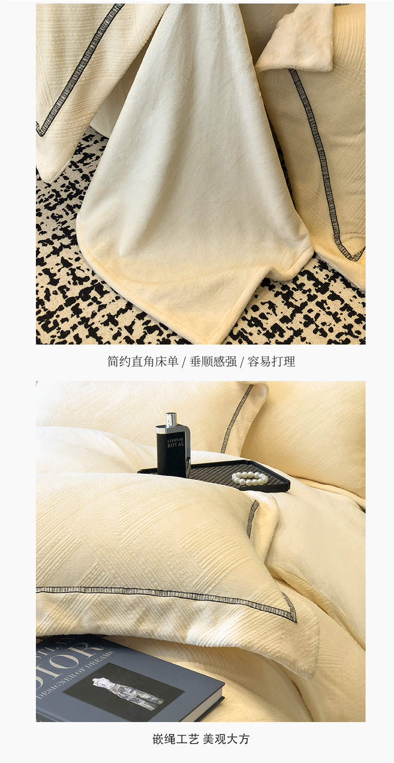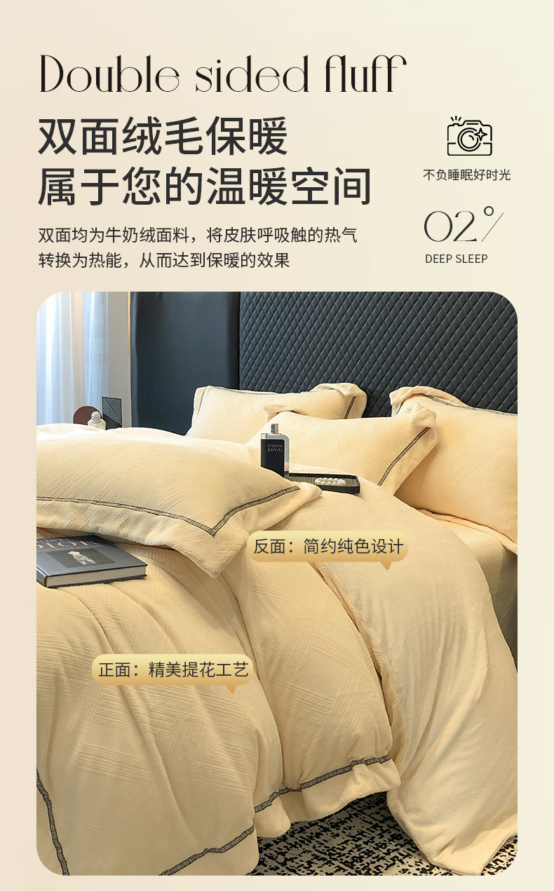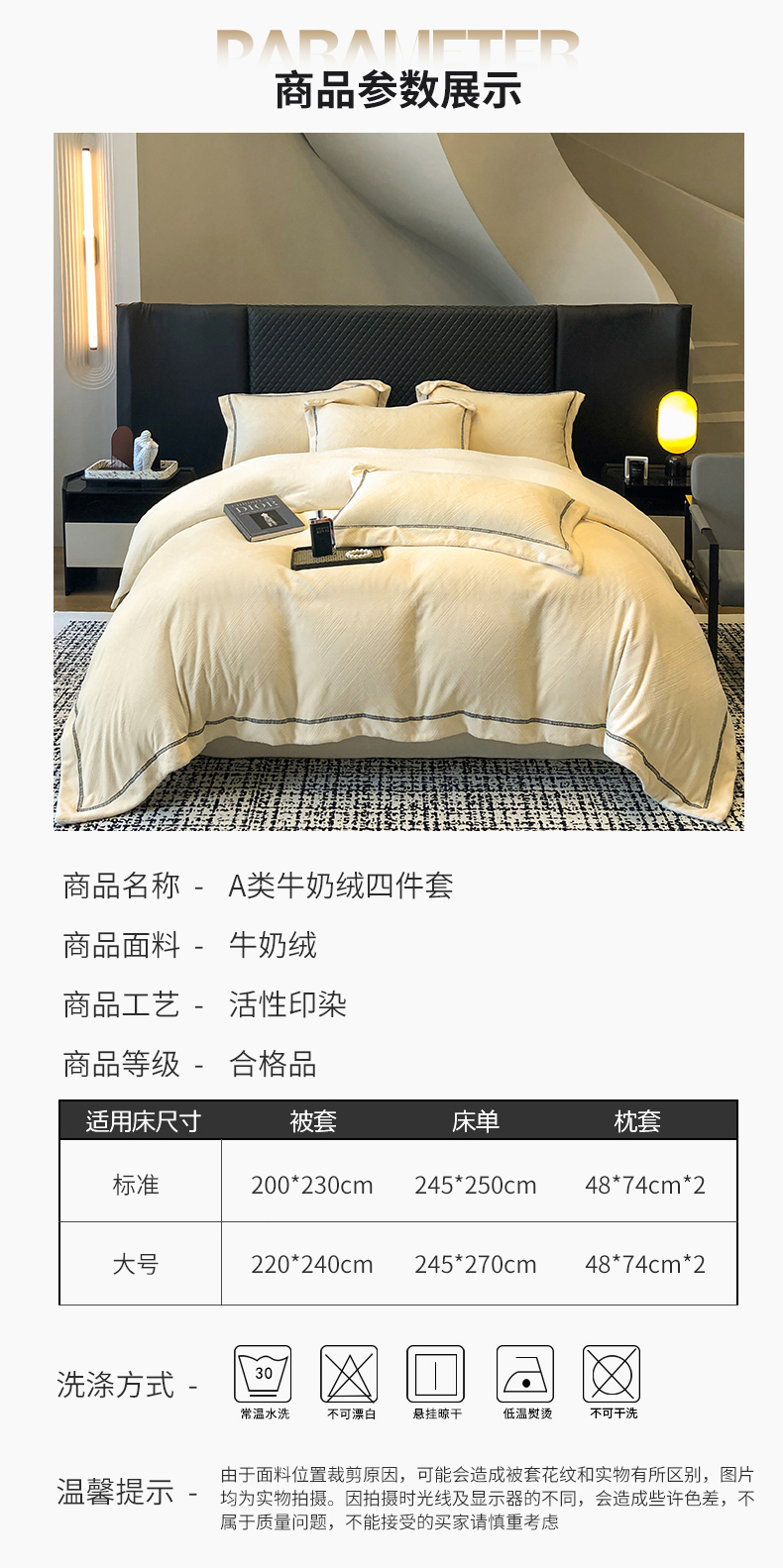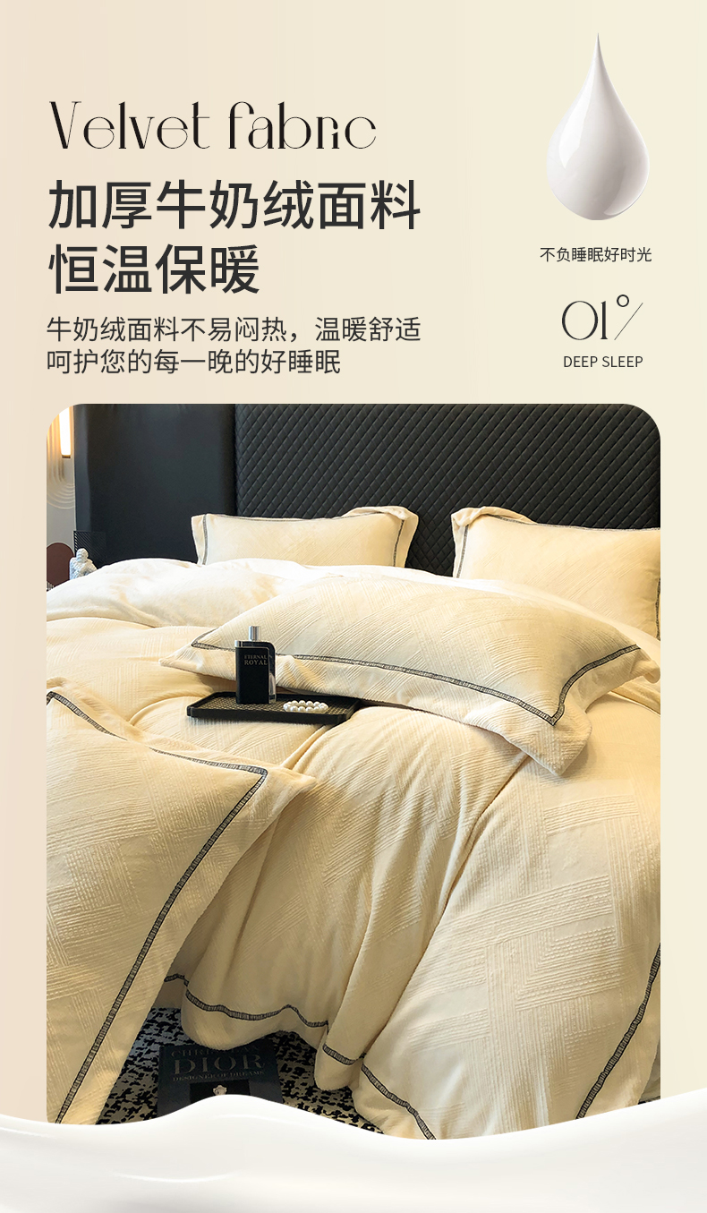 商品名称:家居1号 2024新款230克全消光牛奶绒立体烂花四件套-奥地利 奥地利-奶白