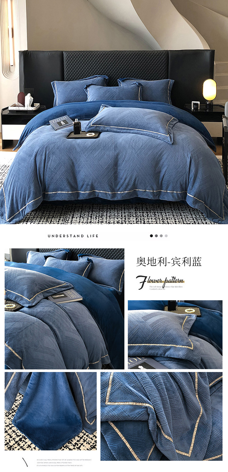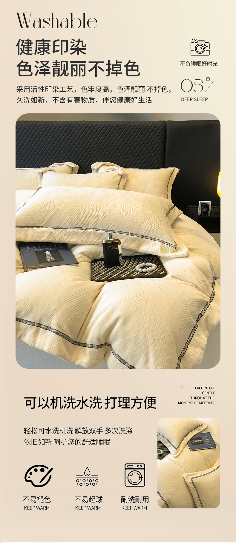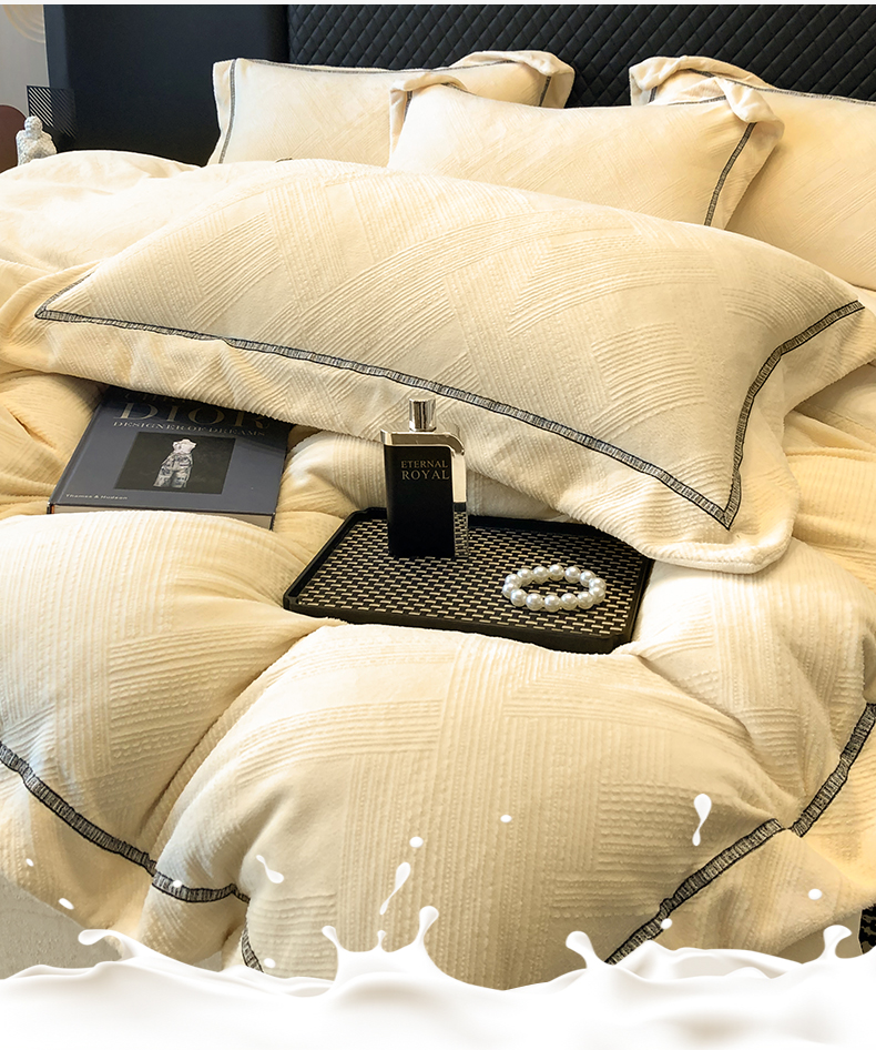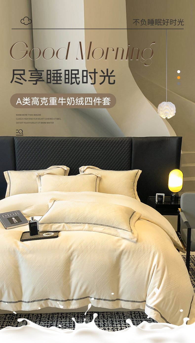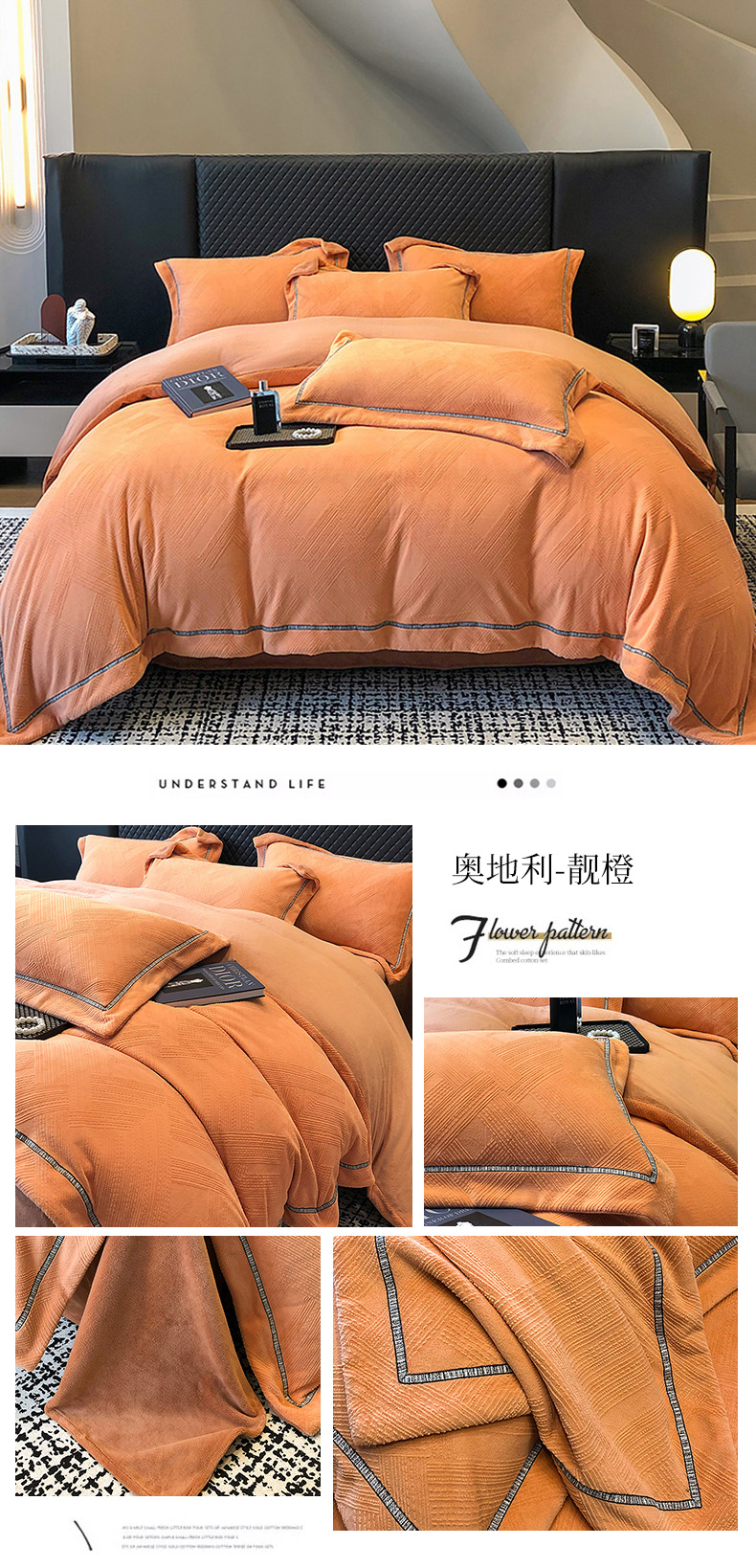 商品名称:家居1号 2024新款230克全消光牛奶绒立体烂花四件套-奥地利 奥地利-奶白