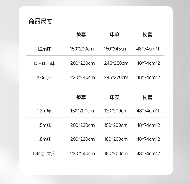 1.8m床笠款被套加大四件套 | ¥190.00 |