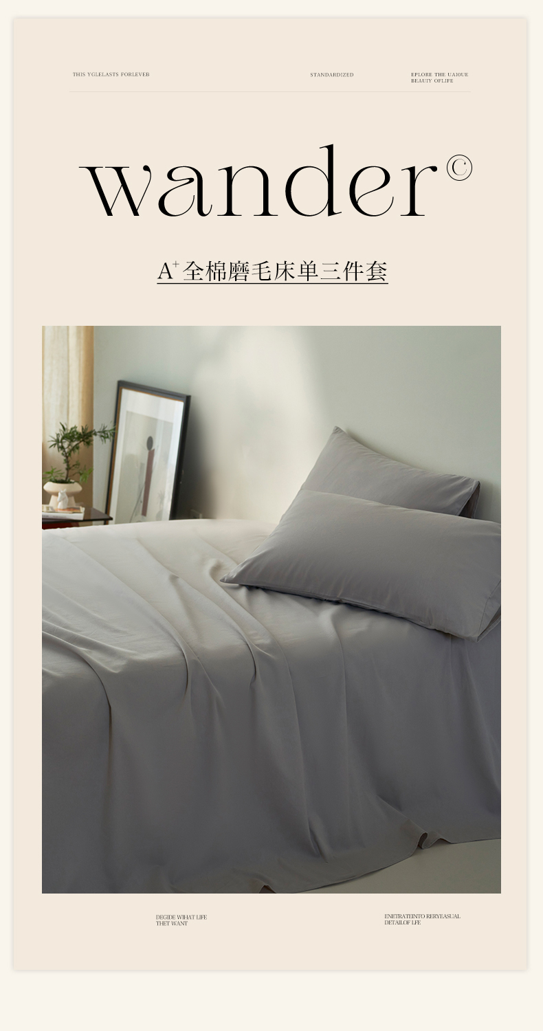 当前位置: 91家纺网 > 商品网购 > 床上用品 > 床单 > 2024新款全棉加厚磨毛纯色单床单系列 时尚灰