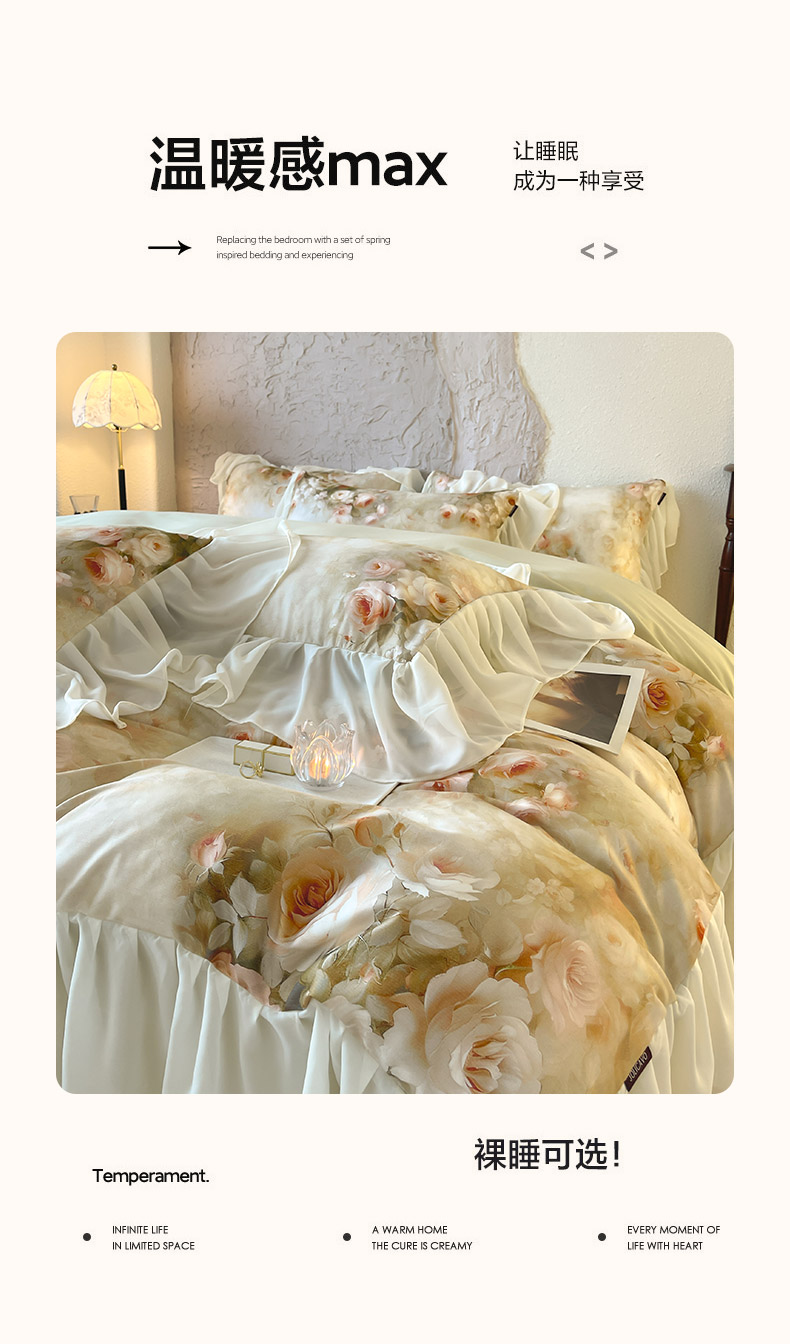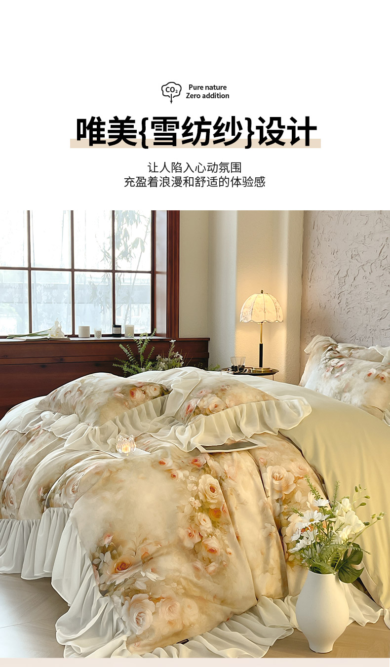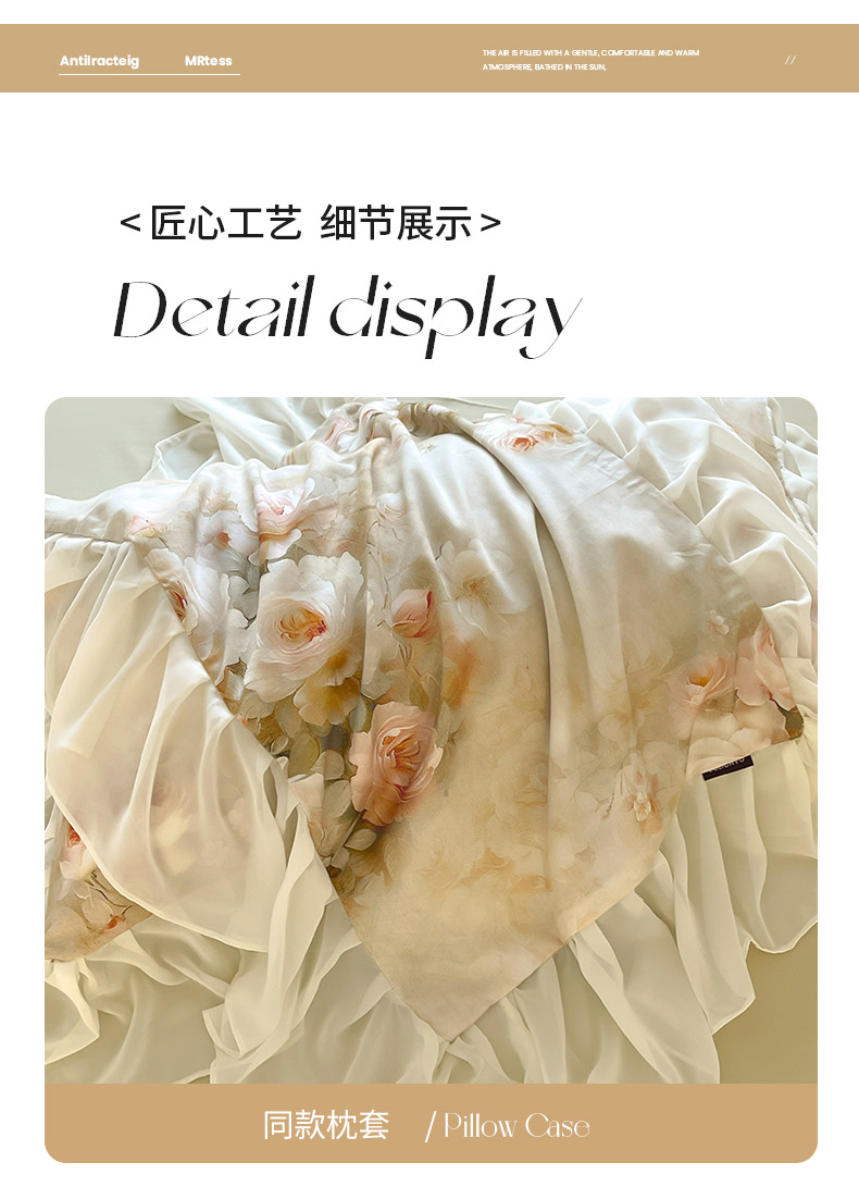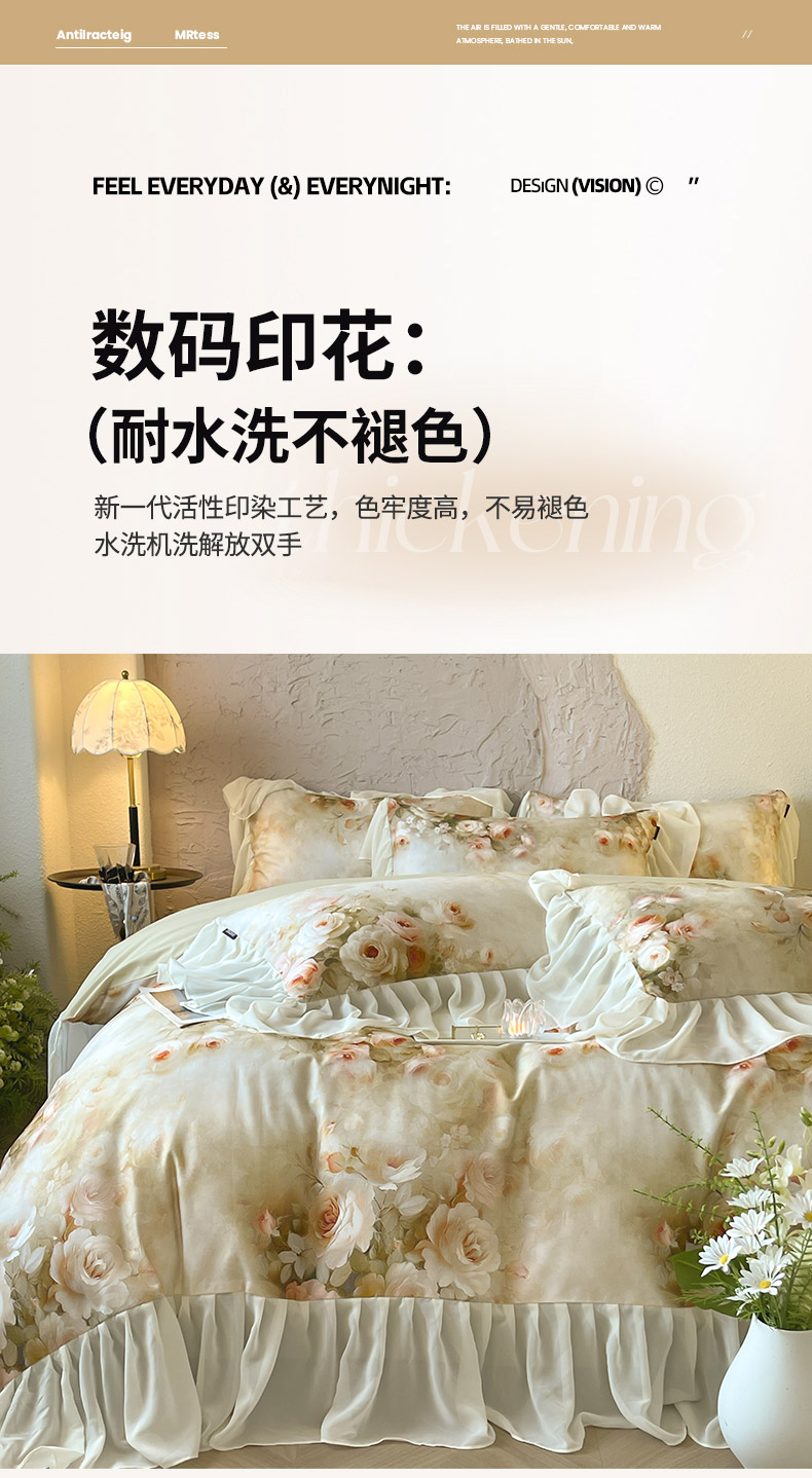 商品名称:A类全工艺全棉磨毛四件套纯棉雪纺纱拼接浪漫法式风加厚保暖床单被套秋冬床上用品 竹叶杏