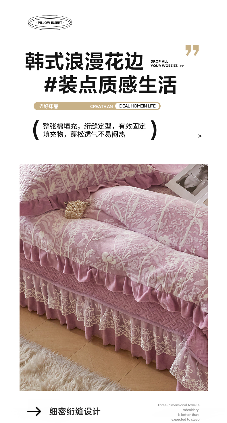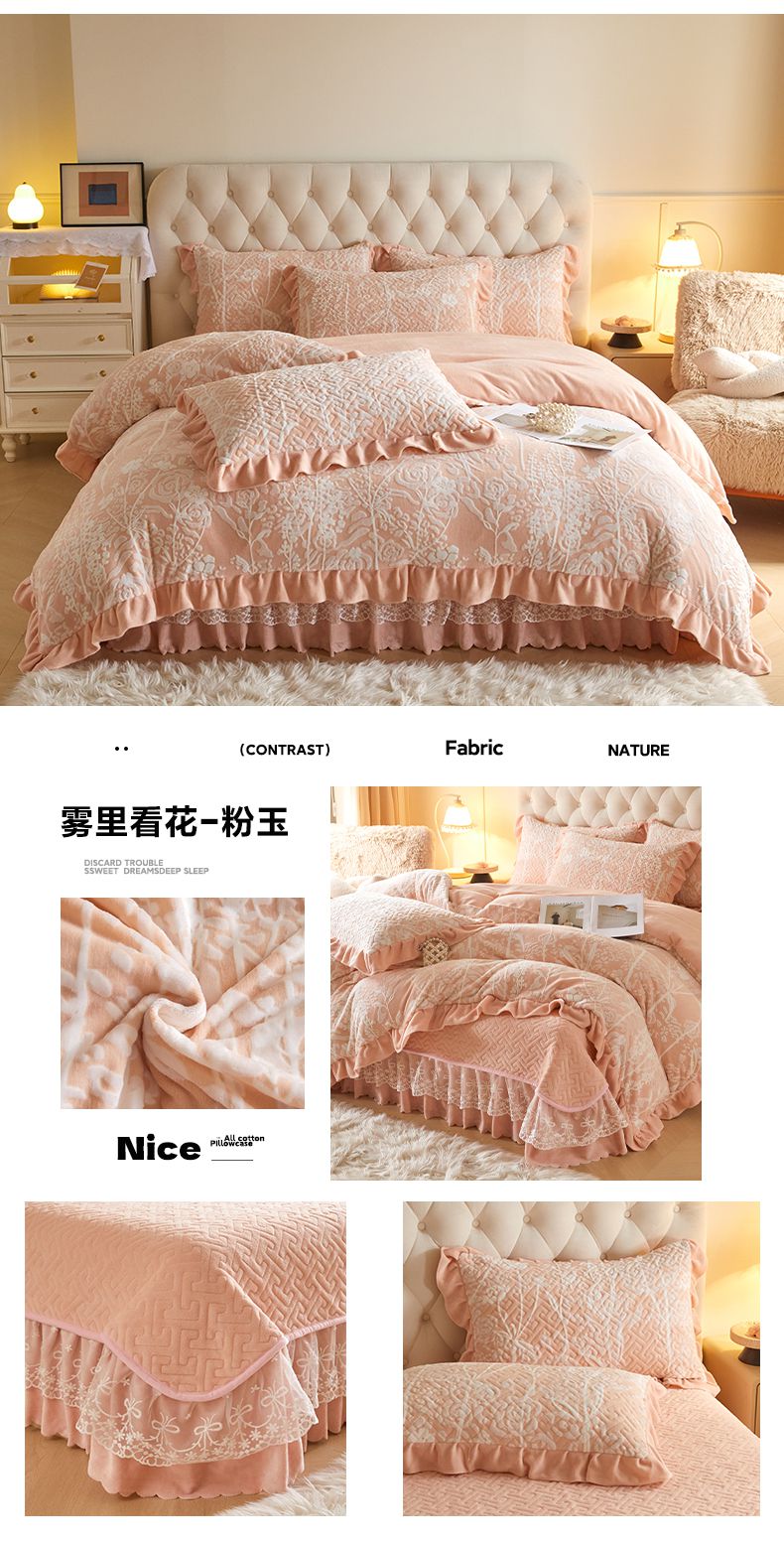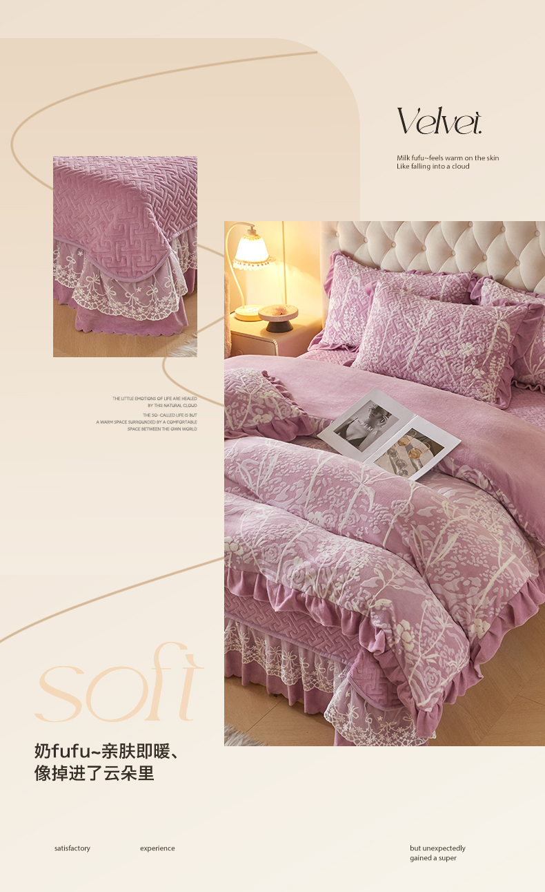 商品名称:畅畅家纺 2024新款11斤高克重新款韩版烂花牛奶绒床盖四件套系列 雾里看花-雪青紫