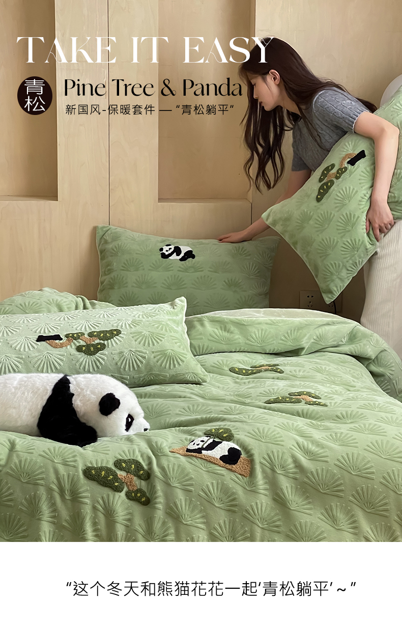 当前位置: 91家纺网 > 商品网购 > 床品套件 > 四件套 > 牛奶绒四件套 > (总)风向标家纺 2024新款A类立体牛奶绒毛巾绣-绽放青松系列(风格二)