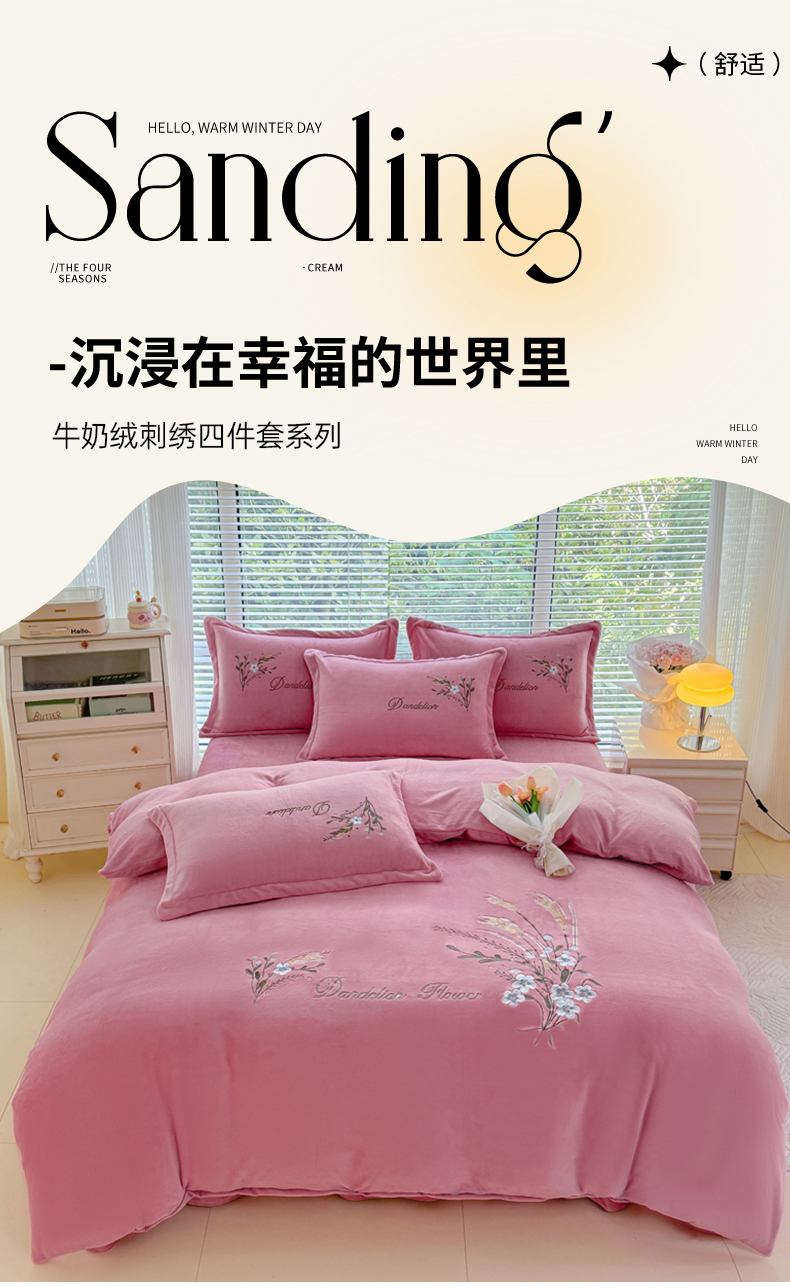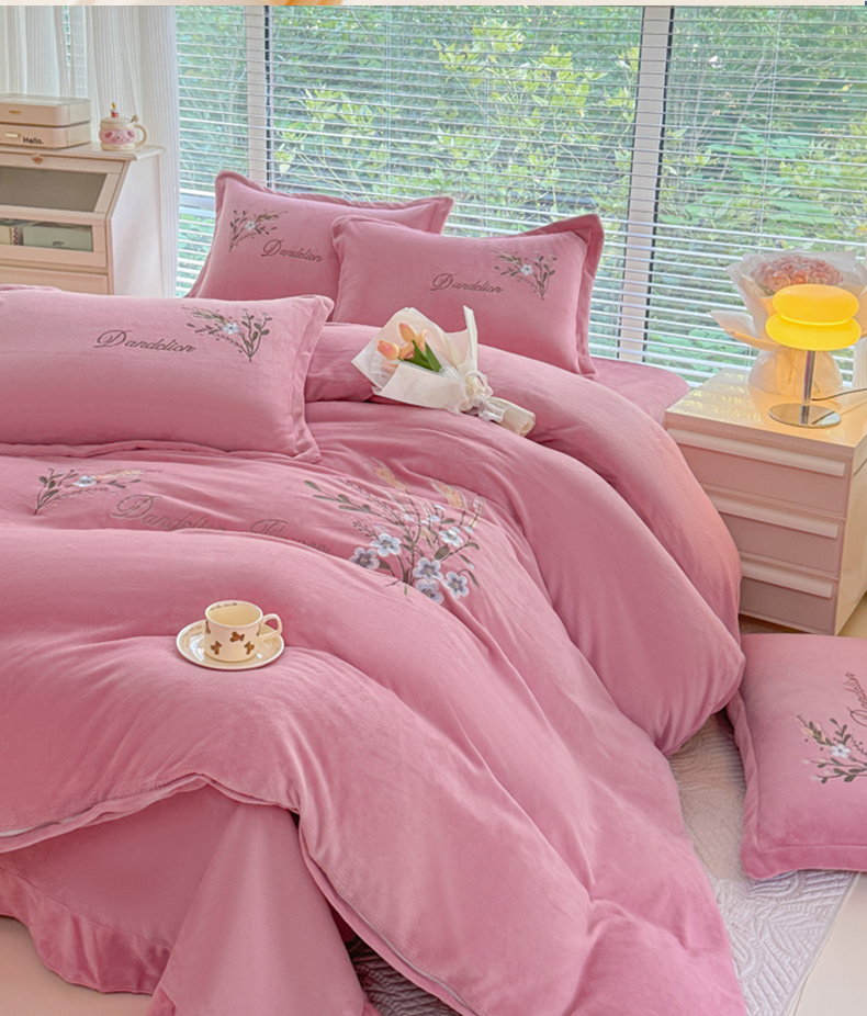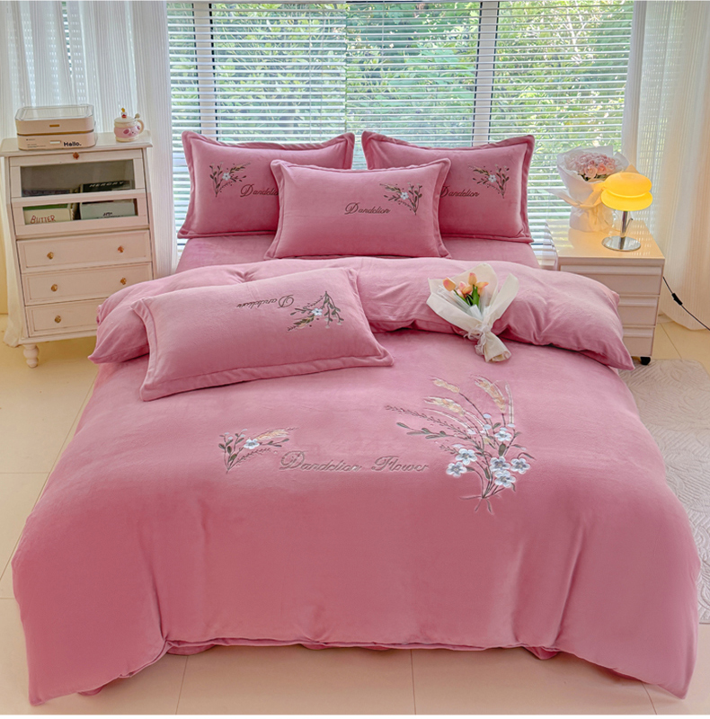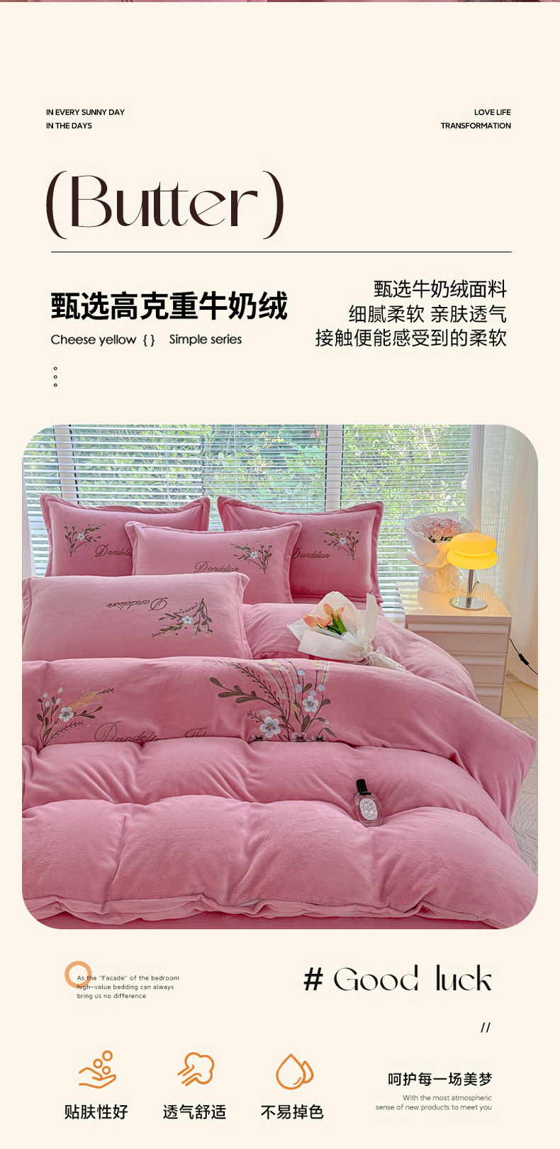 (总)金米诺 2024新款牛奶绒毛巾绣四件套,大红,淡雅青,豆绿,豆沙,粉玉,高级灰,紫色