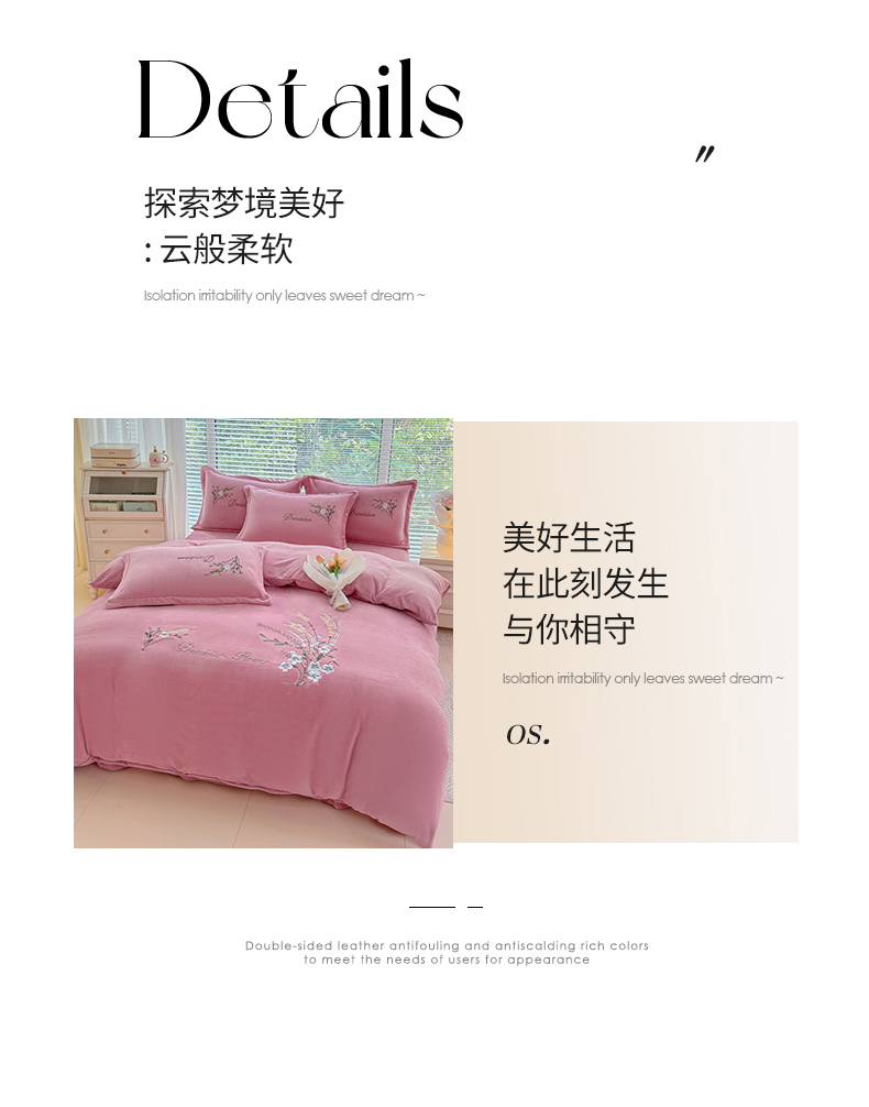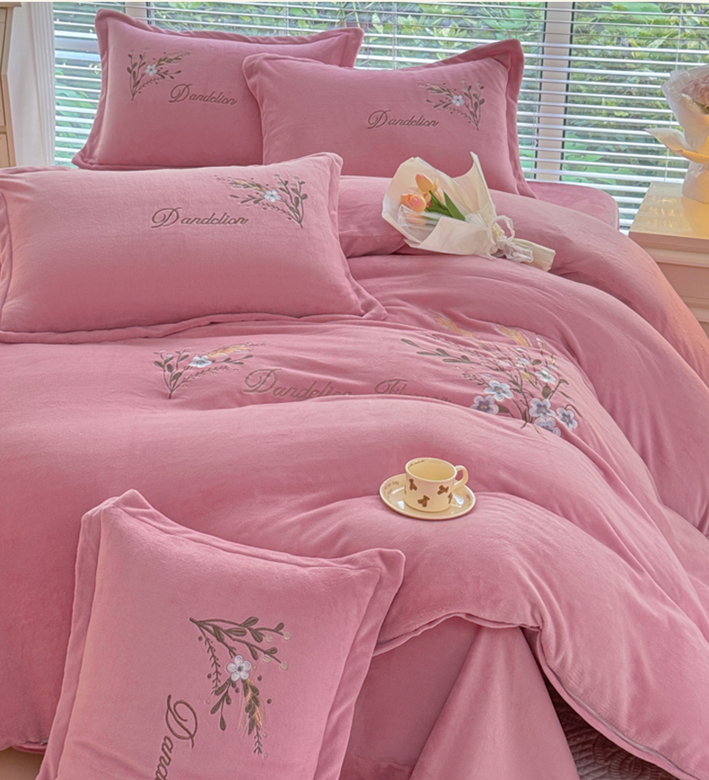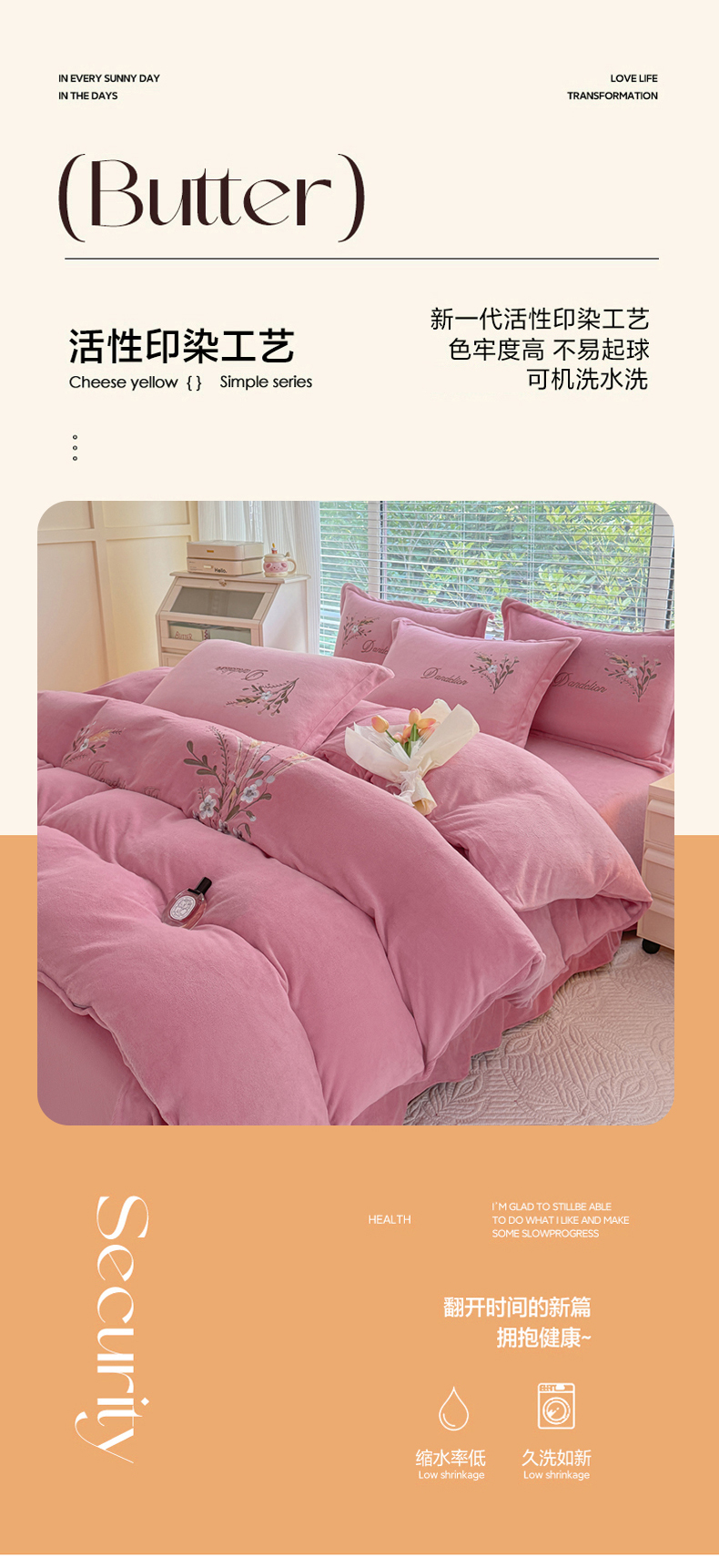 (总)金米诺 2024新款牛奶绒毛巾绣四件套,大红,淡雅青,豆绿,豆沙,粉玉,高级灰,紫色