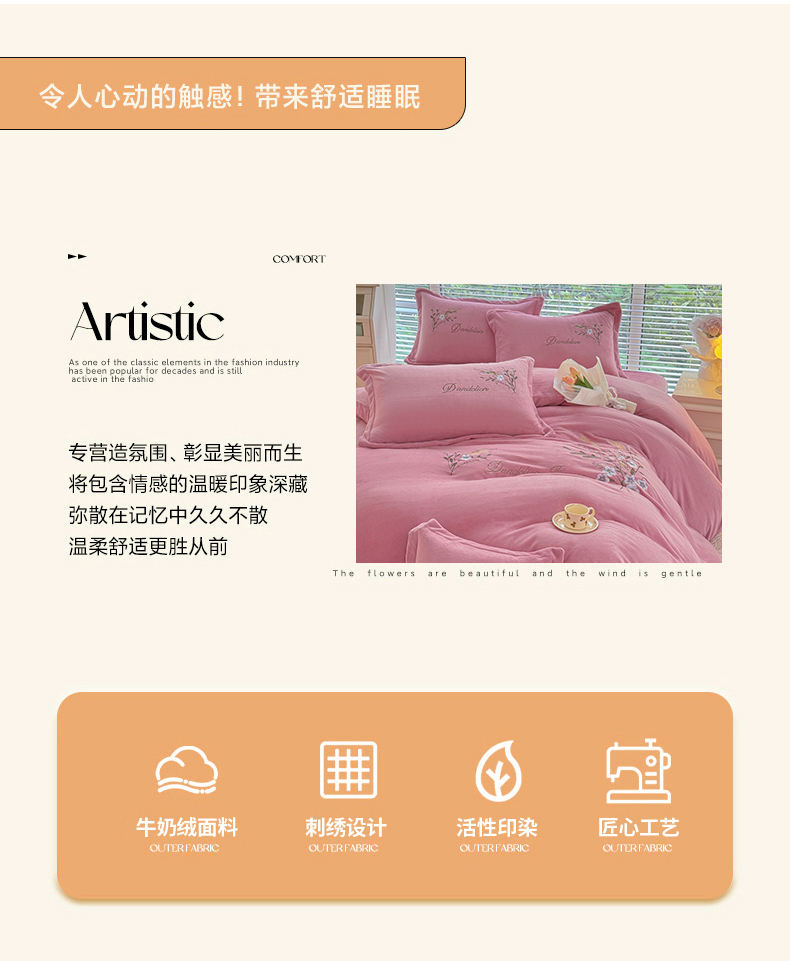 金米诺 2024新款绣花牛奶绒四件套-麦穗 麦穗-豆沙